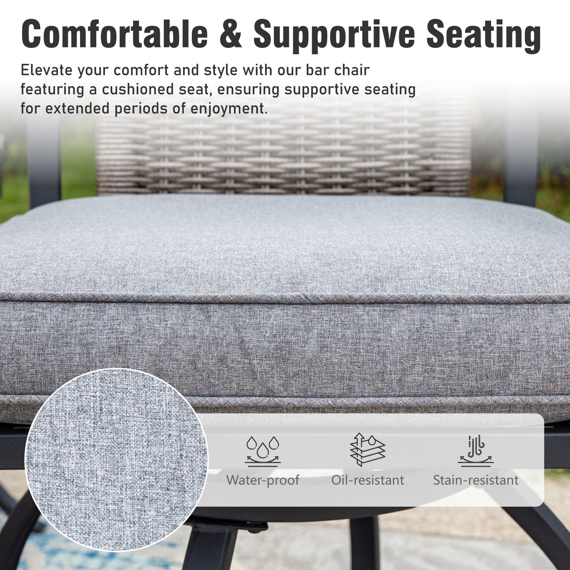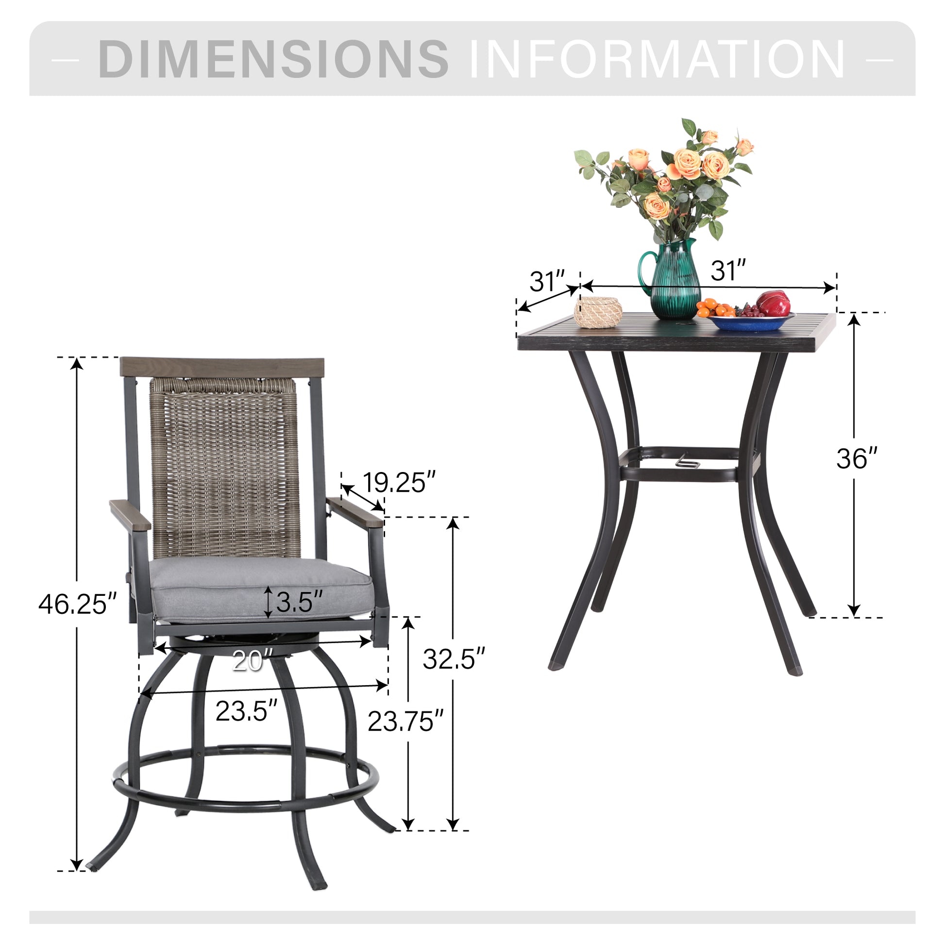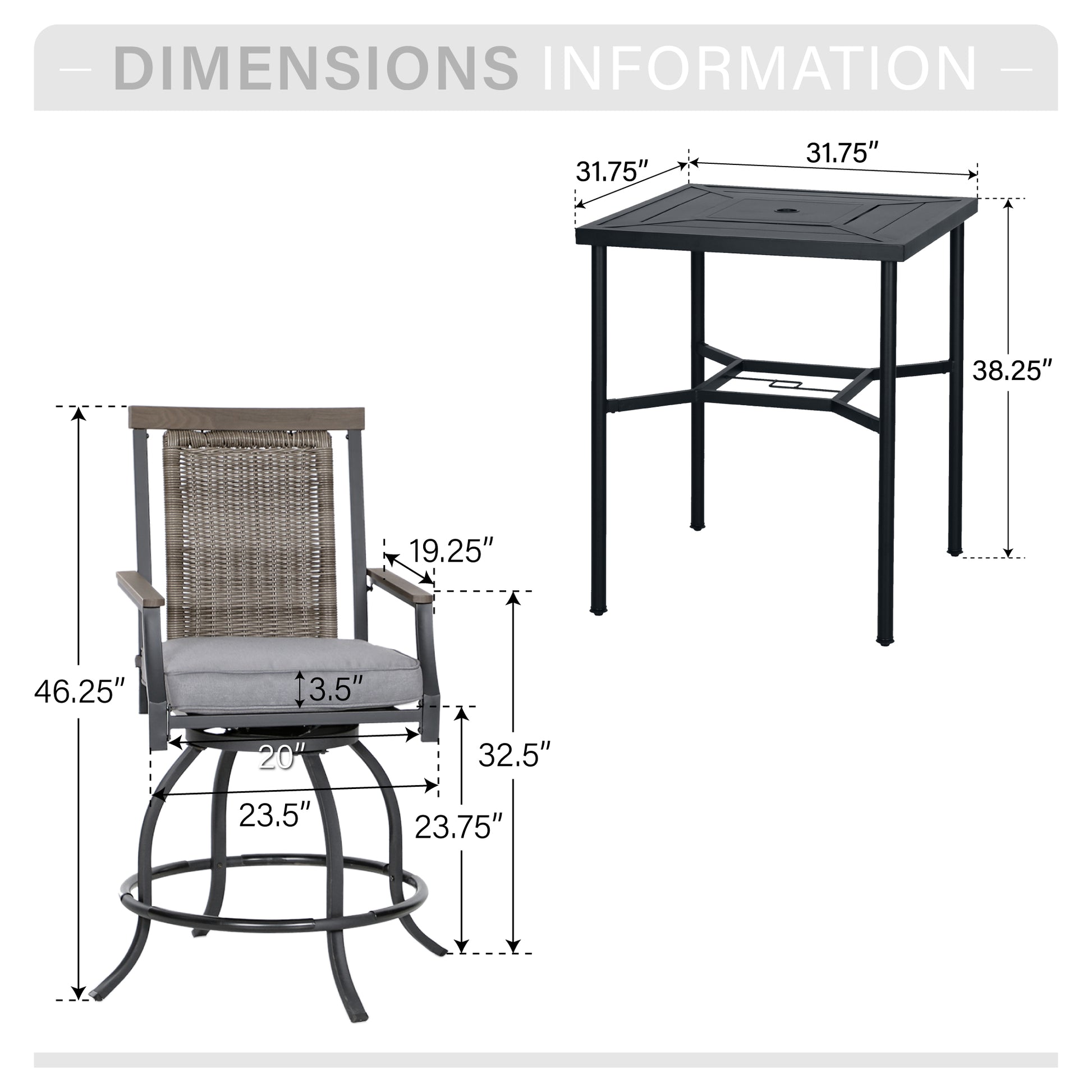 Captiva Designs 3pc Outdoor Patio Metal Bar Height Table & Bar Swivel Chair with Cushion and Armrest