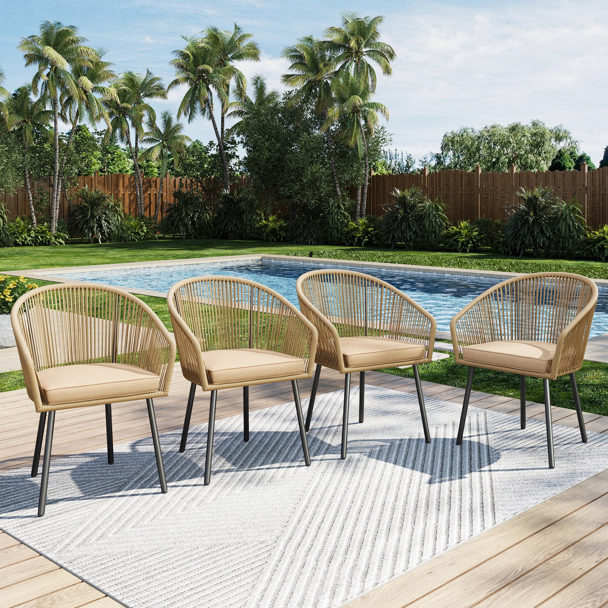 Captiva Designs 4pc Outdoor Patio Woven Pull Cord Back Dining Chairs with Seat Cushion