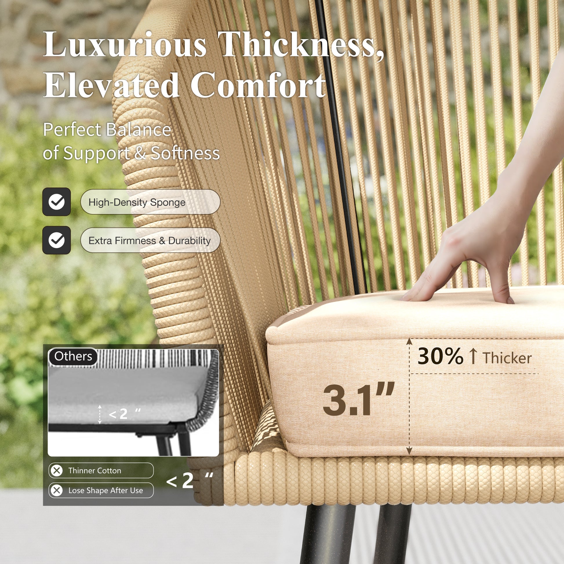 [CAPTIVA DESIGNS] Transform your outdoor dining experience with this sophisticated 4-piece chair set from Captiva Designs. Each chair features hand-woven detailing and an innovative pull-cord back mechanism that combines ergonomic support with refined aesthetics. Plush seat cushions provide lasting comfort for extended gatherings, while the durable construction withstands year-round weather exposure. Perfect for patios, decks, and garden spaces, these chairs deliver both style and functionality for discerning homeowners seeking premium outdoor furniture.