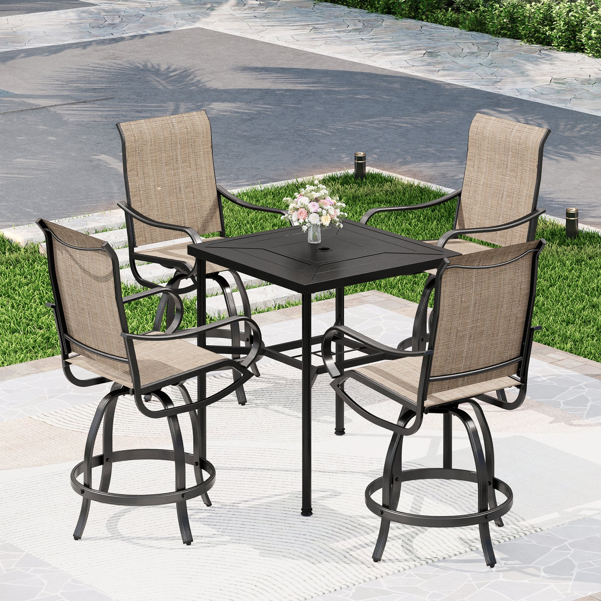 Captiva Designs 5pc Outdoor Patio Steel Bar Table & Sling High Bar Swivel Stools