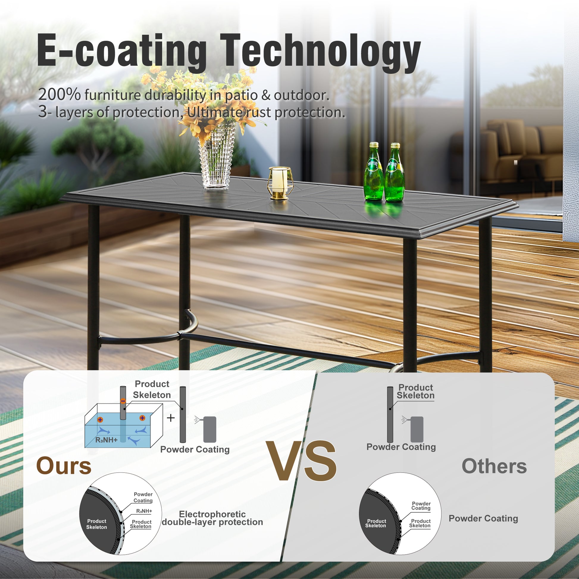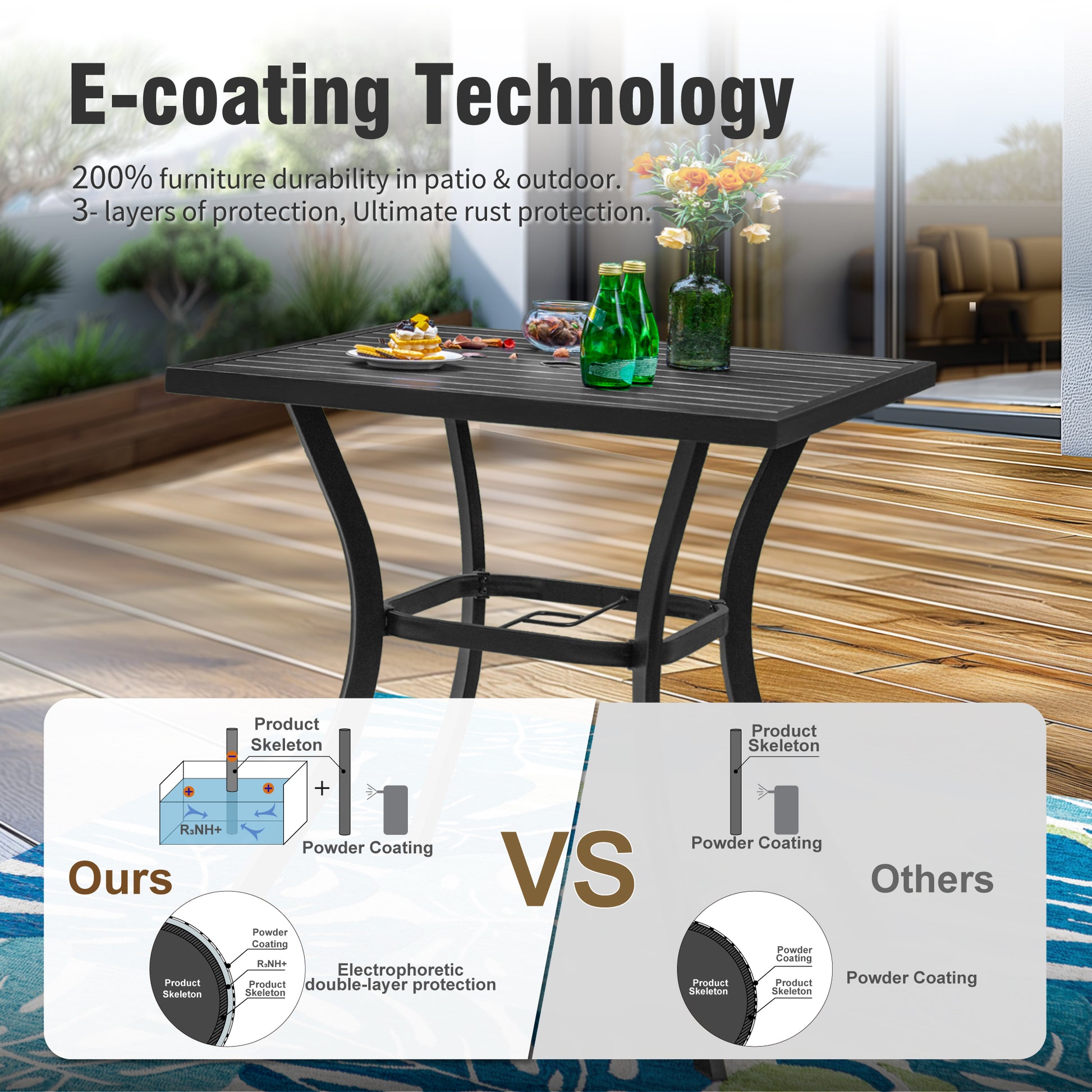 Experience outdoor living redefined with the Captiva Designs 5pc Outdoor Patio Steel Bar Table & Sling High Bar Swivel Stools. Constructed to withstand the elements, this set combines durability and style effortlessly. Elevate your gatherings with the steel bar table's sturdy build while enjoying comfort and freedom of motion with swivel stools designed to enhance relaxation. Impress guests, coordinate your outdoor aesthetic, and maintain low maintenance with weather-resistant materials. Choose quality and functionality that transform your patio into an inviting entertainers’ haven.