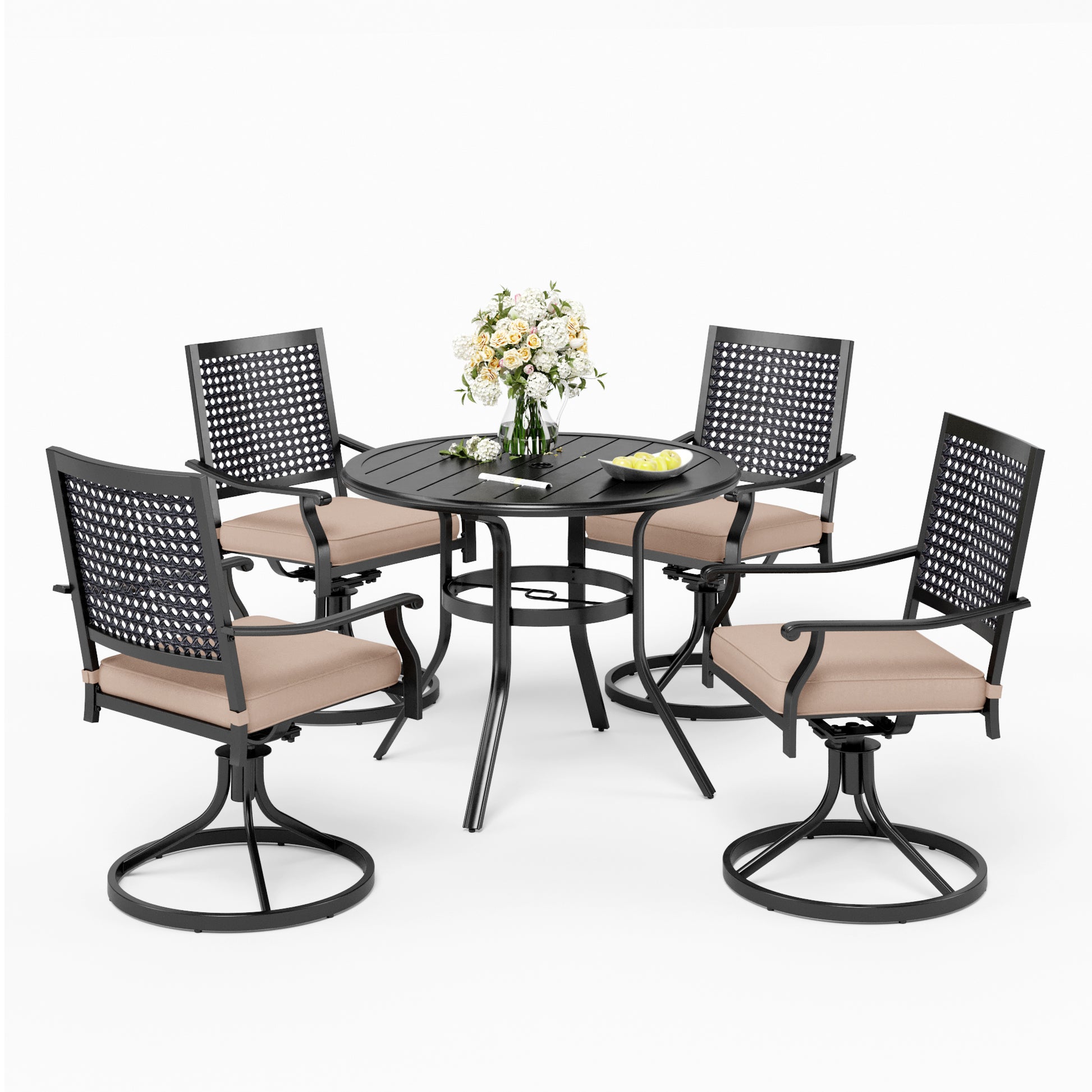 Captiva Designs 5pc Outdoor Steel Slat-top Round Dining Table & Metal Chairs with Stylish Back