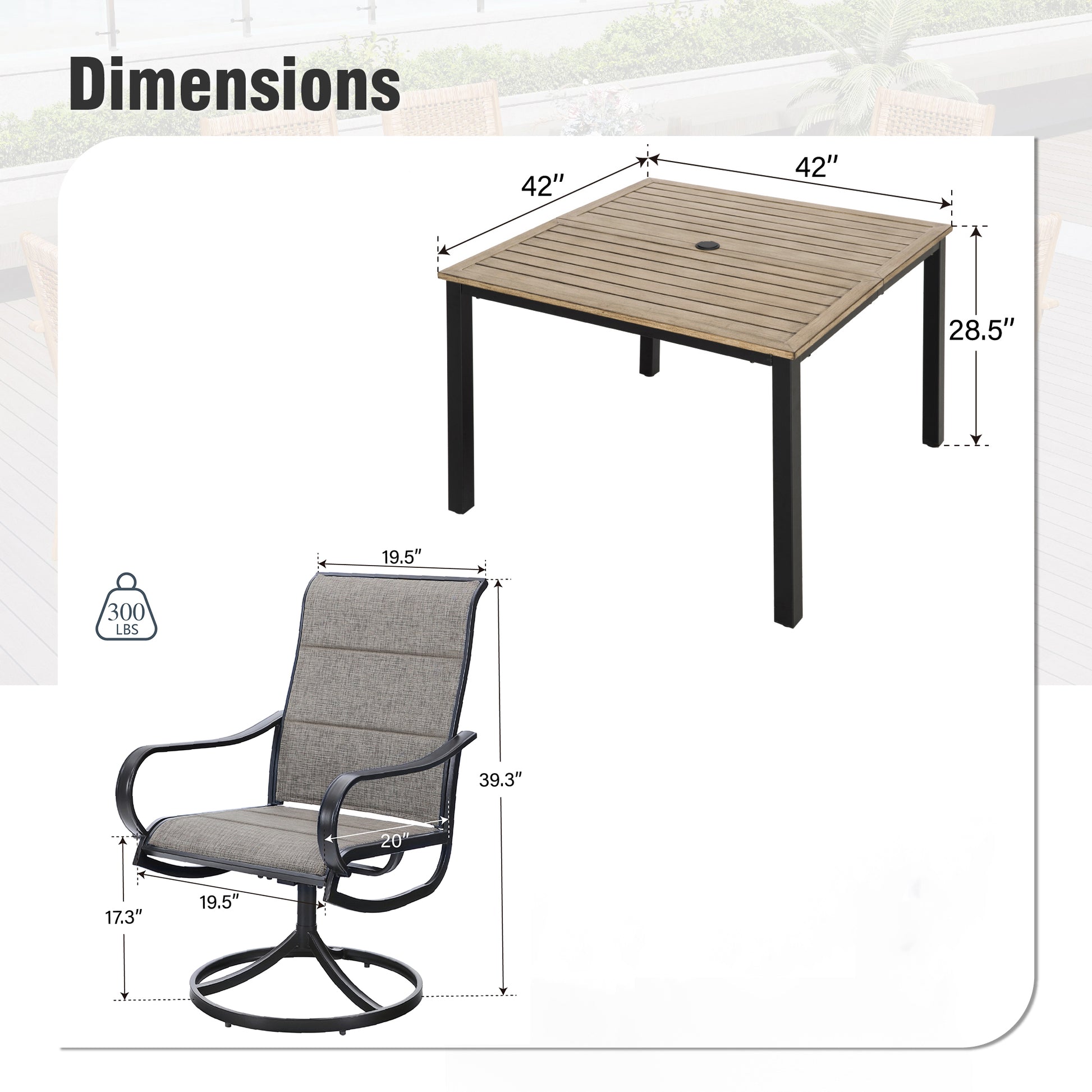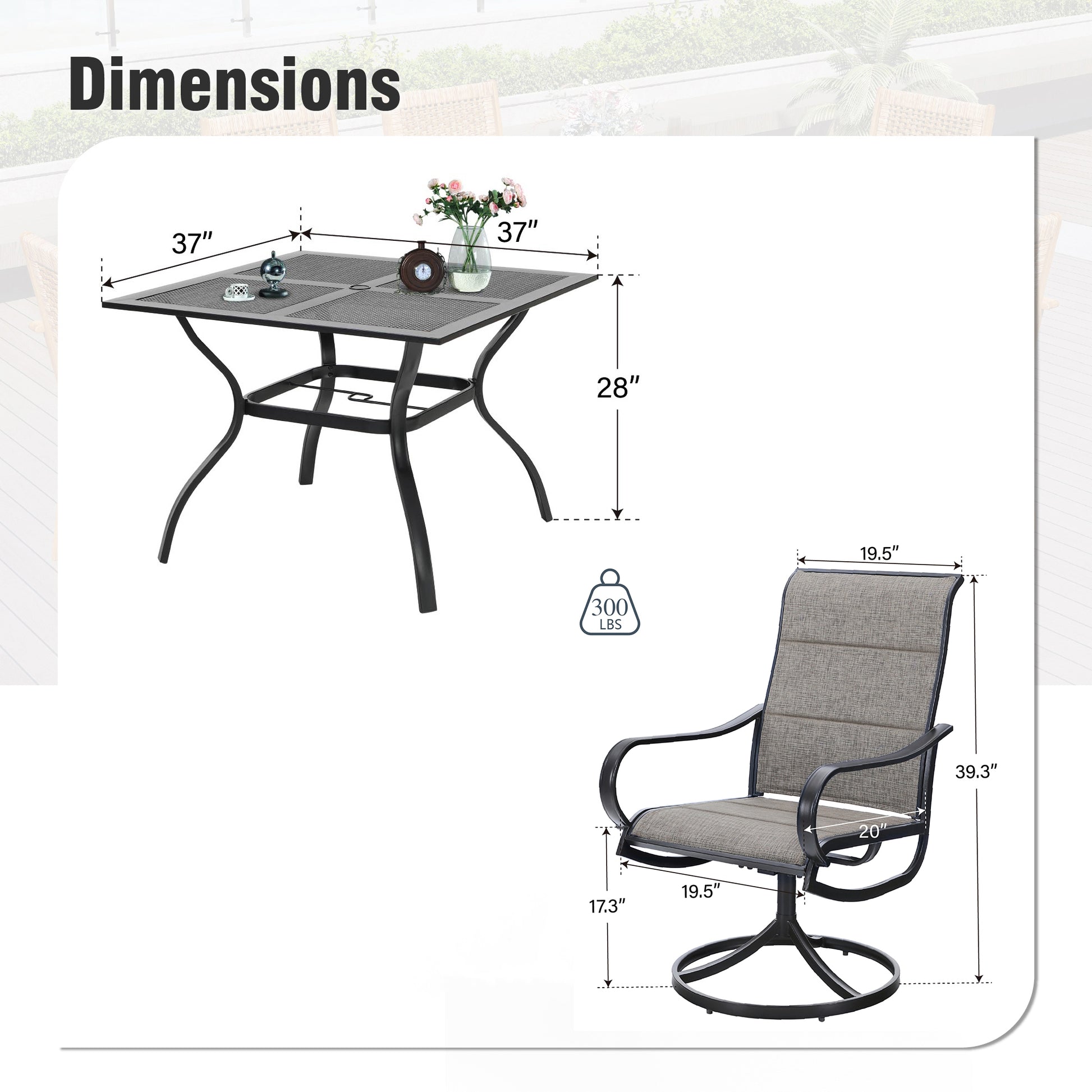 Captiva Designs 5pc Outdoor Patio Square Dining Steel Table & Swivel Sling Metal Chairs