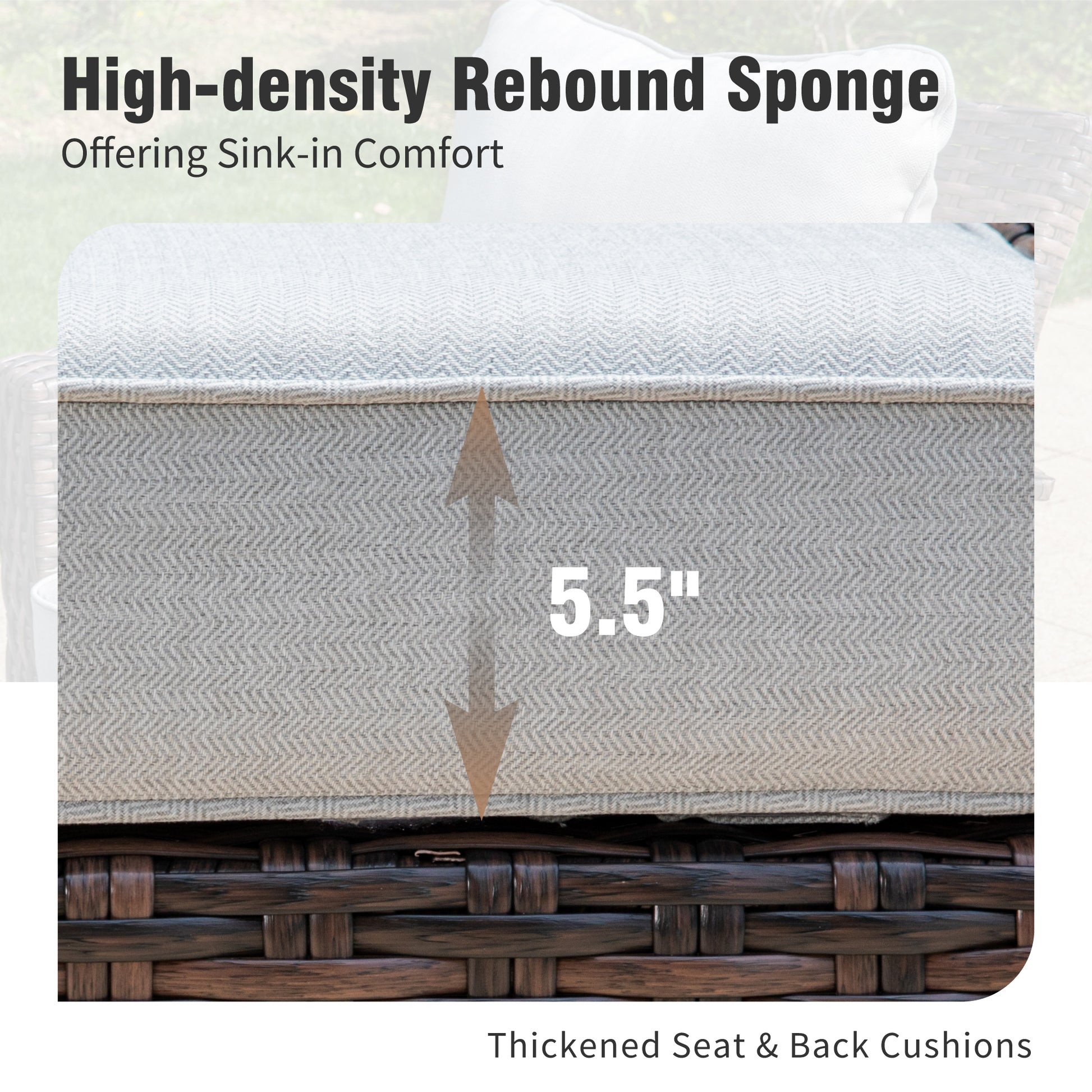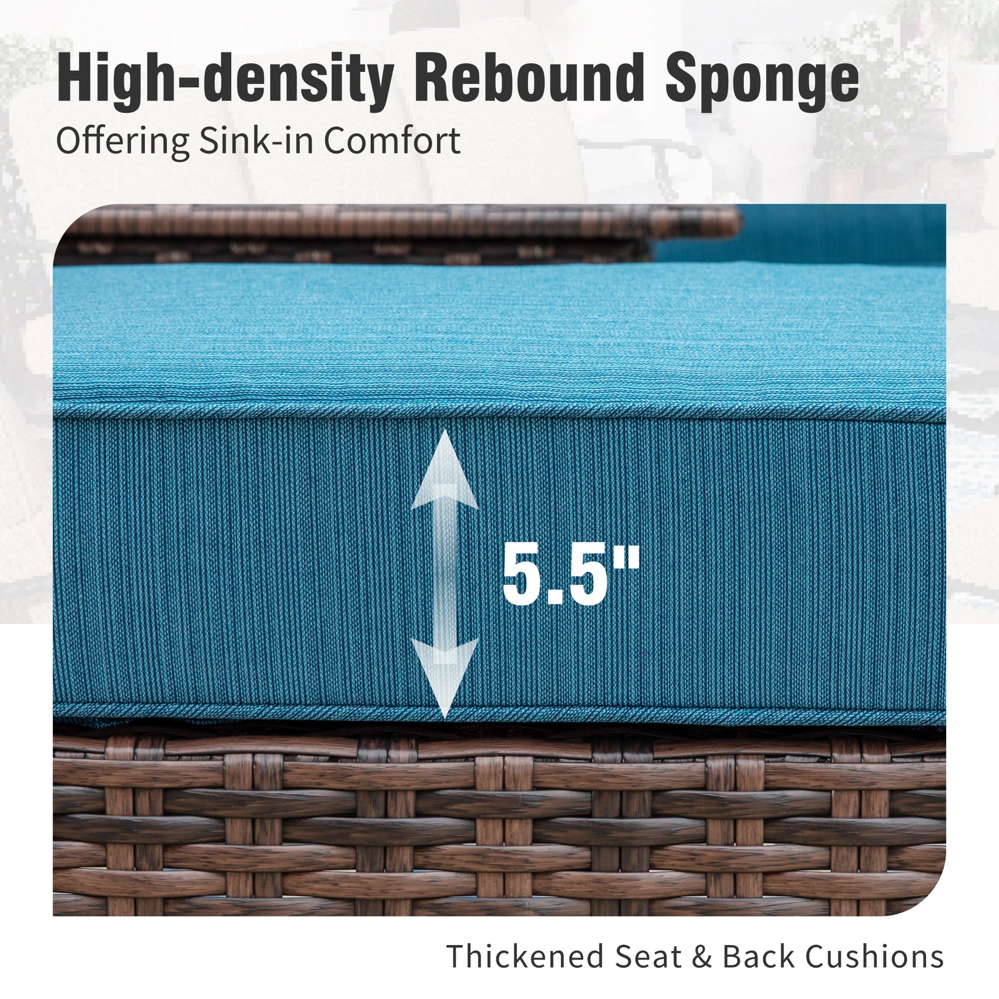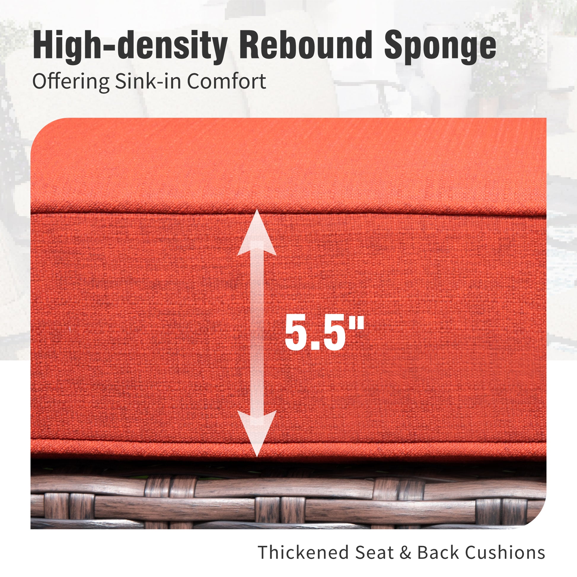 Spacious & Comfortable Seating: The 3-seat sofa and single chairs feature a 35" high backrest, deep seats, and 3.9" wide armrests for added support. The 5.5" thick cushions ensure comfort, making this set ideal for year-round outdoor relaxation.