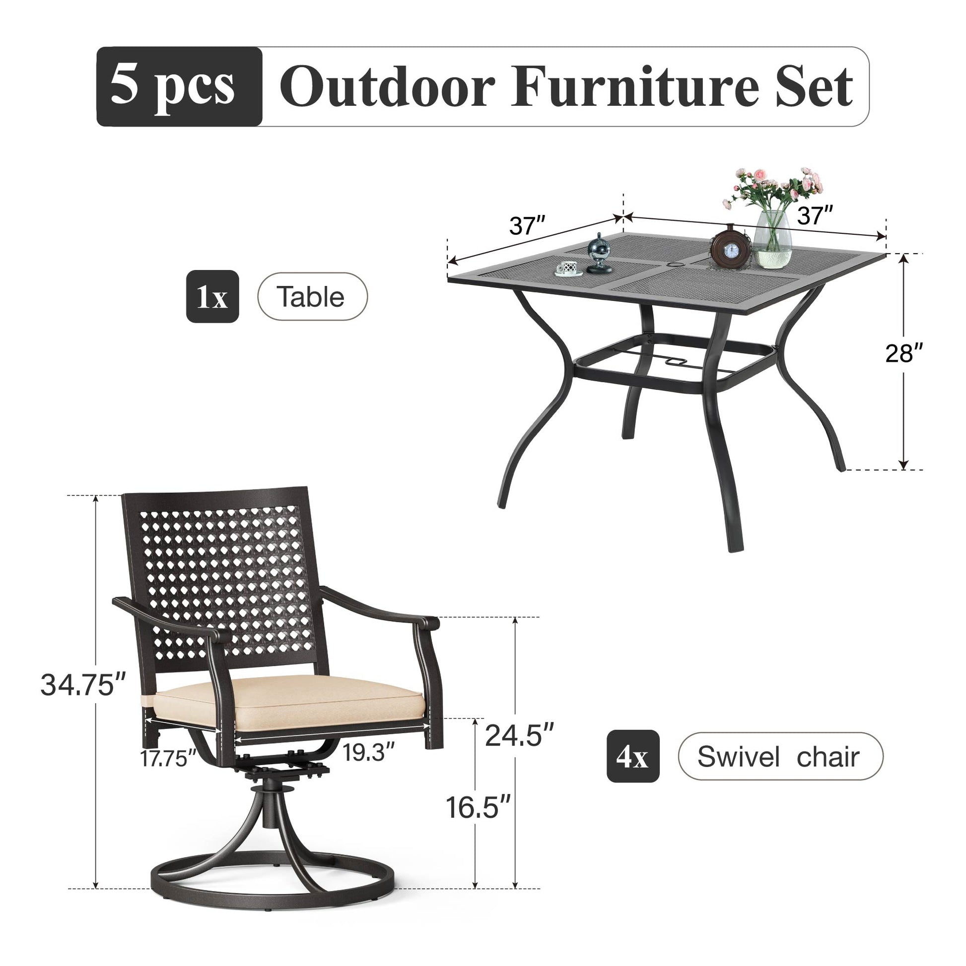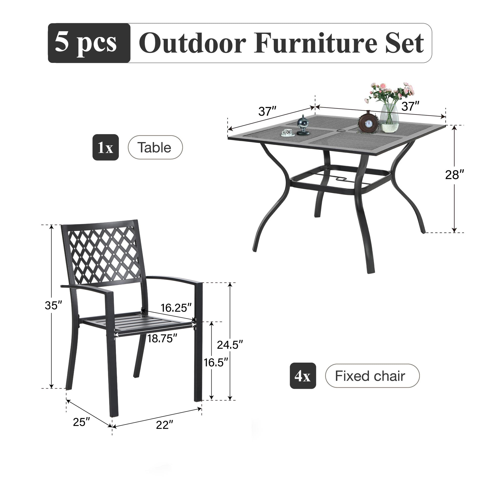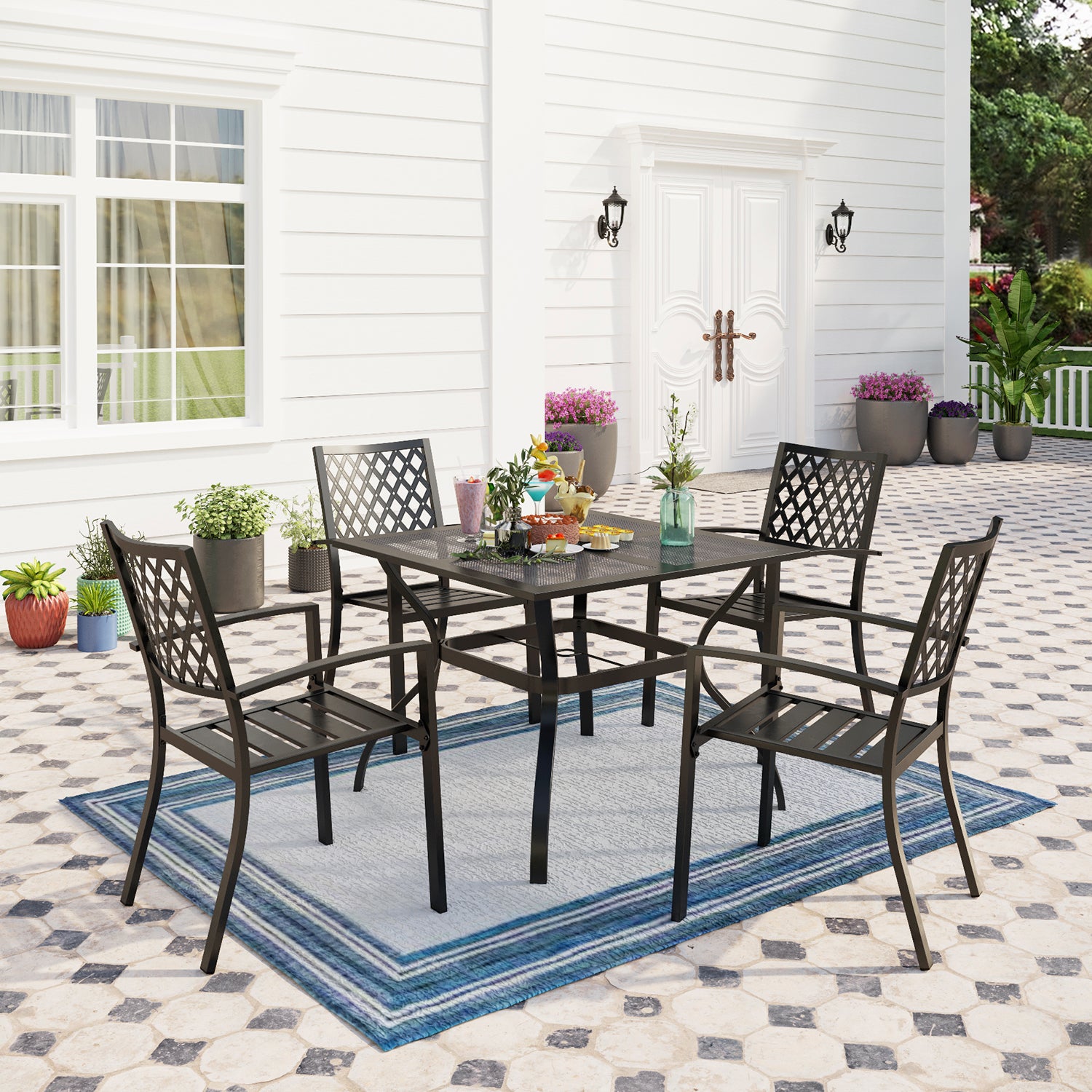 Captiva Designs 5pc Outdoor Patio Dining Set with Mesh Top Square Steel Table and Metal Chairs