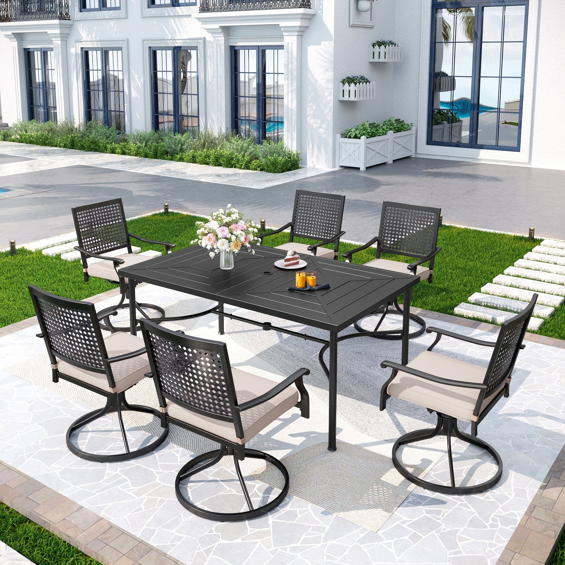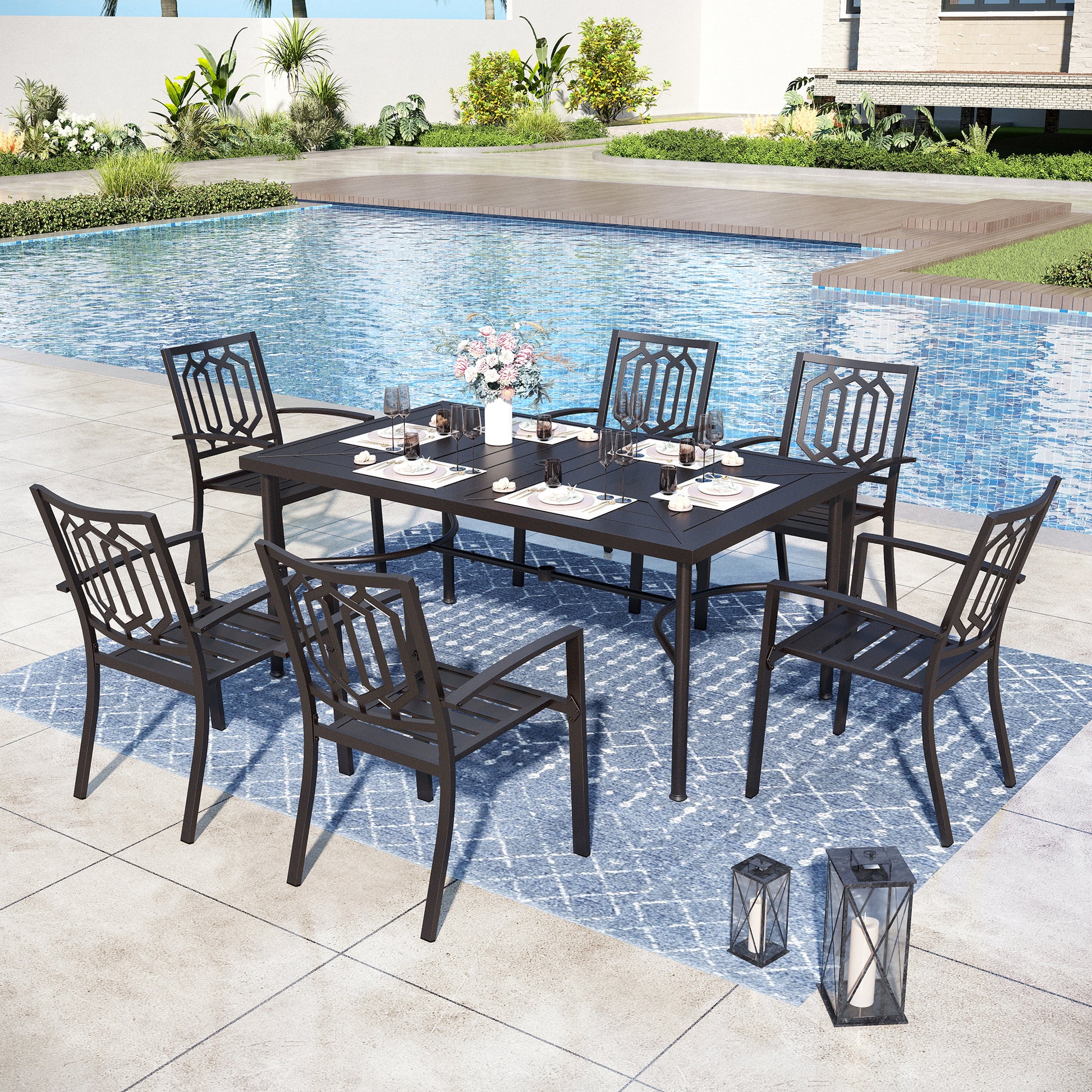 Captiva Designs 7pc Patio Dining Set with Geometric Pattern Rectangular Table & Metal Arm Chairs