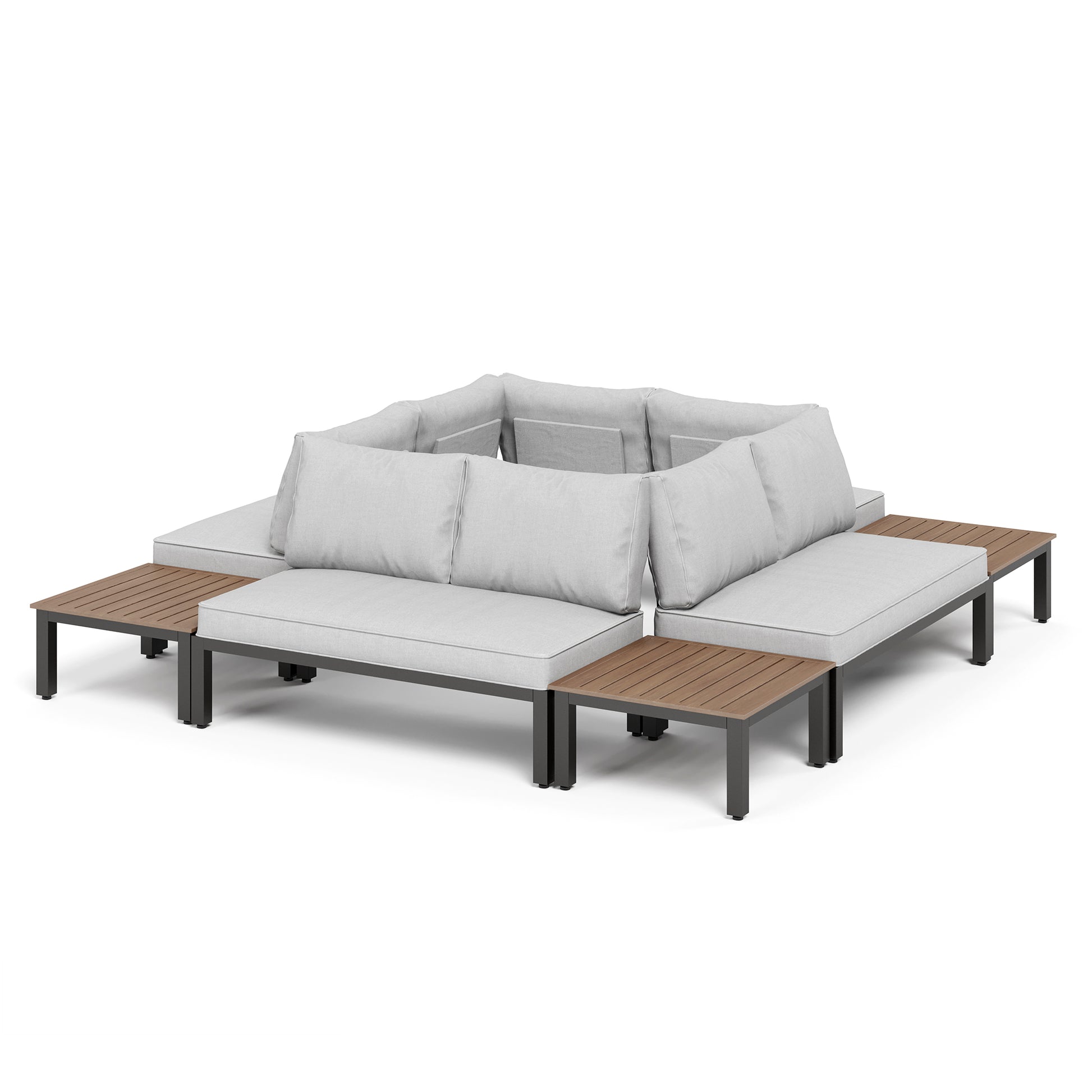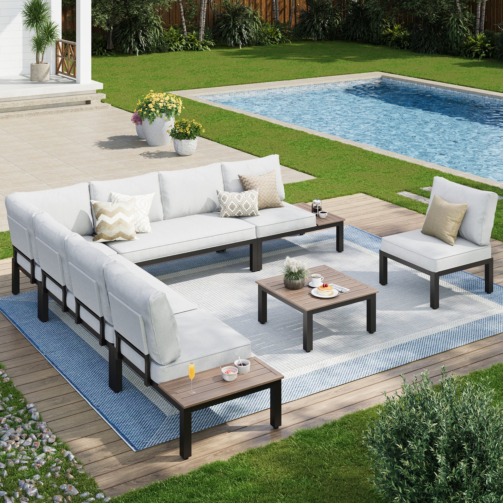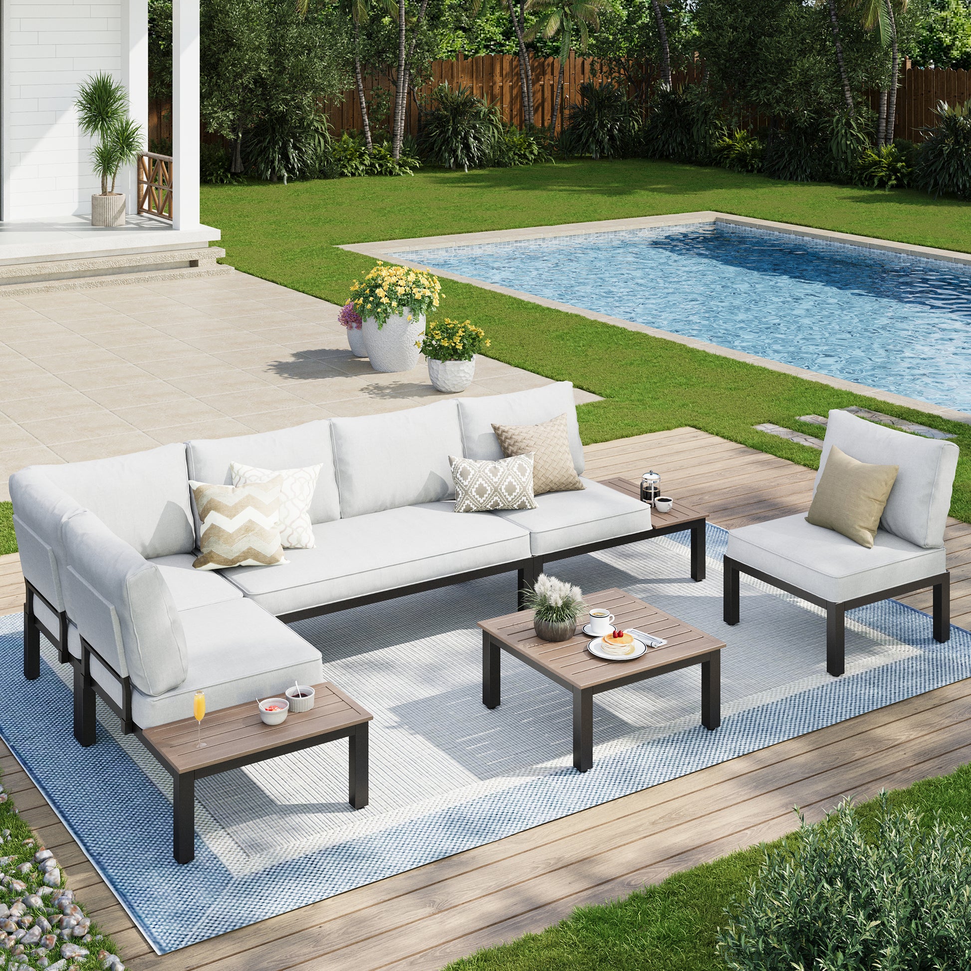 Captiva Designs Outdoor Off-white Conversation Set with Sectional Sofa & Coffee Table & Removable Cushion