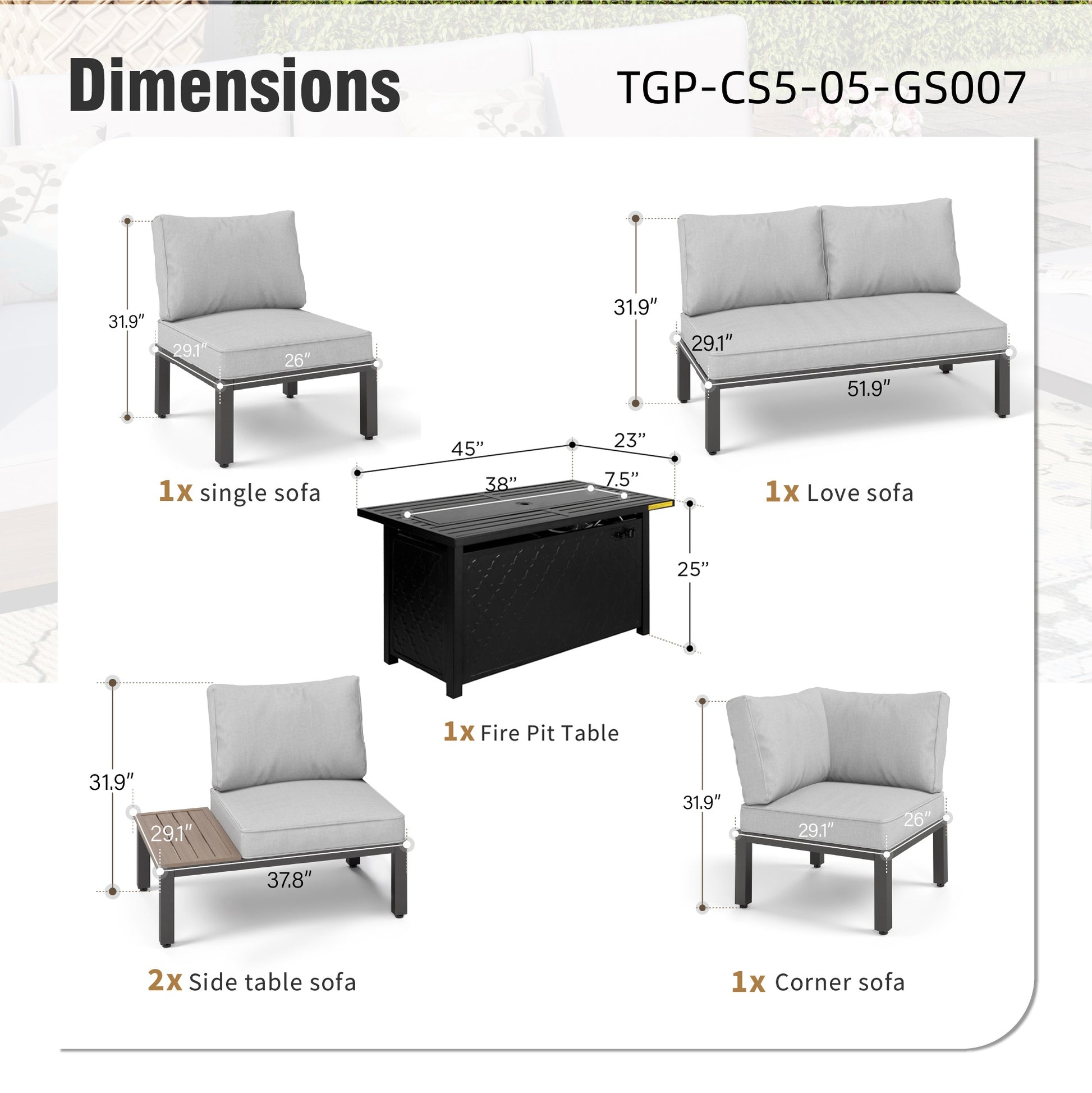 - Side table sofa: 29.1"L x 37.8"W x 31.9"H