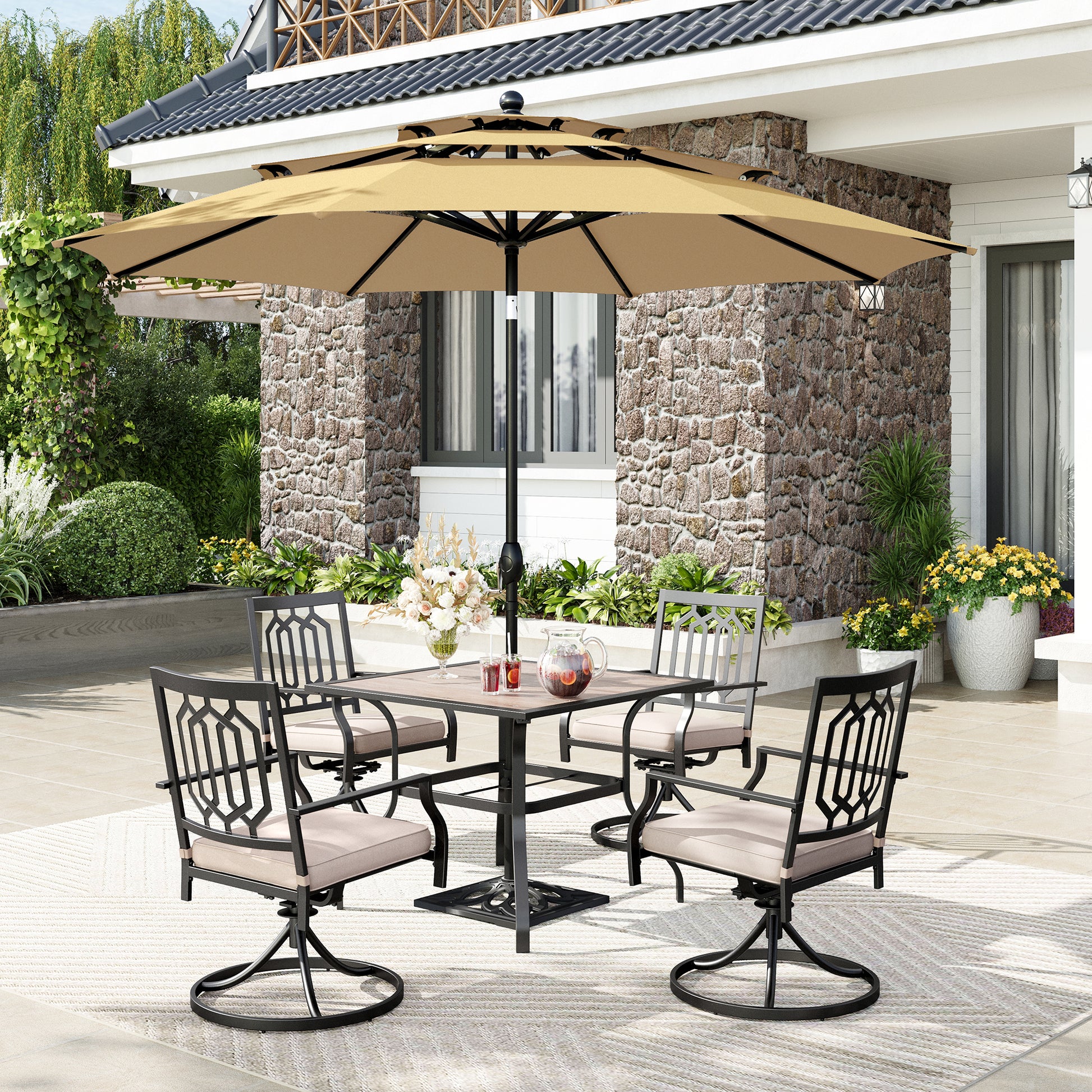 Captiva Designs 6pc Patio Square Table & Fusiform Back Metal Chairs & Beige Umbrella
