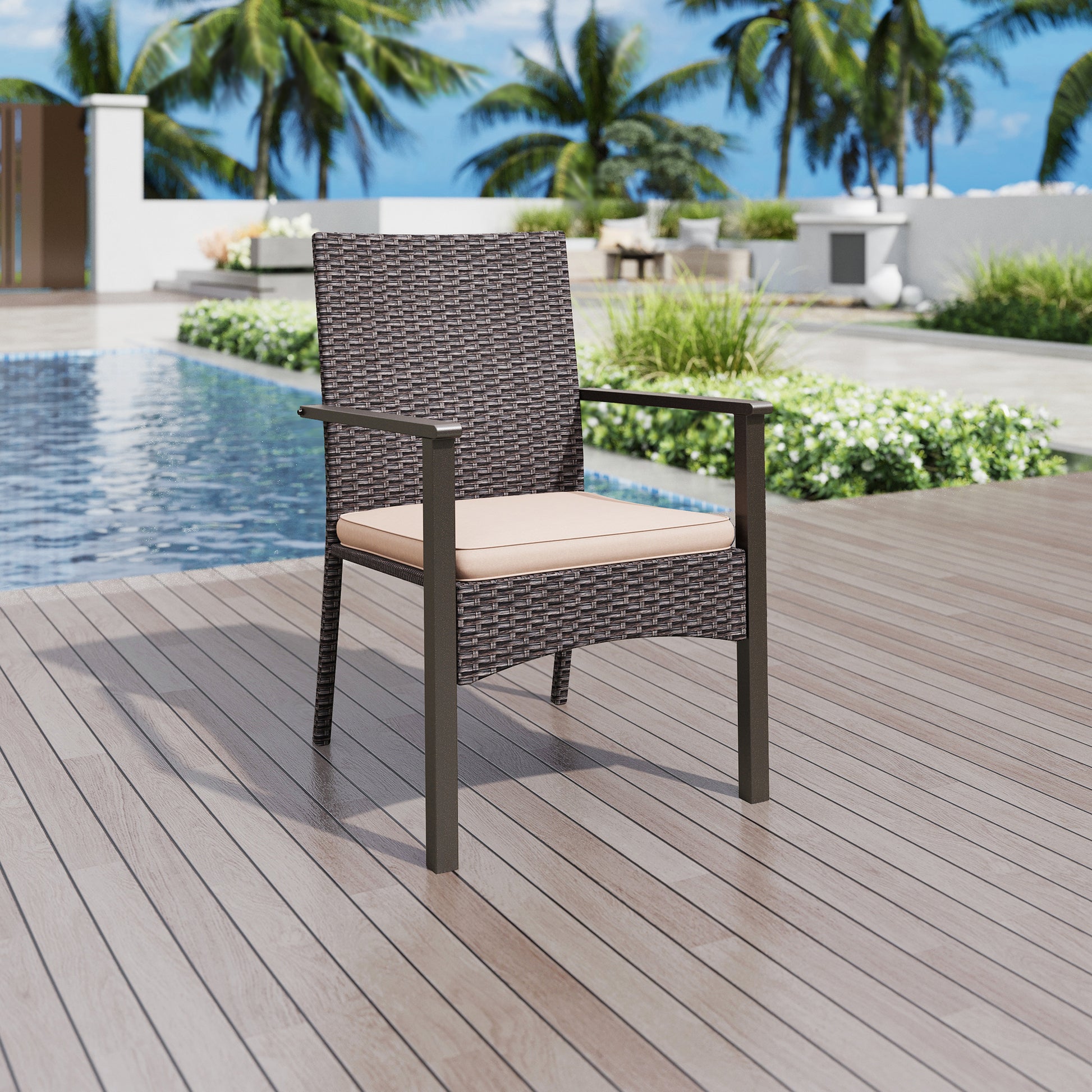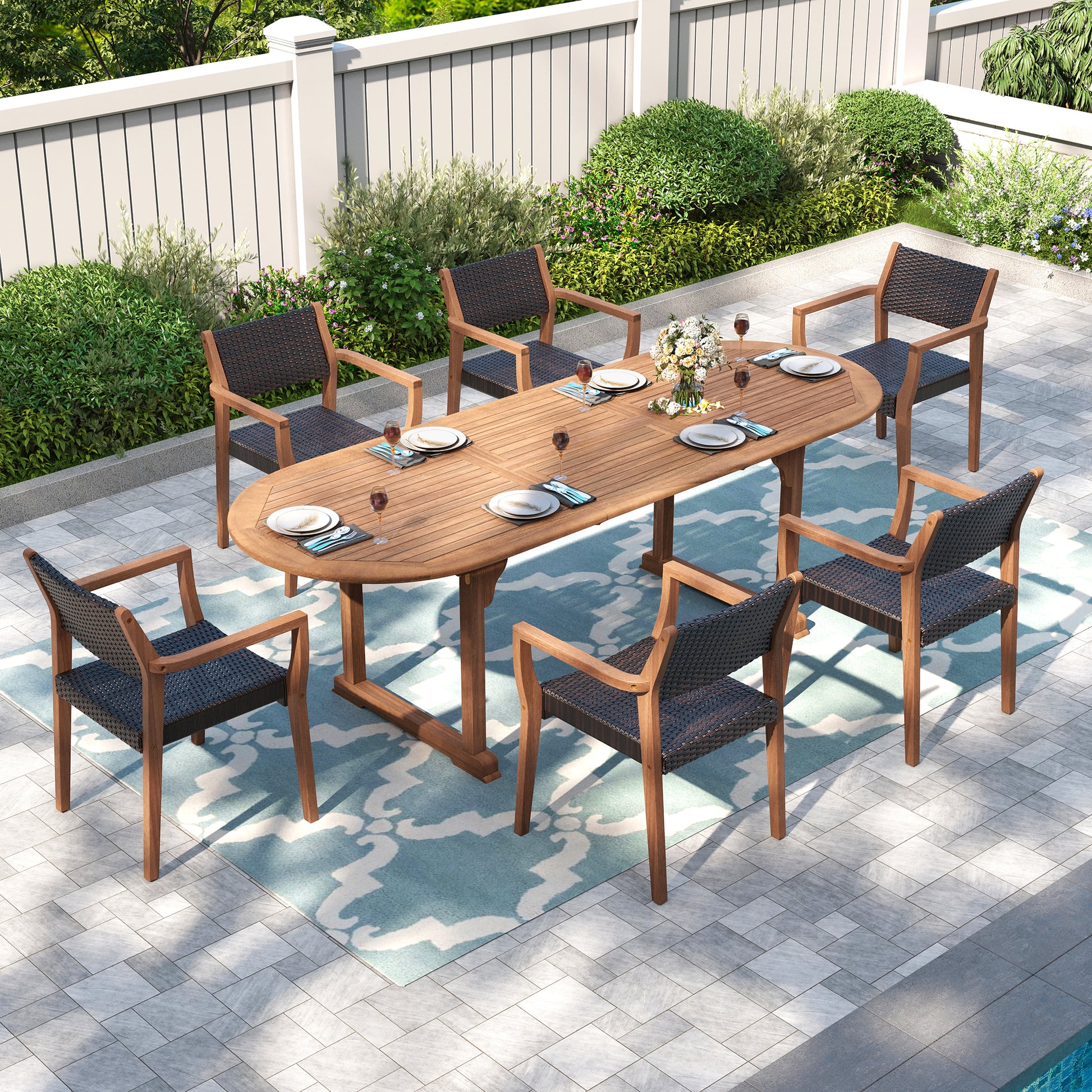 [CAPTIVA DESIGNS] Transform your outdoor space with this comprehensive 7-piece set, featuring a spacious rectangle table and six armrest chairs for stylish and functional entertaining. Constructed with durable, weather-resistant materials, the chairs provide ergonomic support and the generous table accommodates all your gatherings. This elegant collection creates an inviting retreat that enhances your patio or garden while maximizing comfort and durability.