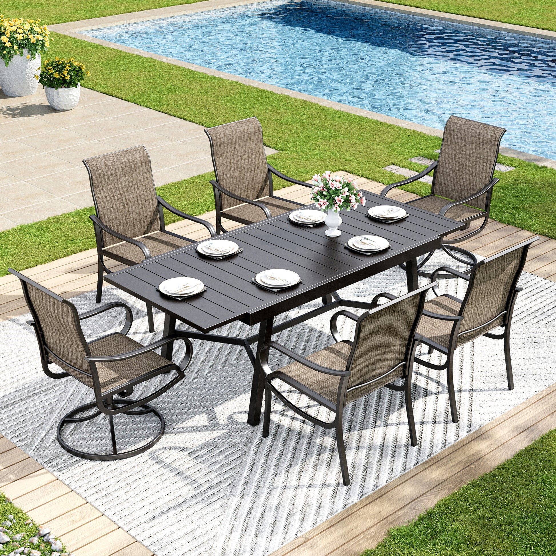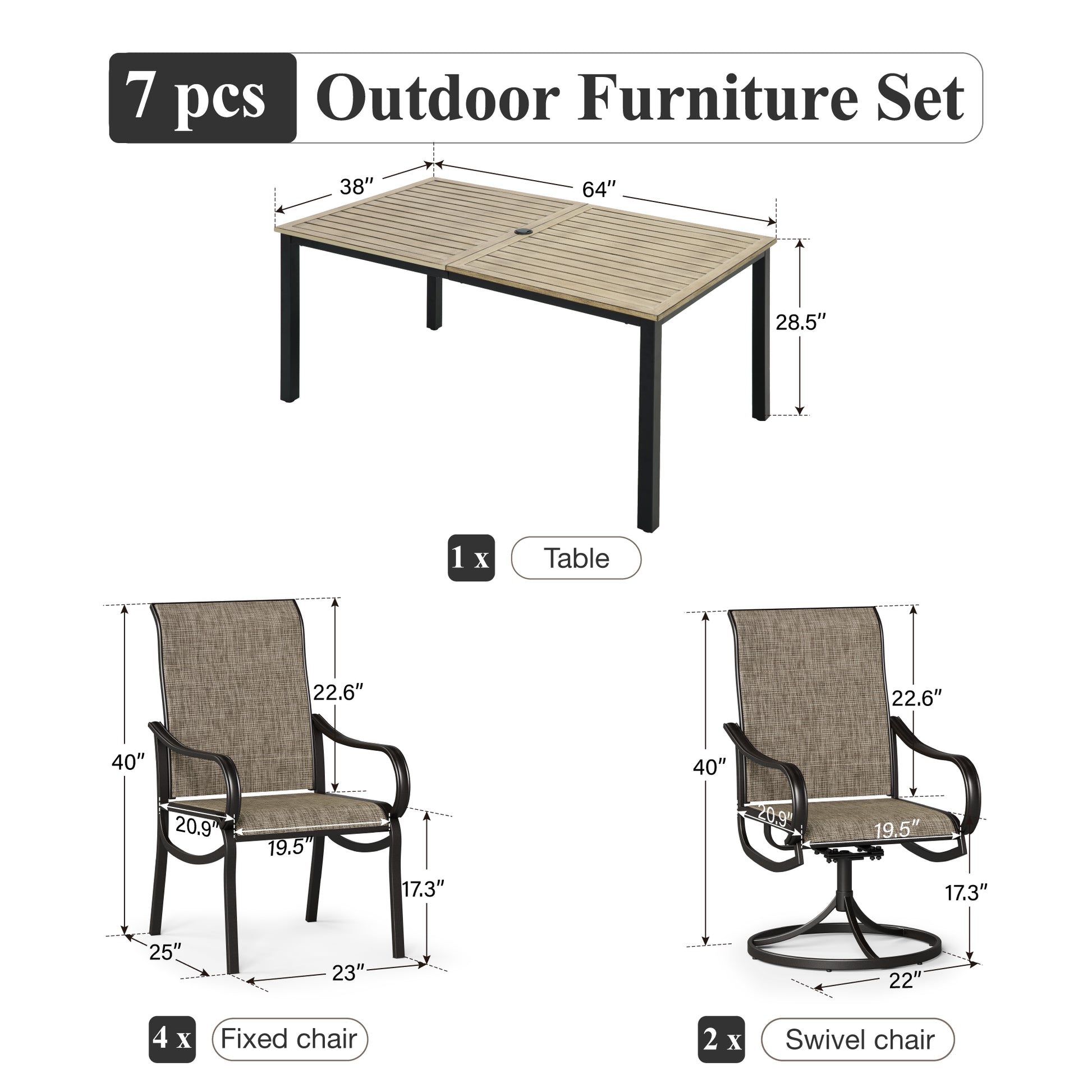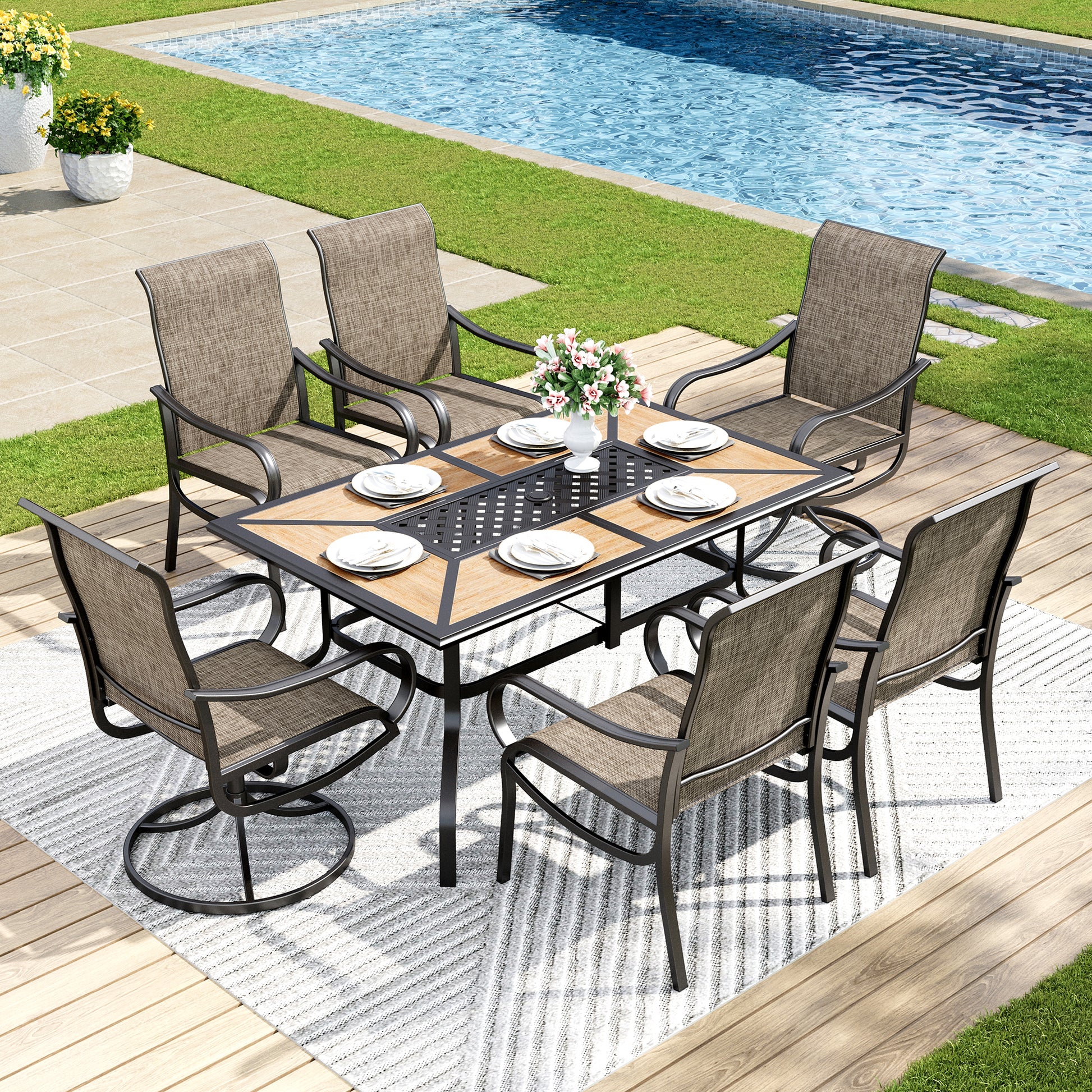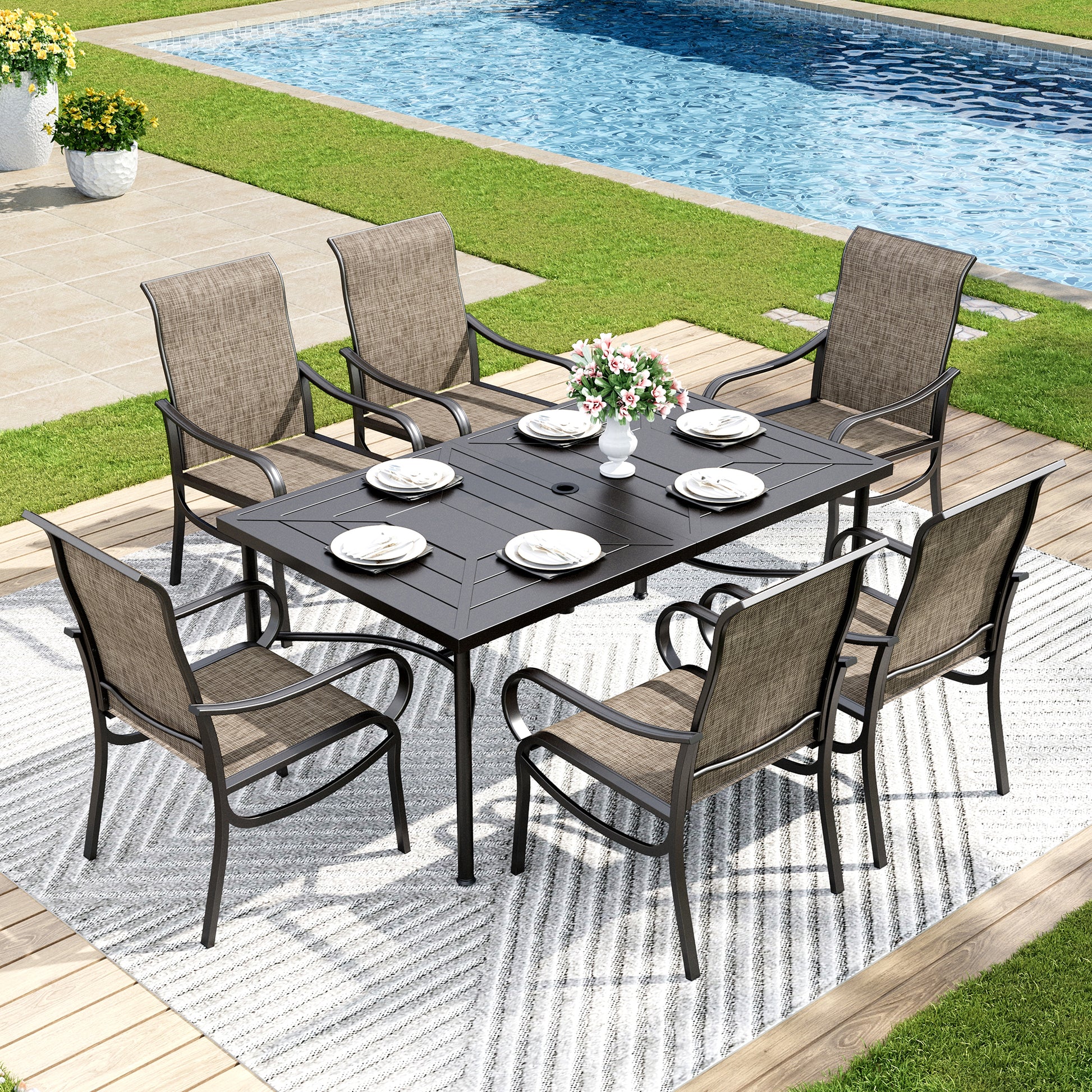 Captiva Designs 7pc Outdoor Dining Rectangle Table & Breathable Quick-dry Sling Chairs