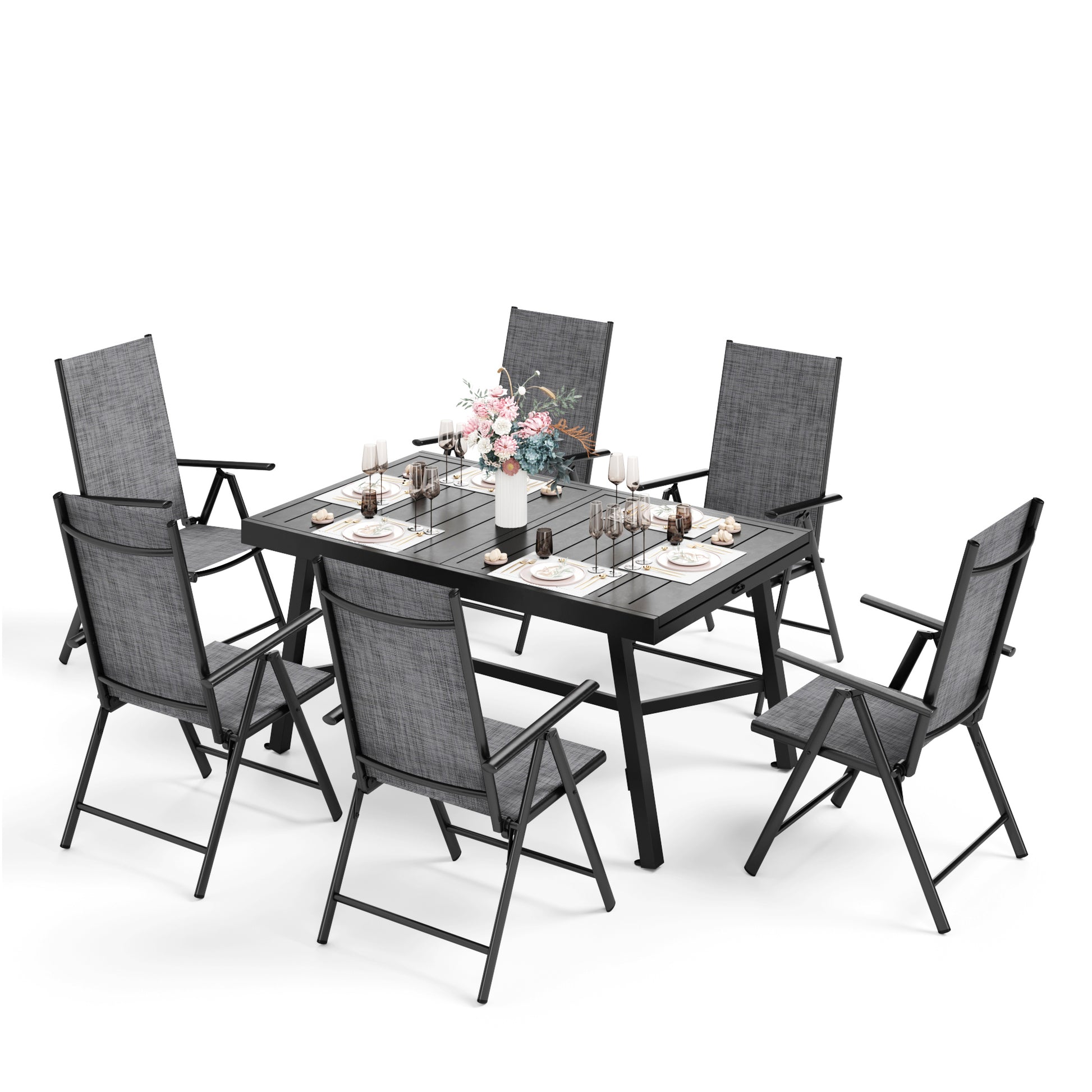Captiva Designs 7pc Patio Dining Set with Slat-top Rectangle Table & Sling Foldable Chair