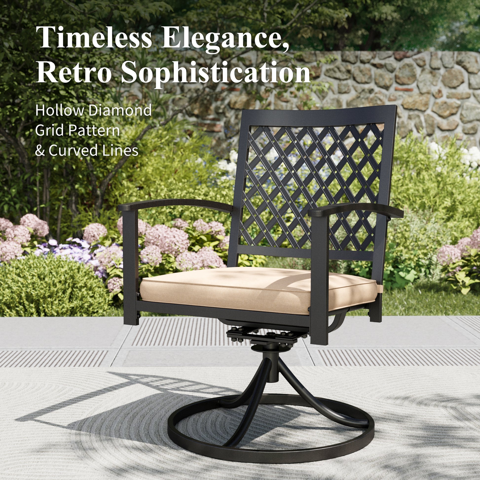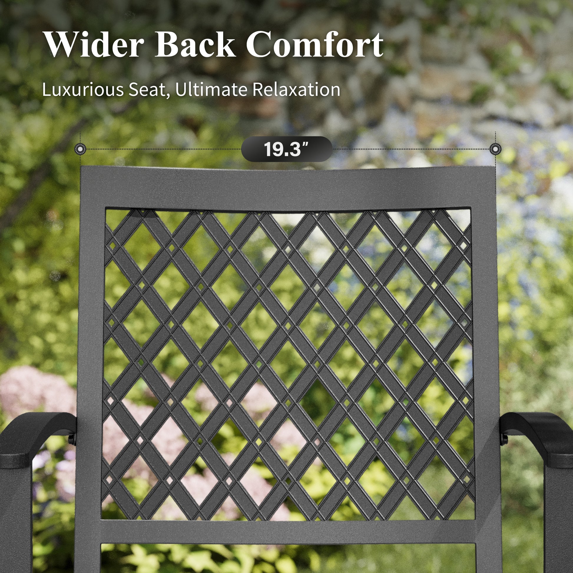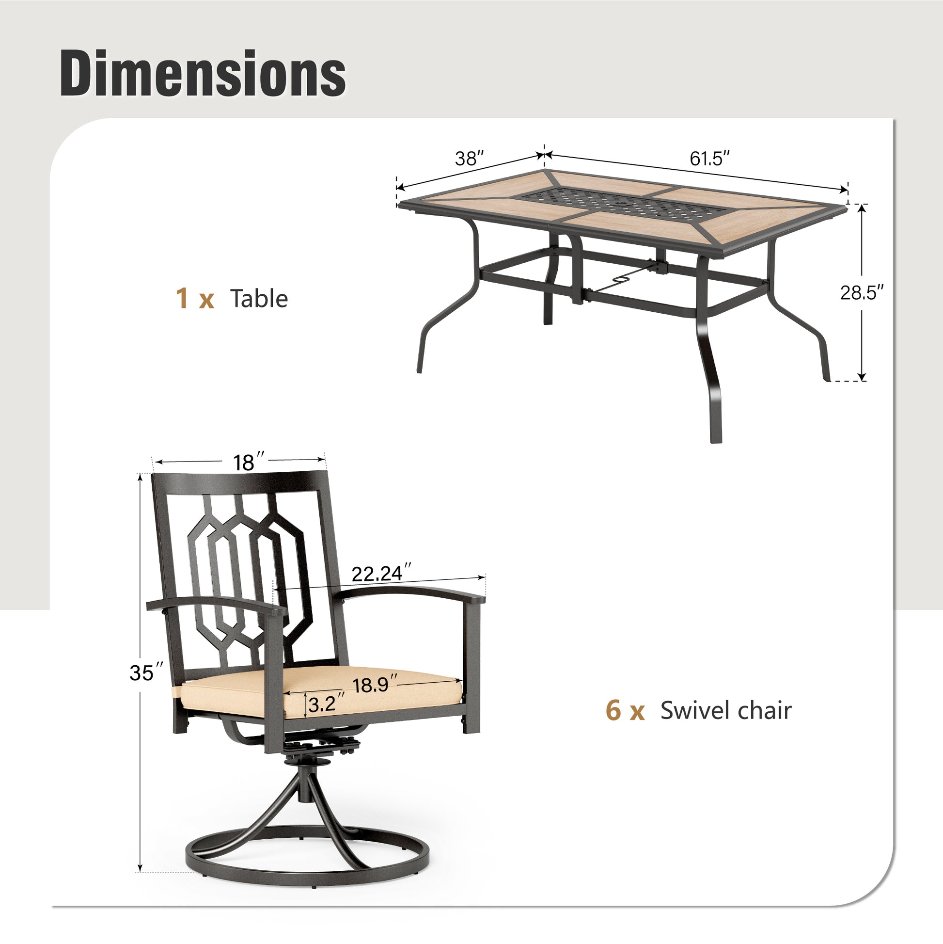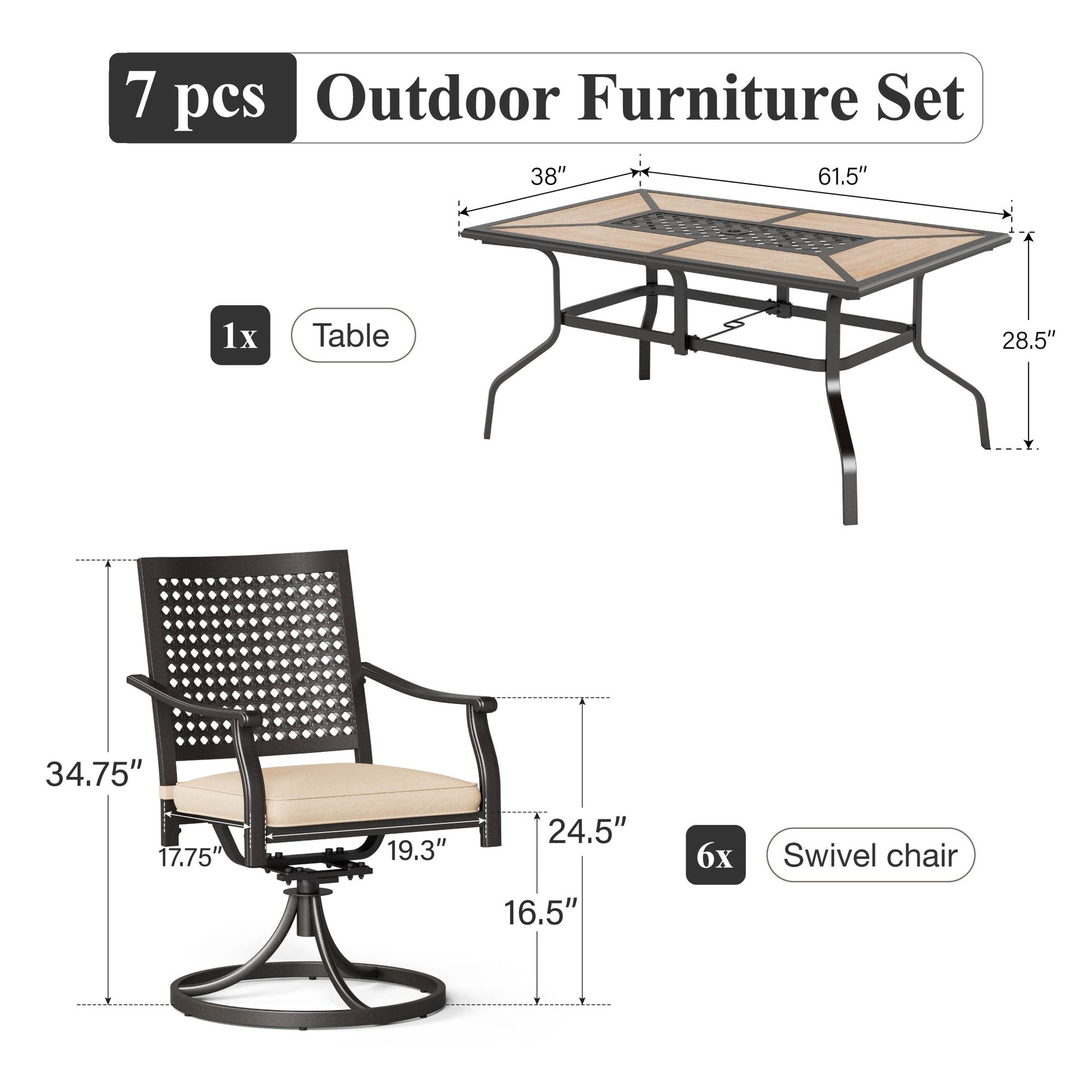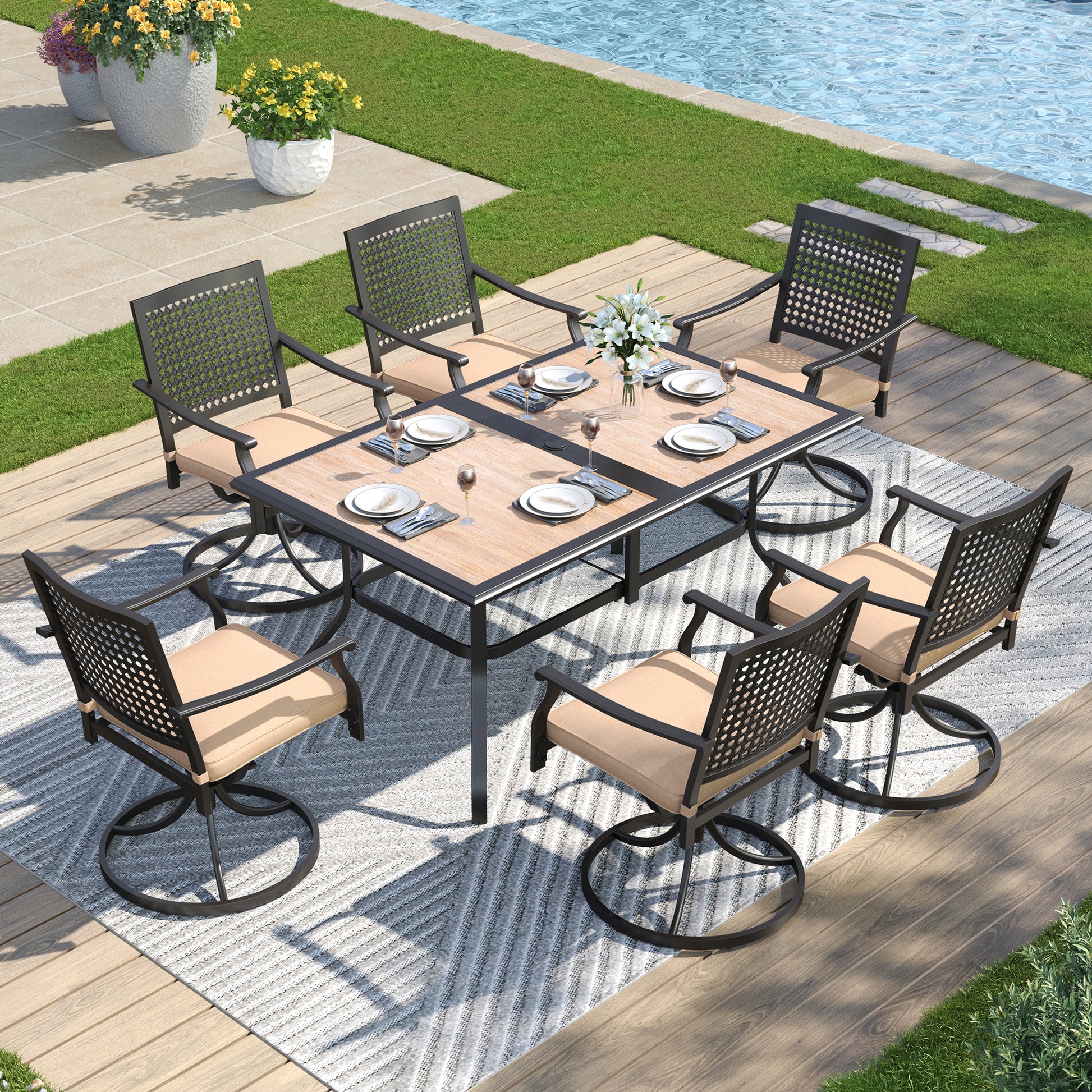 [CAPTIVA DESIGNS] Transform your outdoor entertaining space with this sophisticated seven-piece patio dining set from Captiva Designs. Featuring a spacious wood-look rectangle steel table paired with six matching metal chairs showcasing distinctive pattern backs, this collection delivers both style and durability.