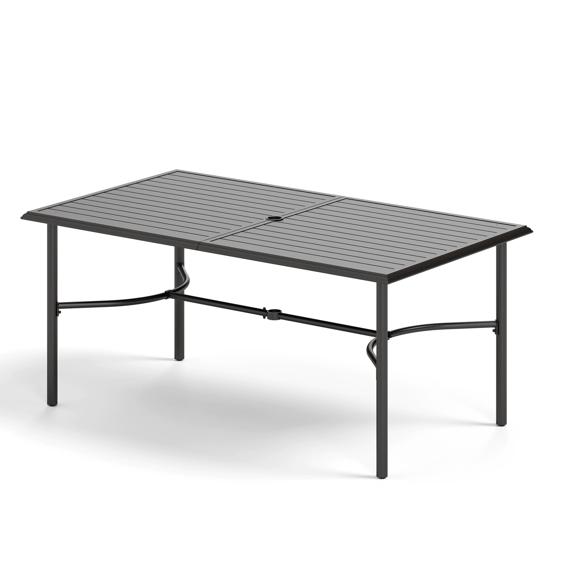 Captiva Designs 7pc Patio Slatted Top Steel Dining Table with Umbrella Hole & Stylish Cushioned Metal Chairs