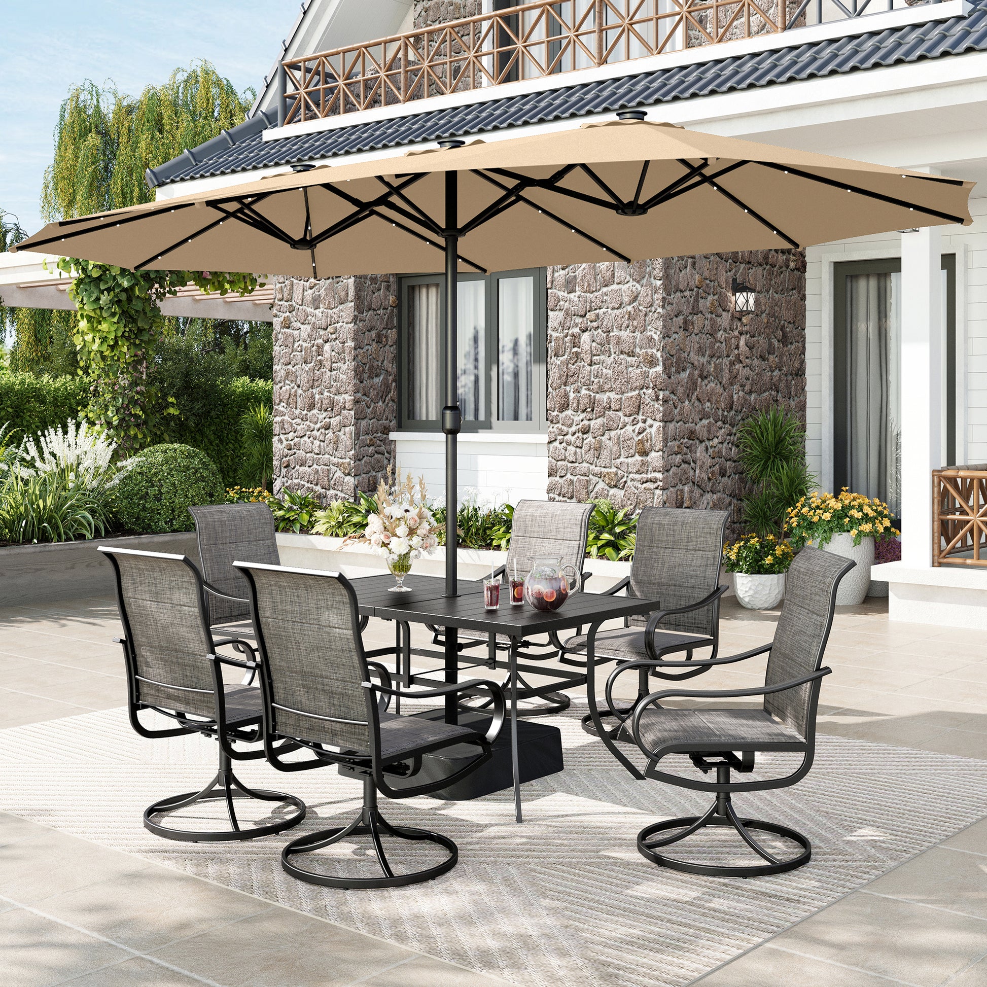 Captiva Designs 8pc Patio Dining Set with Rectangular steel table & Padded Sling Swivel Chairs & Market Umbrella