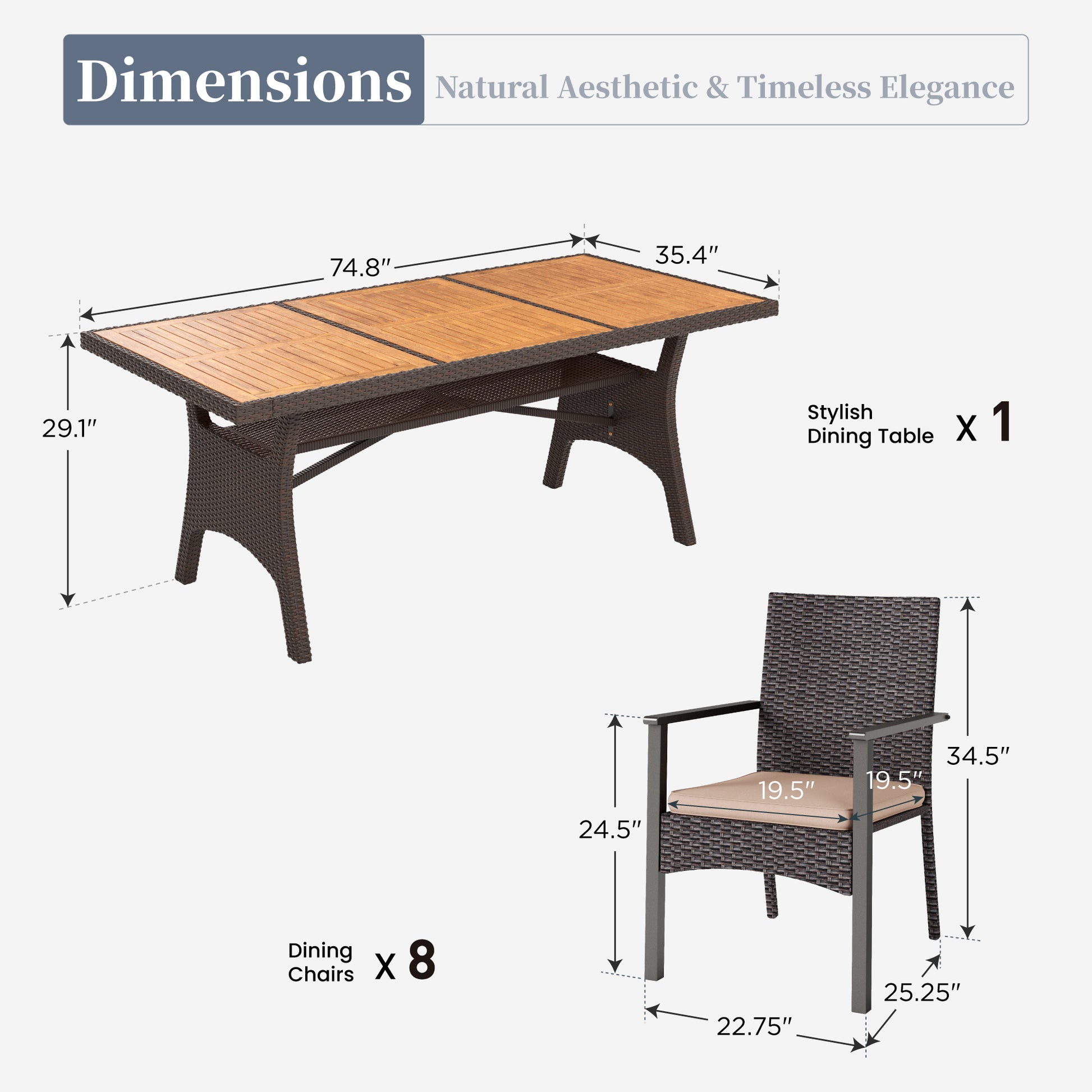[CAPTIVA DESIGNS] Transform your outdoor space with this comprehensive 9-piece set, featuring a spacious rectangle table and eight armrest chairs for stylish and functional entertaining. Constructed with durable, weather-resistant materials, the chairs provide ergonomic support and the generous table accommodates all your gatherings. This elegant collection creates an inviting retreat that enhances your patio or garden while maximizing comfort and durability.