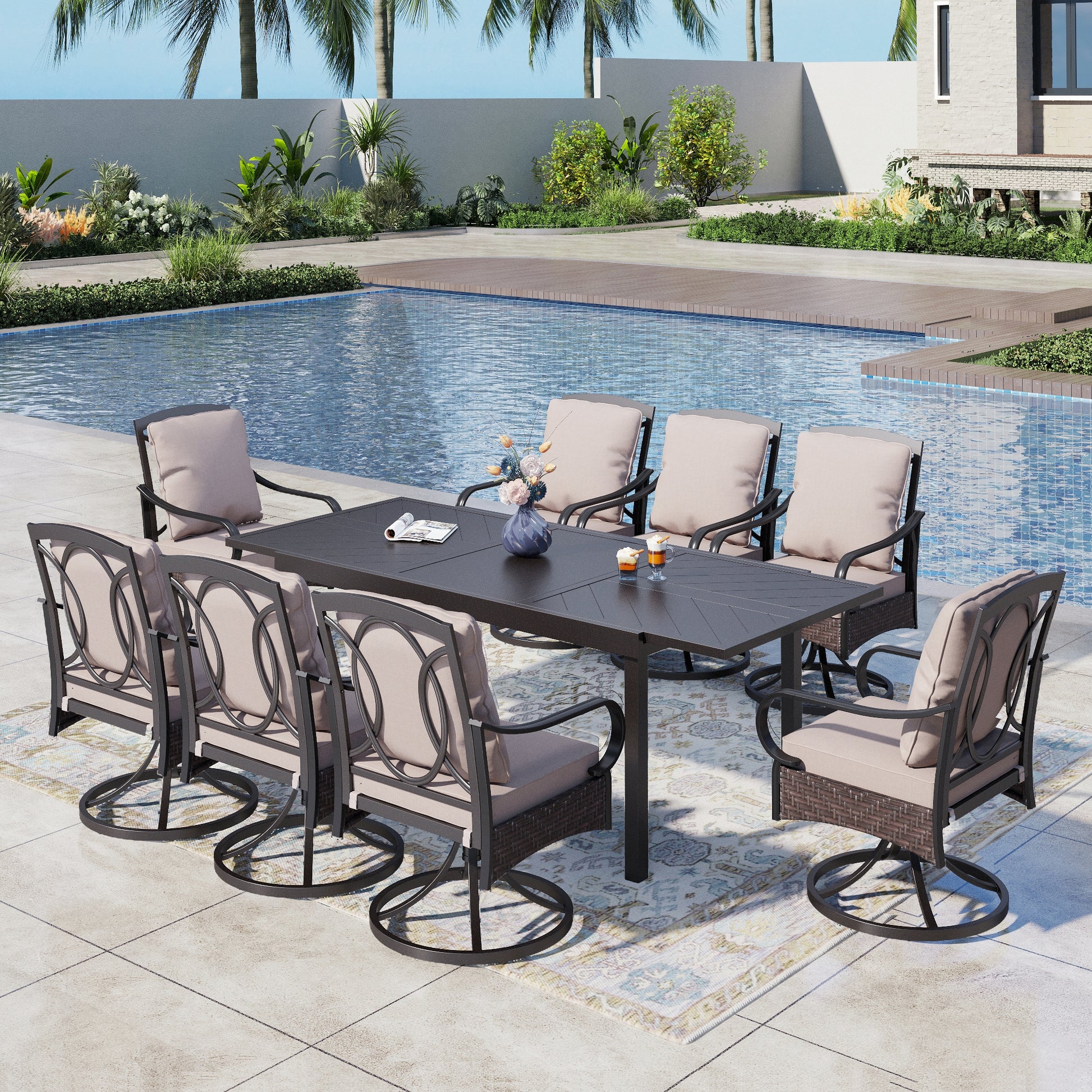 Captiva Designs 9pc Patio Dining Extendable Steel Rectangle Table & Rattan Metal Arm Chairs