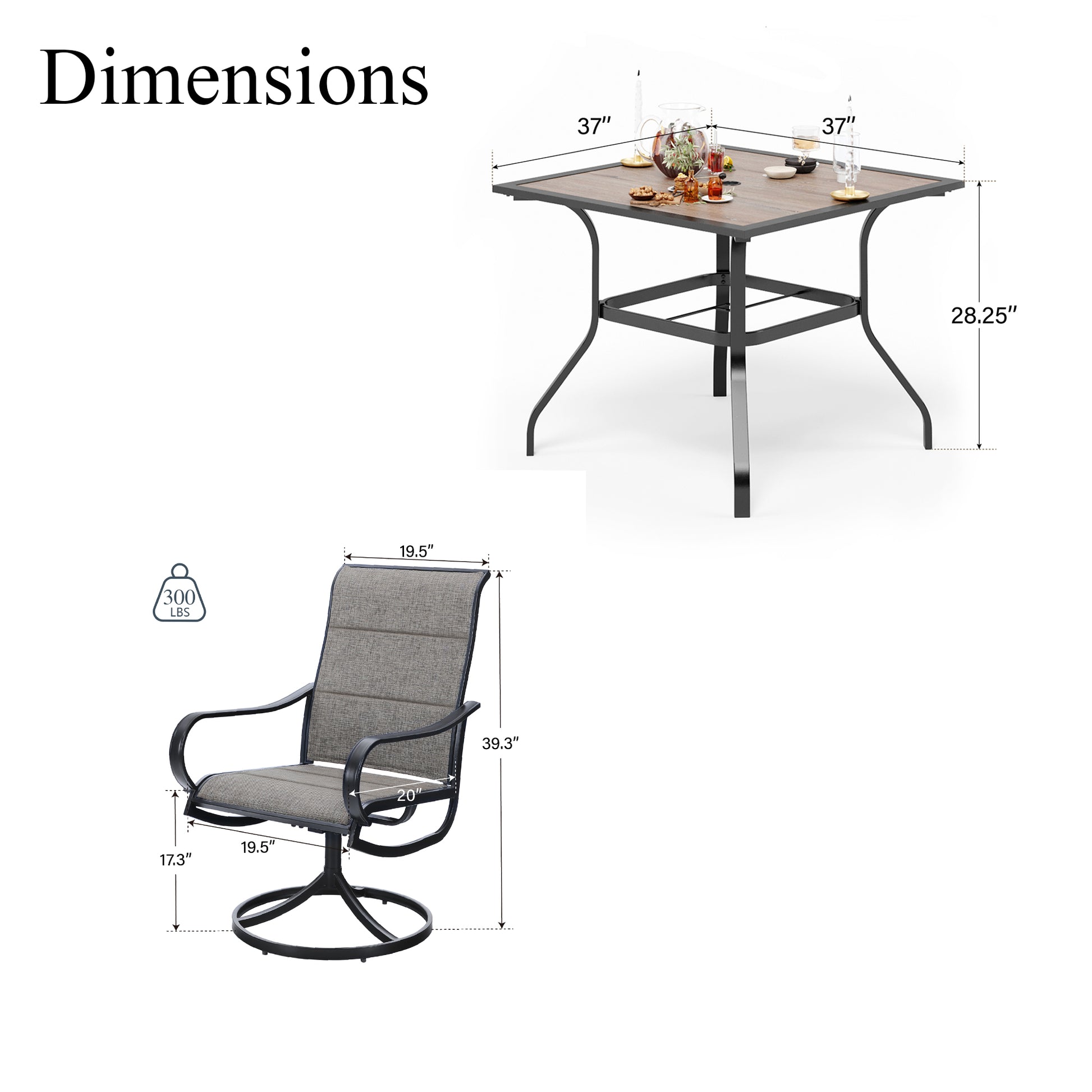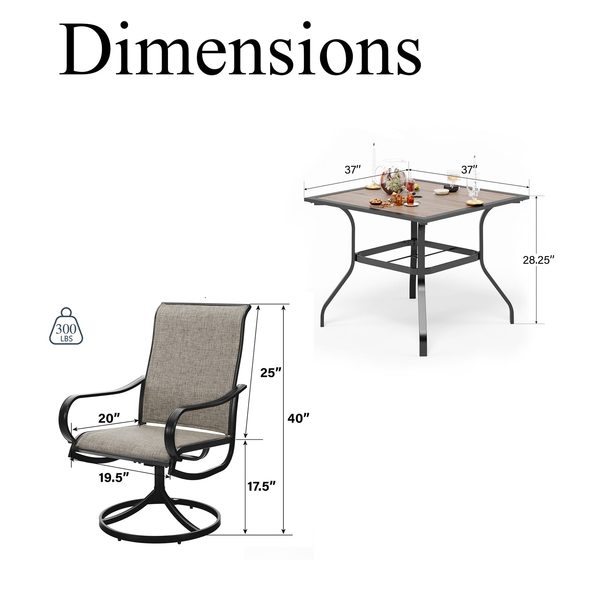 Captiva Designs 5pc Patio Wood-look Square Dining Table with Umbrella Hole & Textilene Swivel Chairs