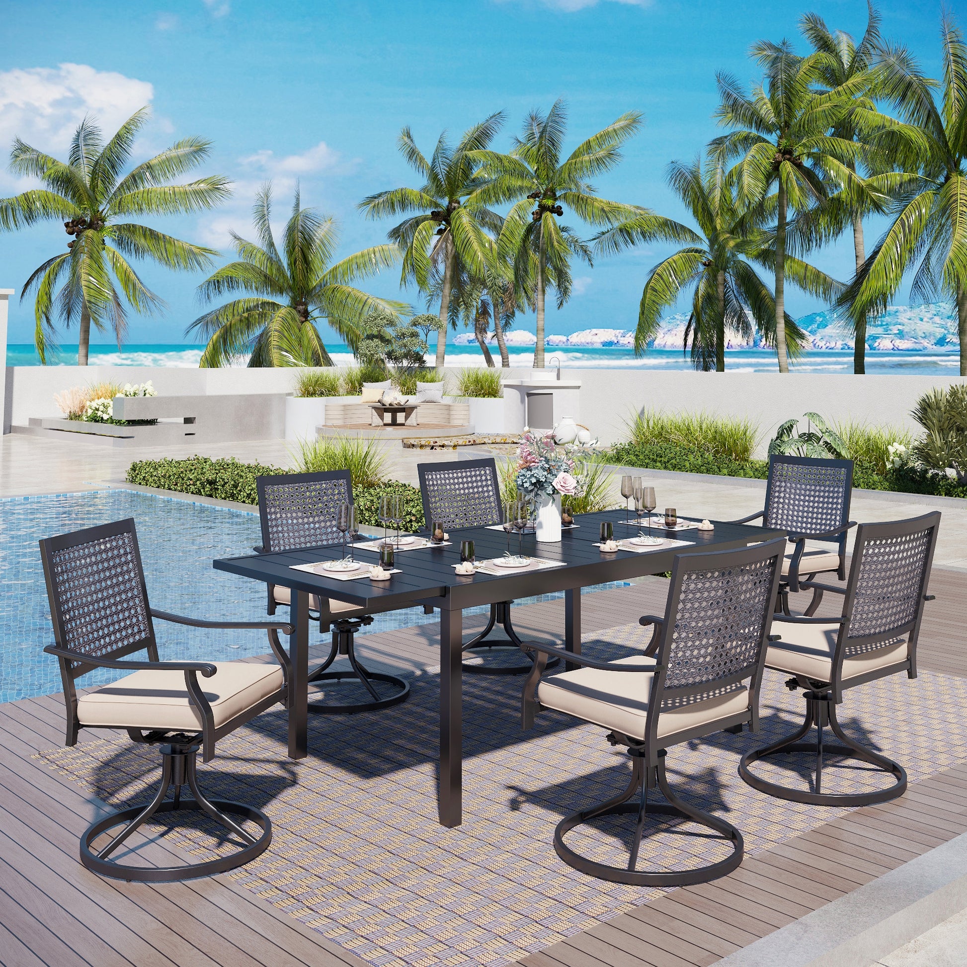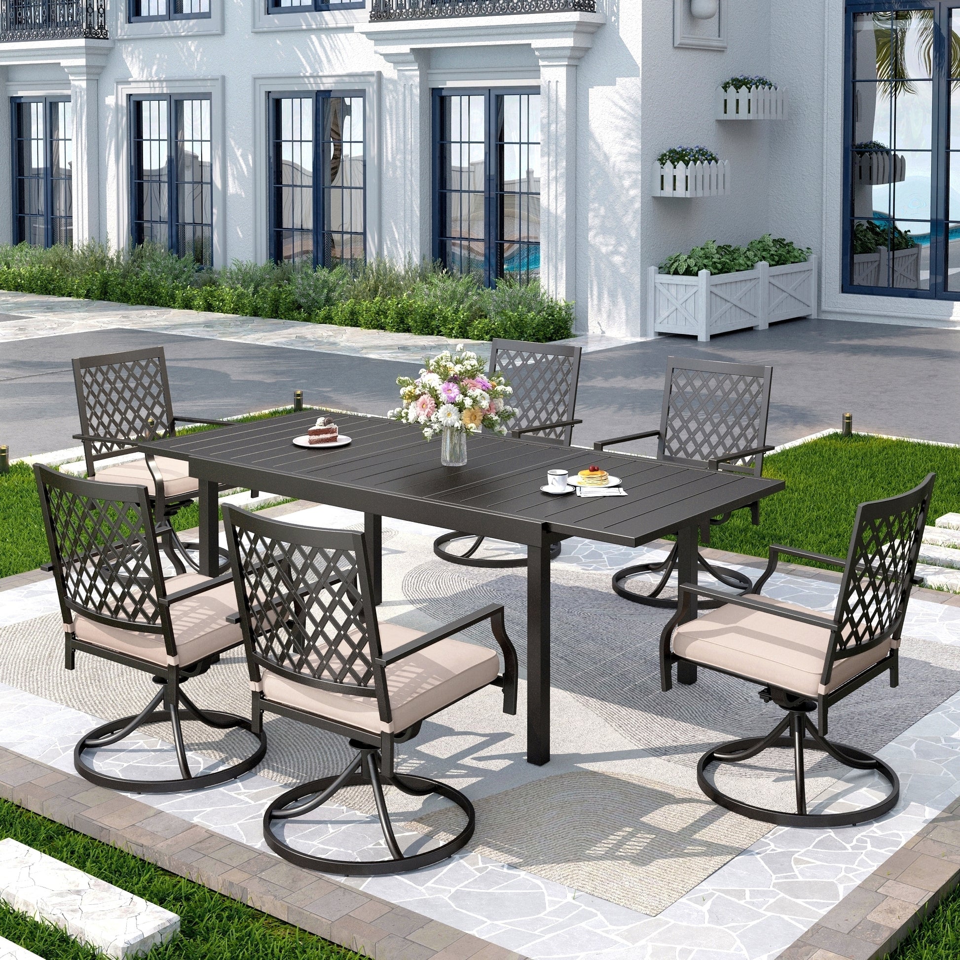 Captiva Designs 7pc Patio Slat-top Rectangle Dining Steel Table & Armrest Metal Chairs