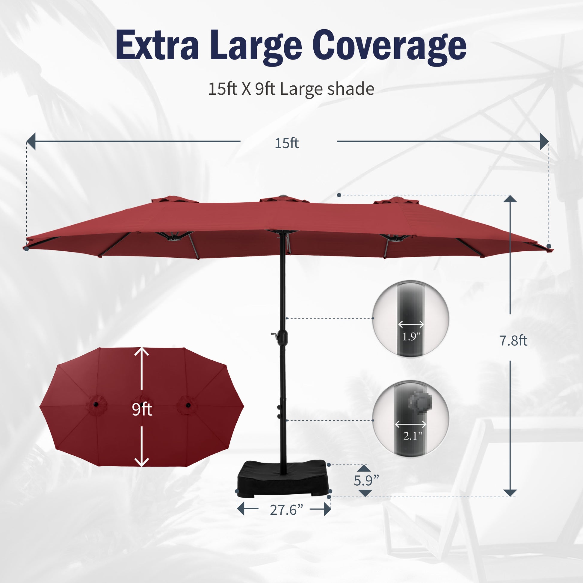 Umbrella Dimensions: 15 Feet [Dia] x 15 Feet [L] x 9 Feet [W]