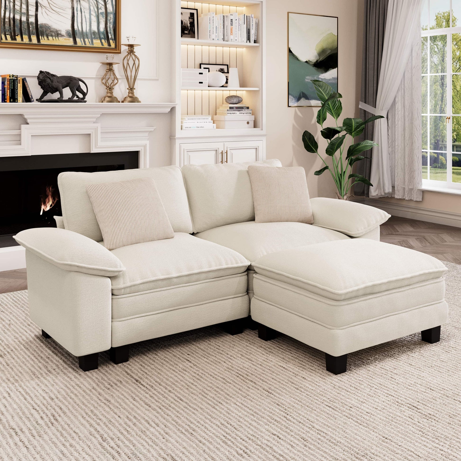 Captiva Designs Cloud Modular 3PC Sectional Loveseat Sofa Set, 87.5" Comfy Couches with 1 Movable Ottoman for Living Room Apartment
