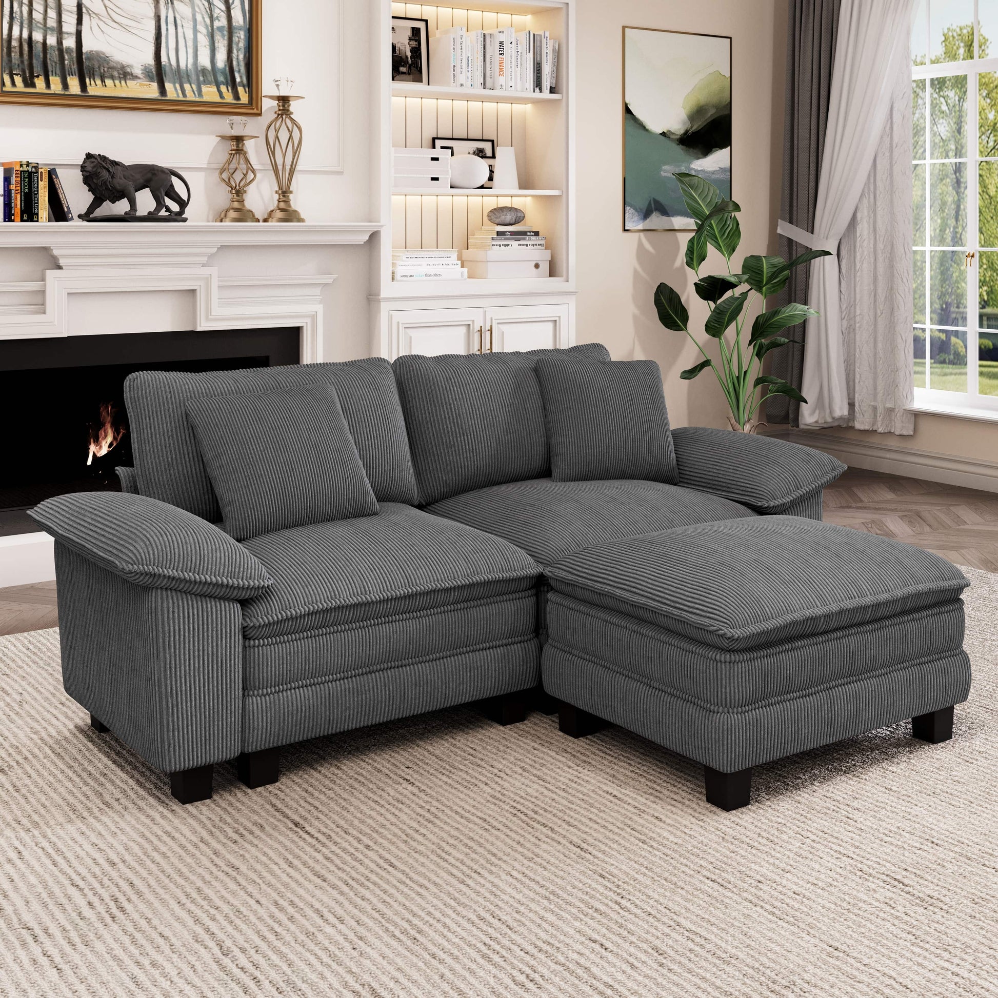 This Cloud Modular 3PC Sectional Sofa Set brings ultimate flexibility and comfort to your living space with its adaptable design. Featuring removable and movable components, including a versatile ottoman, this sofa can be easily reconfigured to suit your space and preferences. With its deep 24.4" seat depth and 13.6" thick double-layer cushions, the sofa offers exceptional comfort whether you're lounging or relaxing. The ergonomic design and solid wood frame provide durability, making it safe and sturdy for both adults and kids. The pet- and kid-friendly corduroy and chenille fabrics are soft yet durable, ensuring long-lasting comfort. Plus, the removable covers make cleaning a breeze. With easy assembly and a 365-day warranty, this sofa set is a convenient and reliable addition to your home.