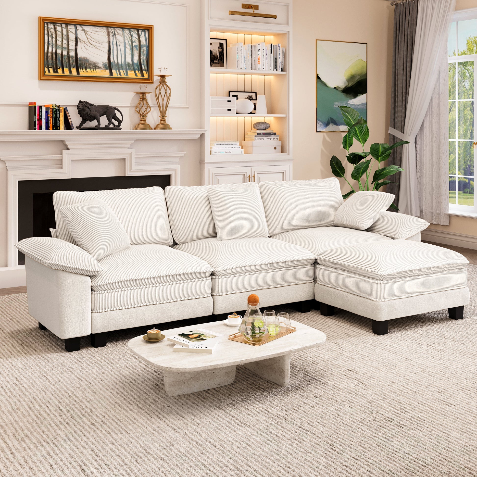 Captiva Designs Cloud Modular 4-Seater Sectional Sofa with L-Shaped Chaise and Movable Ottoman, Living Room Couch