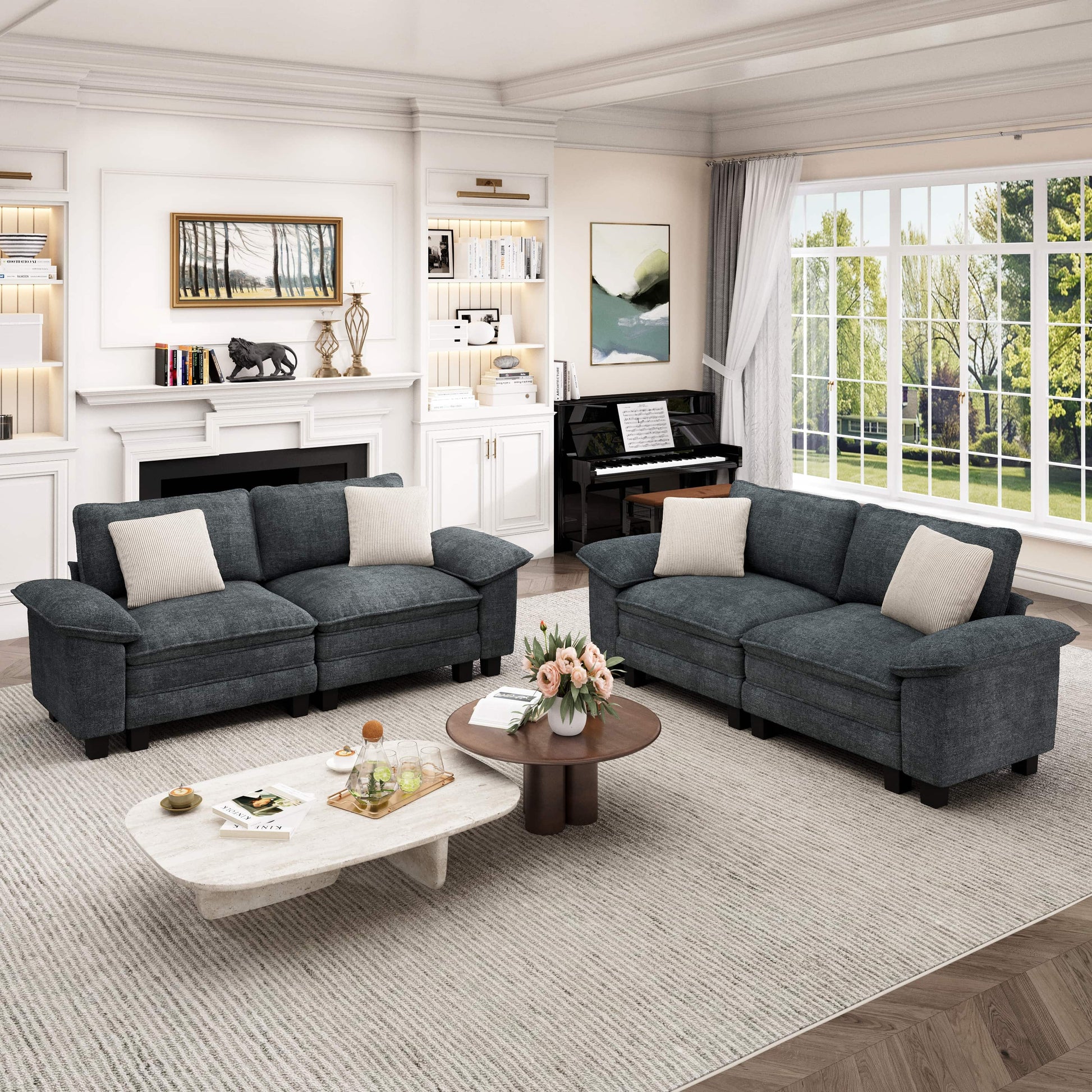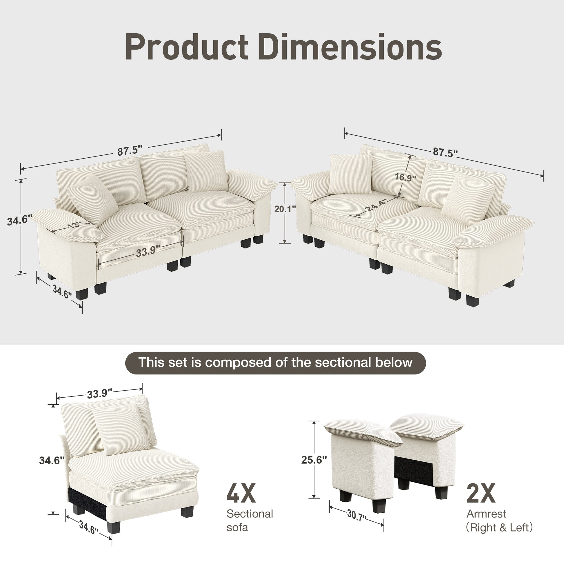 Experience the cozy comfort of the Captiva Designs Cloud Modular Loveseat Sofa Set. Designed with deep 24.4" seats, high-density foam, and soft corduroy upholstery, this 2-piece sectional brings a relaxed and inviting feel to any living room. The modular design allows you to customize your layout—whether an L-shape, U-shape, or sofa bed—while the solid wood frame ensures lasting durability and support. Easy to assemble and beautifully crafted, it’s a perfect blend of comfort, style, and flexibility for your home.