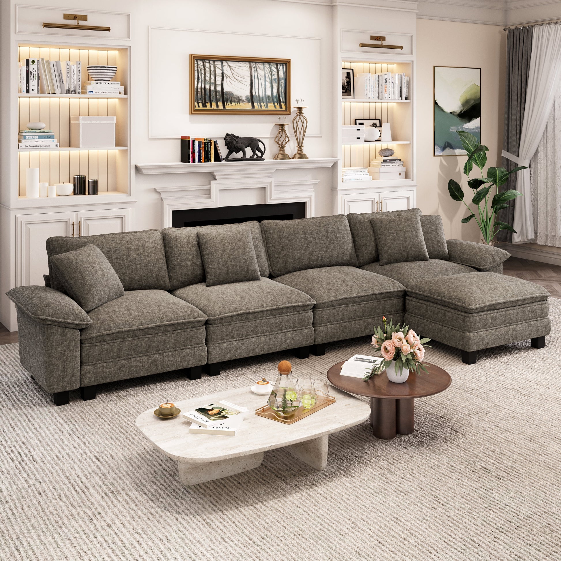 Captiva Designs 5-Seater Cloud Modular Sectional Sofa, 157.5" L-Shaped Couch with Movable Ottoman
