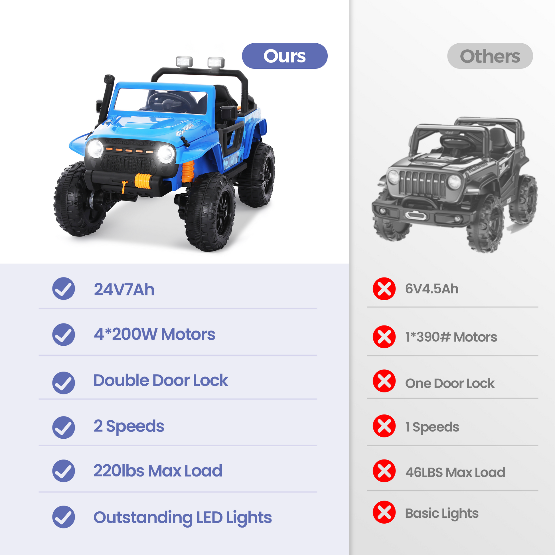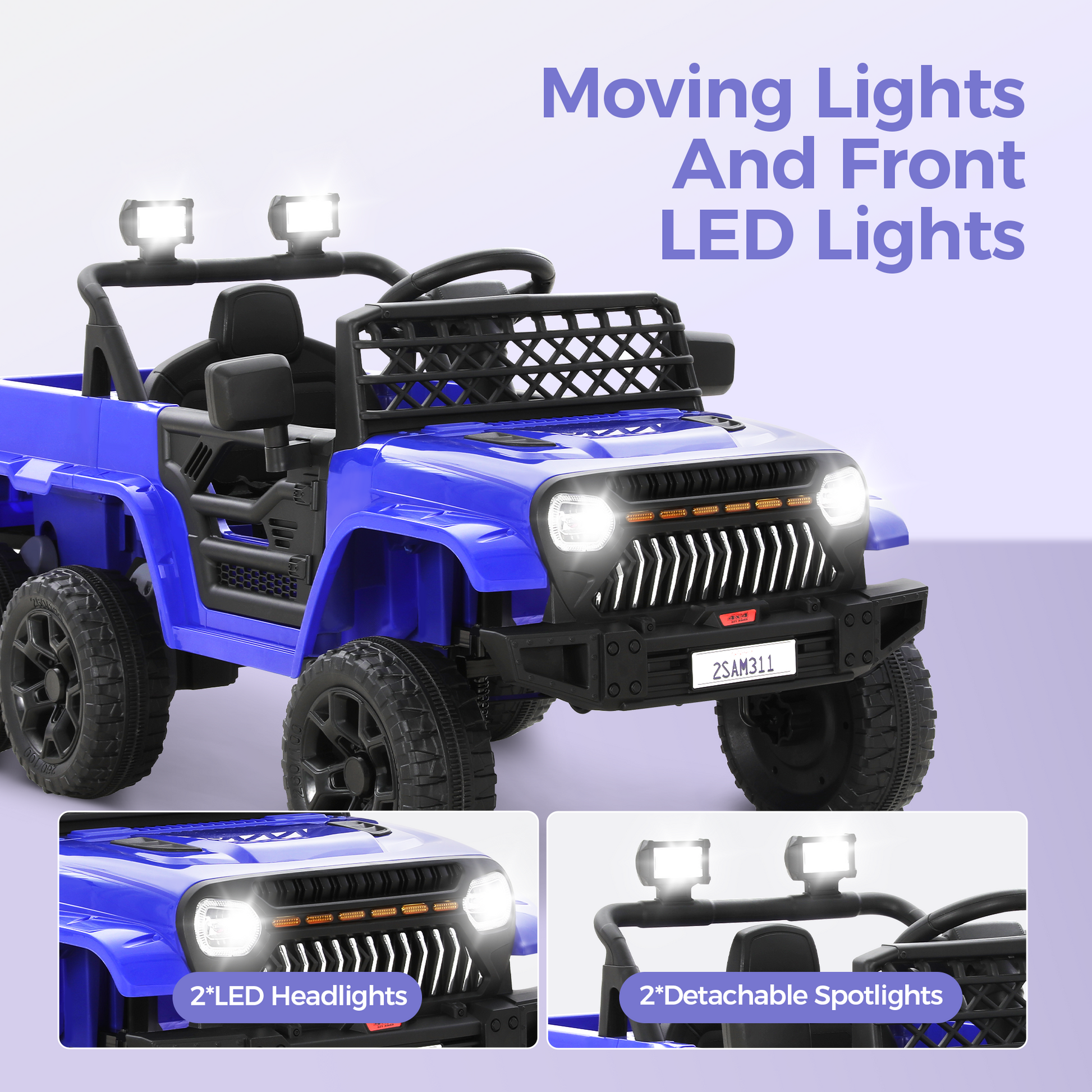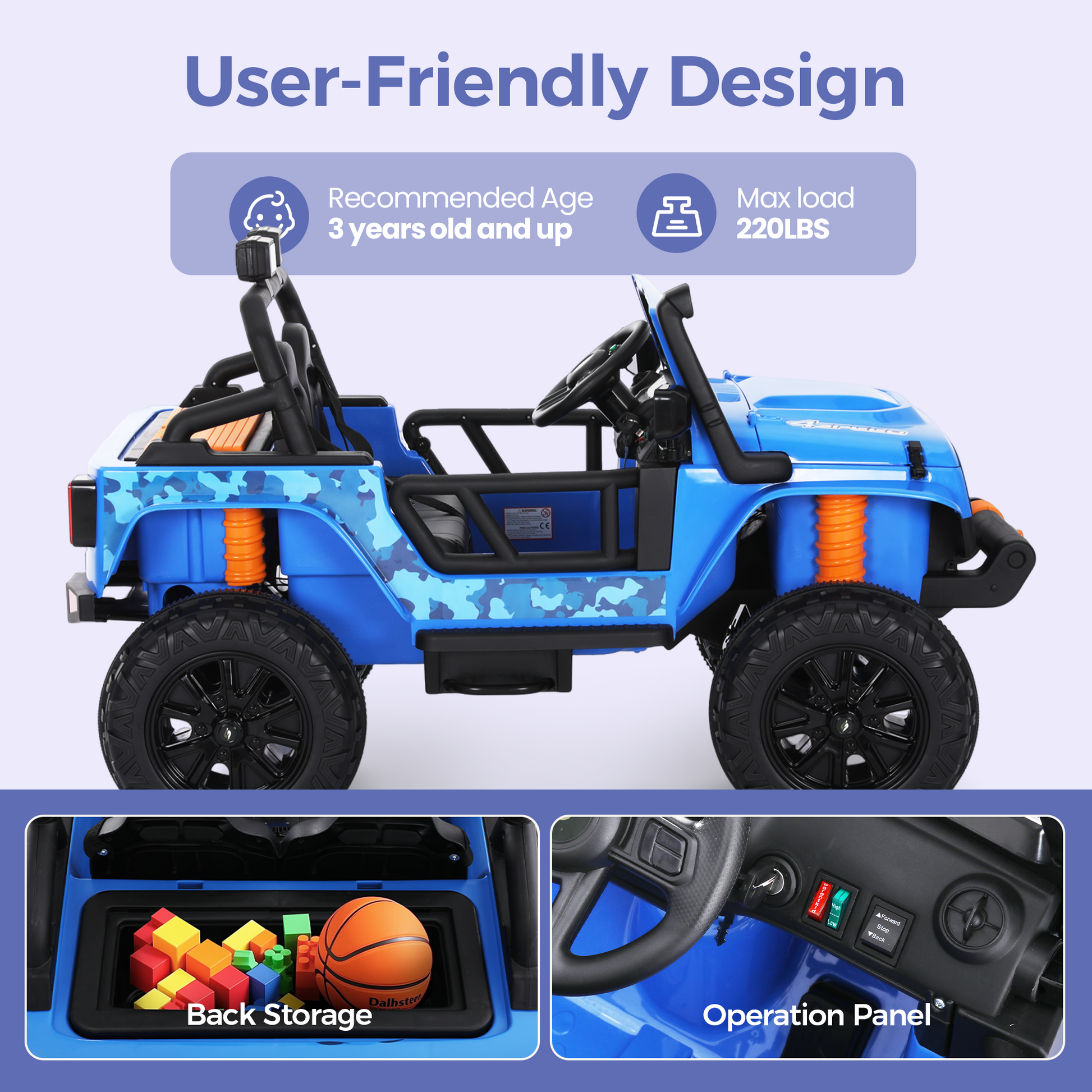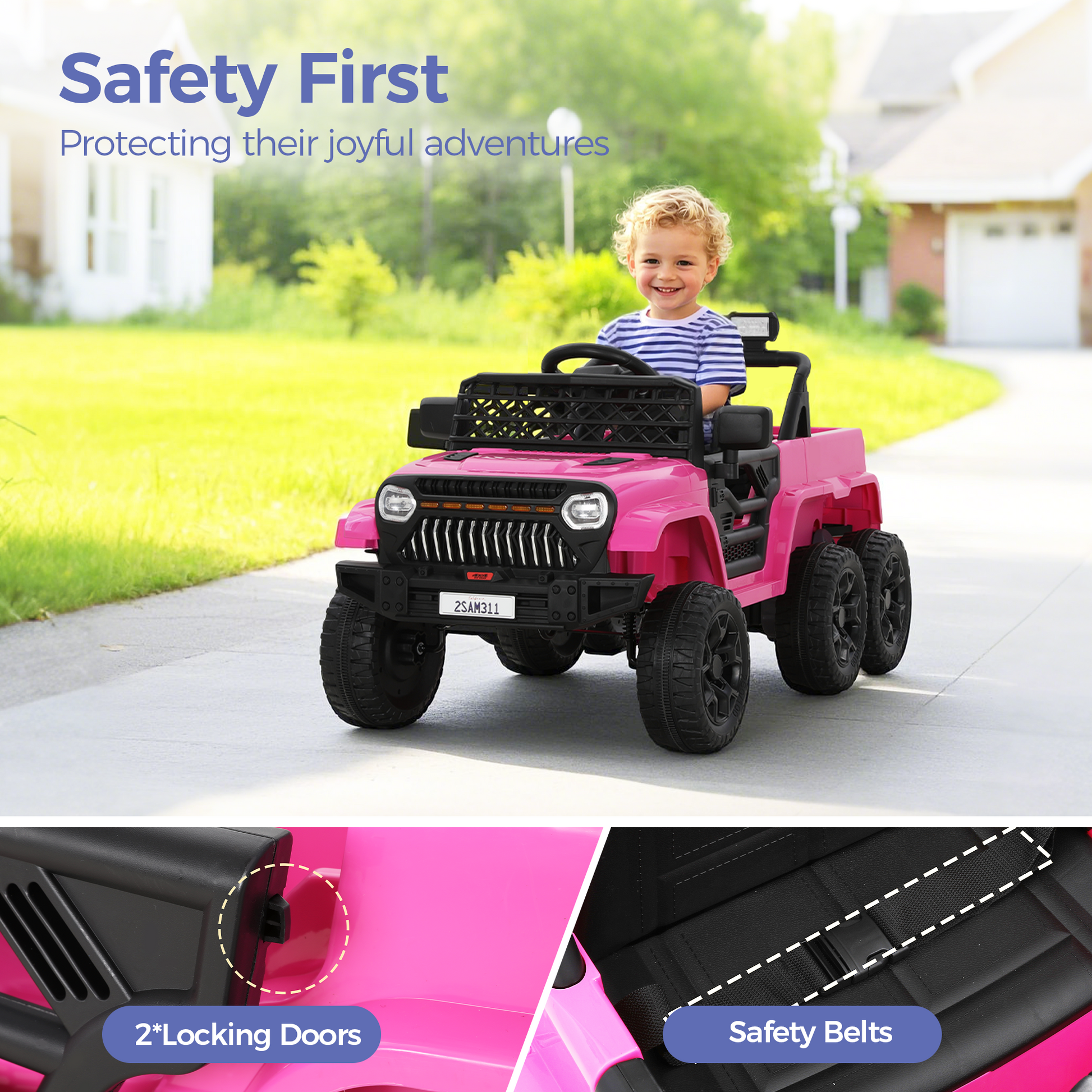 [Captiva Designs] The Captiva Designs Electric Jeep delivers ultimate outdoor adventures with parental and child control modes, blending safety and independence. Choose between powerful rechargeable battery options for extended playtime across any terrain. Safety comes first with locking doors, secure belts, and professional-grade LED lighting. The high-weight-capacity design allows parent-child bonding rides. Complete with Bluetooth music, storage space, and intuitive controls, these Jeeps aren't just toys—they're developmental adventure platforms for ages 3+. Give the gift of exploration today!