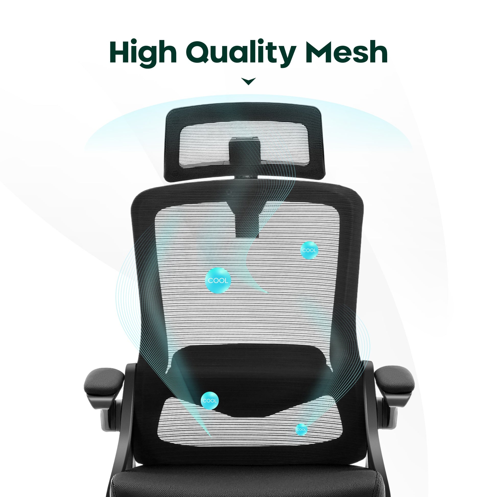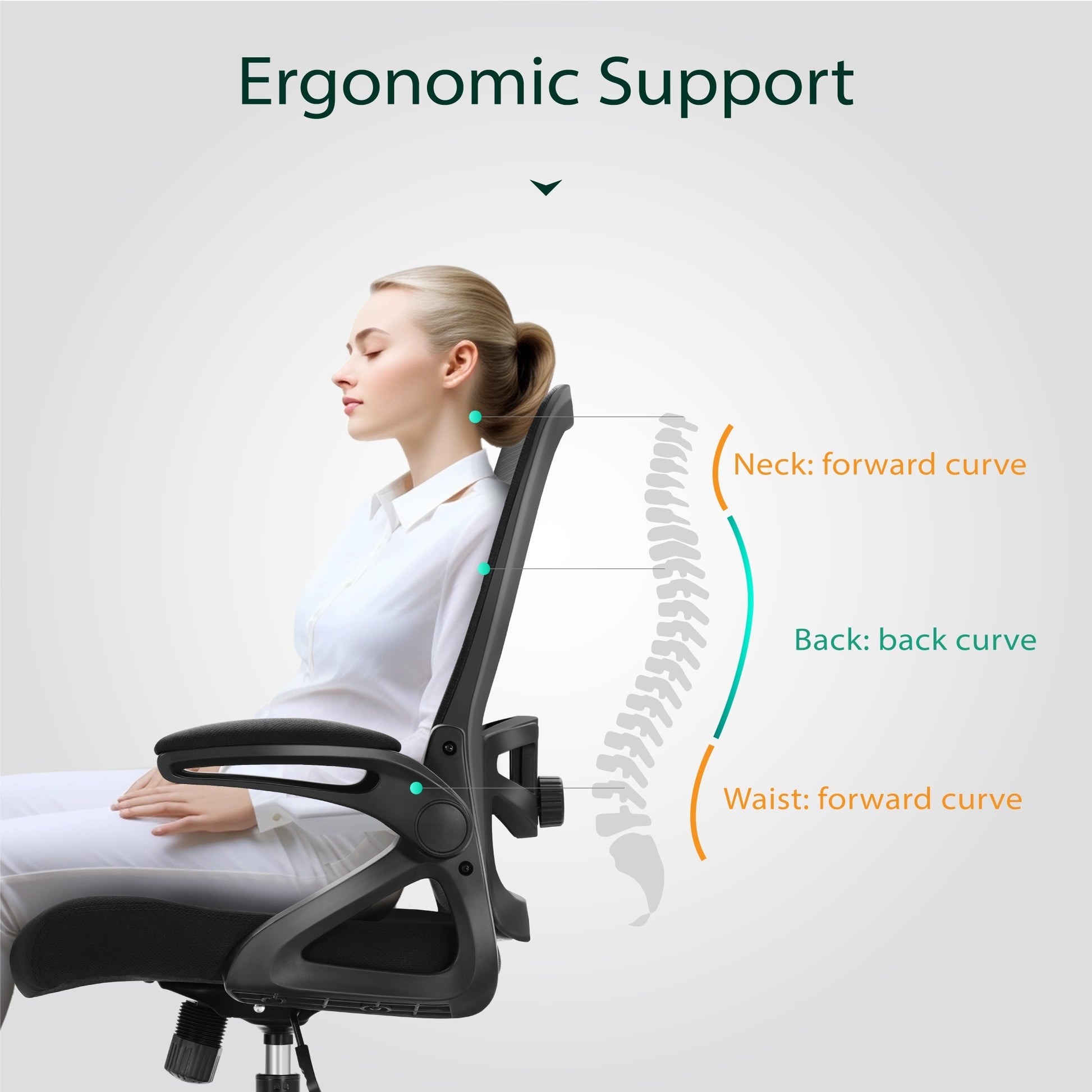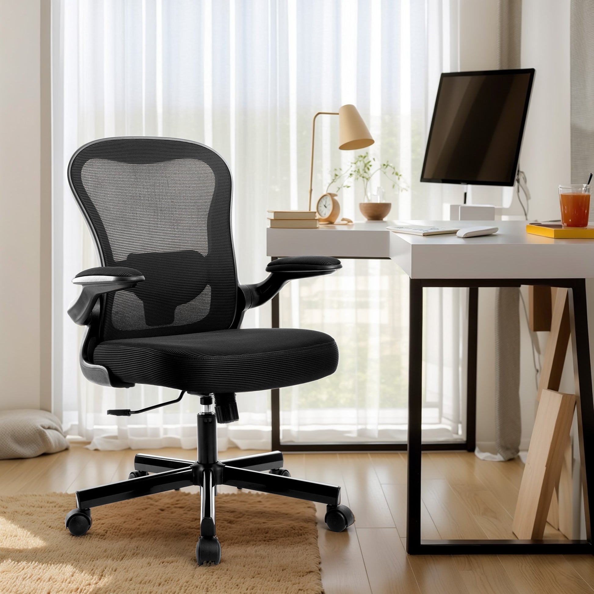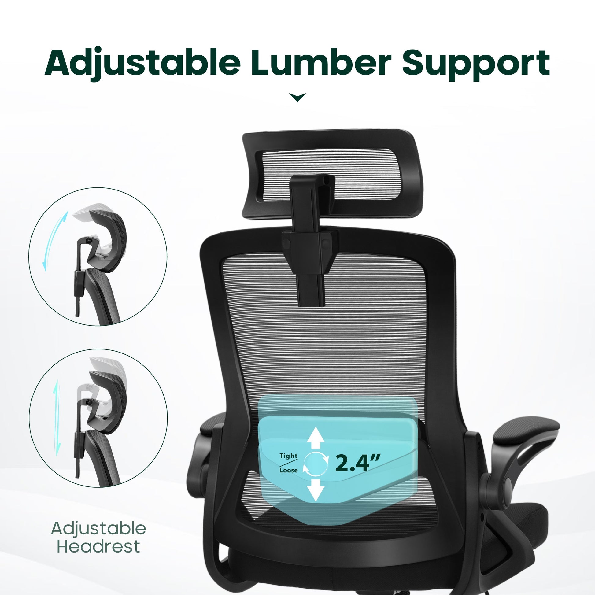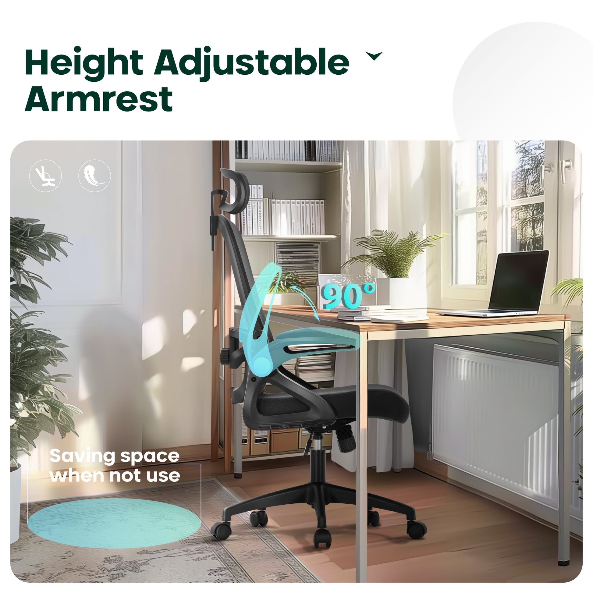 Captiva Designs Ergonomic High-Back Mesh Office Chair Adjustable Height Swivel Chair with Flip-Up Armrests, Black