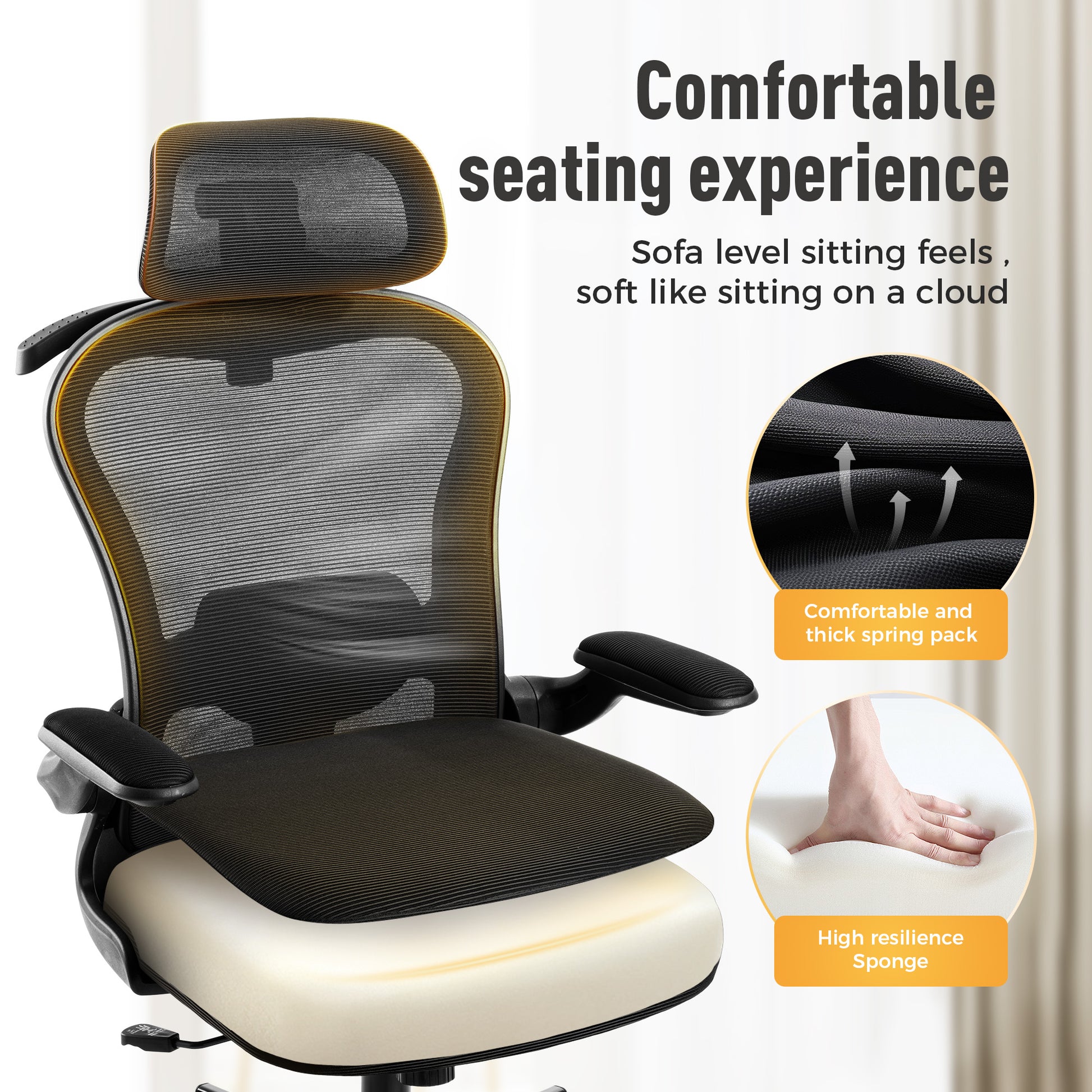 [Captiva Designs] Designed for professionals who demand lasting comfort, the Captiva Designs Ergonomic High-Back Mesh Office Chair combines a triple-zone support system (neck, back, waist) with adjustable lumbar to target pressure points, while its breathable textured mesh prevents overheating during long work sessions. The high-resilience cushion retains shape over time, and flip-up armrests adapt to compact spaces, complemented by a 300 lb-capacity nylon base and quiet casters for effortless mobility. Easy to assemble and built to endure, this chair transforms your workspace into an ergonomic haven—because exceptional focus starts with exceptional support.