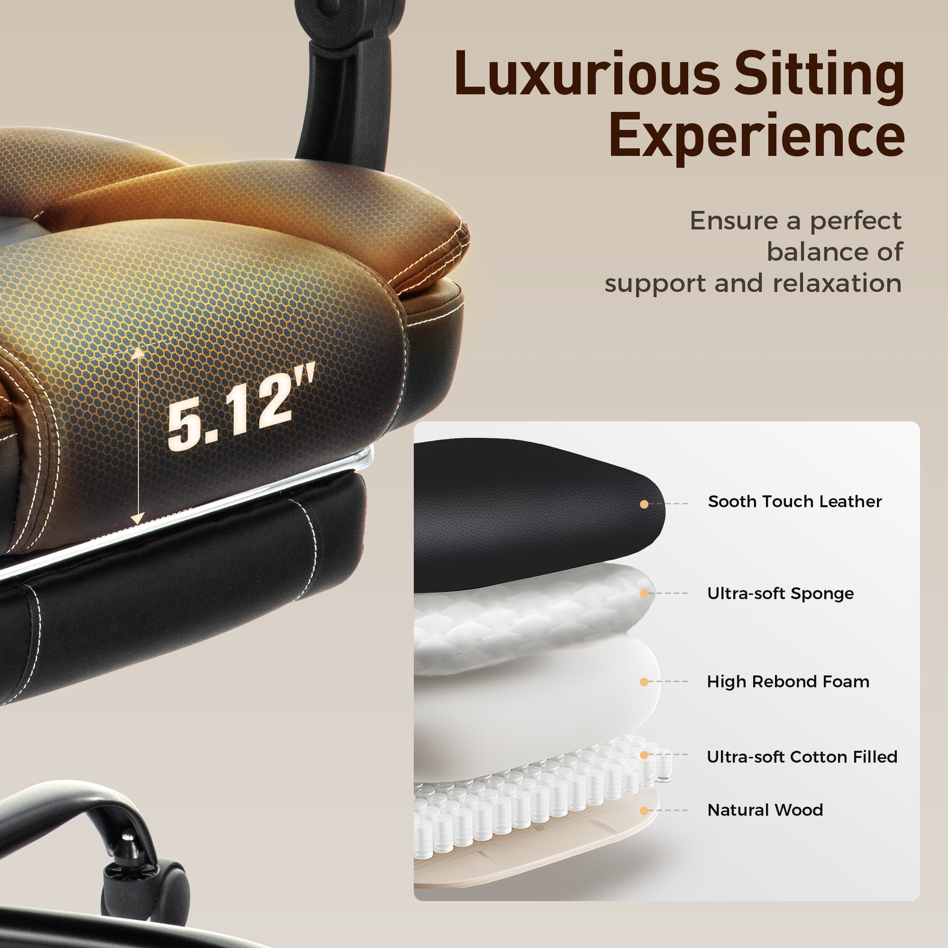 [Captiva Designs] The Captiva Designs Ergonomic Office Chair redefines workspace comfort with scientifically engineered support. Its full-body ergonomic design aligns with your spine's natural curvature, while the 5.12-inch layered cushion – combining rebond foam and cotton – ensures pressure relief during extended sitting. Customize your posture with multi-angle recline (100°-155°) and synchronized sliding armrests, enhanced by a hidden footrest for ultimate relaxation. Built to last with 350lb-capacity framing, SGS-certified height adjustment, and 360° smooth-rolling casters, every detail prioritizes durability and mobility. Upgrade your productivity throne today – where ergonomic precision meets all-day comfort.