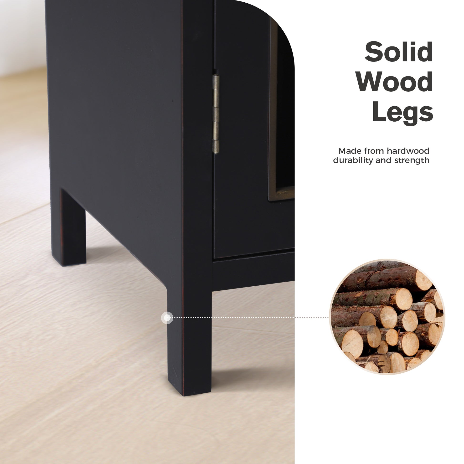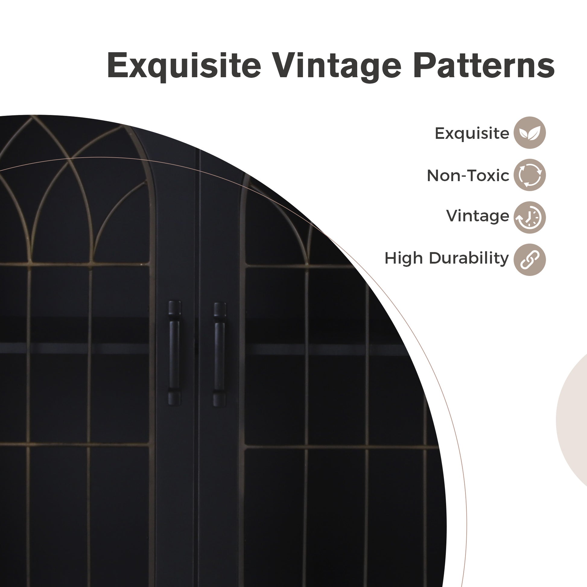 Boasting a premium dark grey finish and elegant metal church-window doors, this cabinet offers a perfect blend of sturdy construction and modern design. Its semi-enclosed storage space is ideal for organizing daily essentials while showcasing decorative pieces. With a generous 245lb weight capacity and a spacious tabletop, this versatile piece provides both functional storage and elegant display options, seamlessly fitting into dining rooms, living areas, or kitchens.