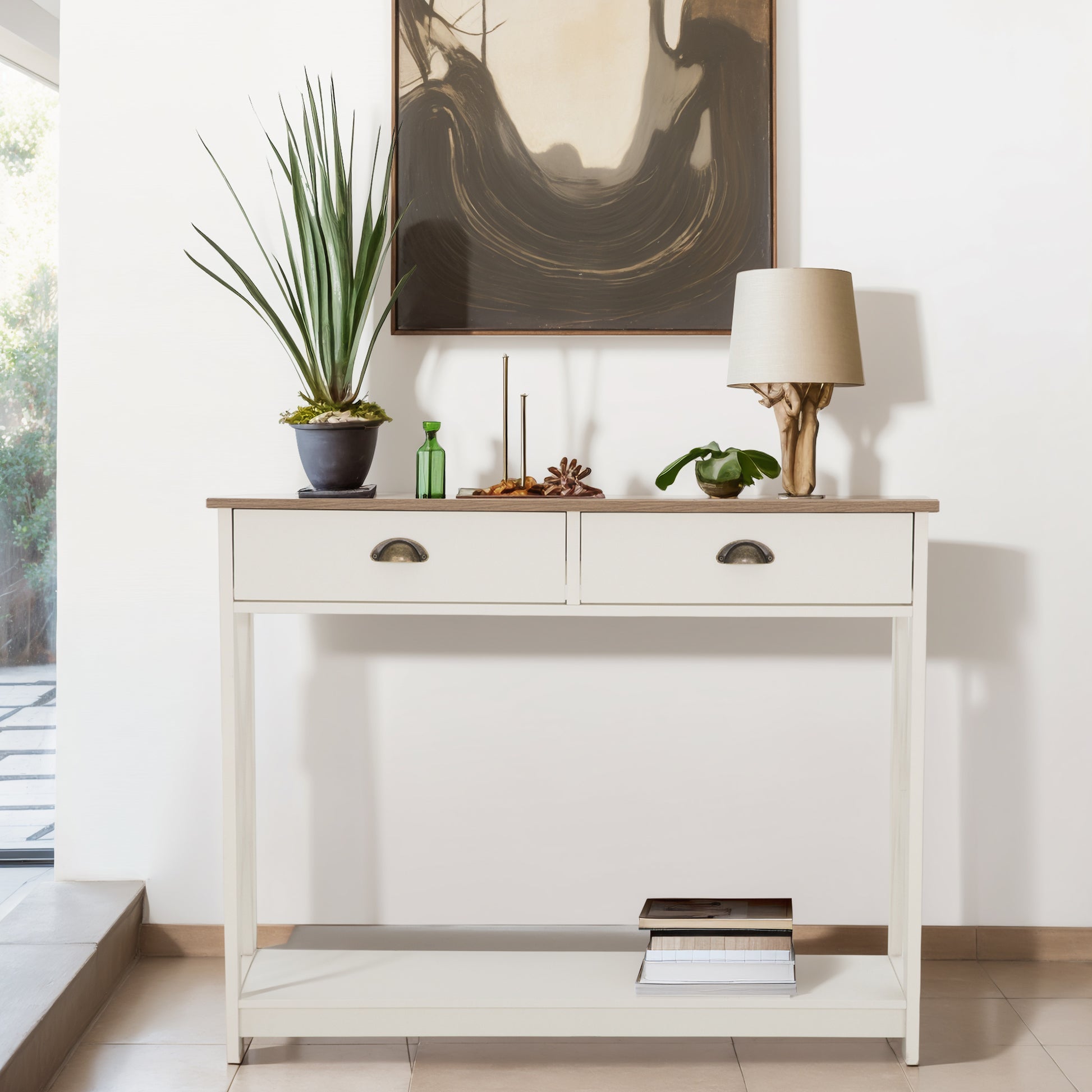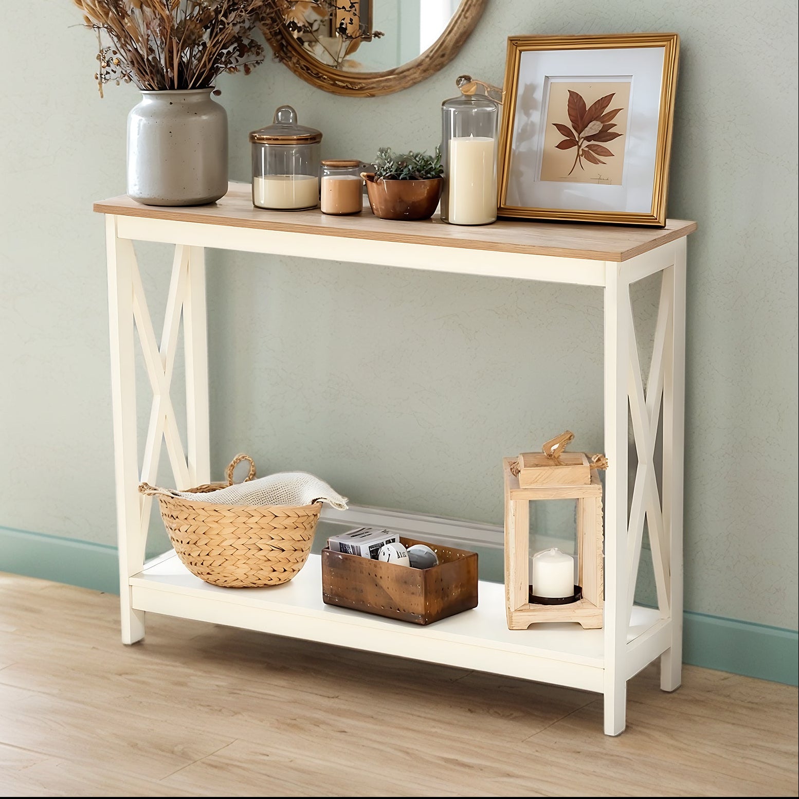 Captiva Designs Farmhouse Console Table with Shelf or Drawers, Narrow 2-Tier Entryway or Hallway Table, Ivory Finish