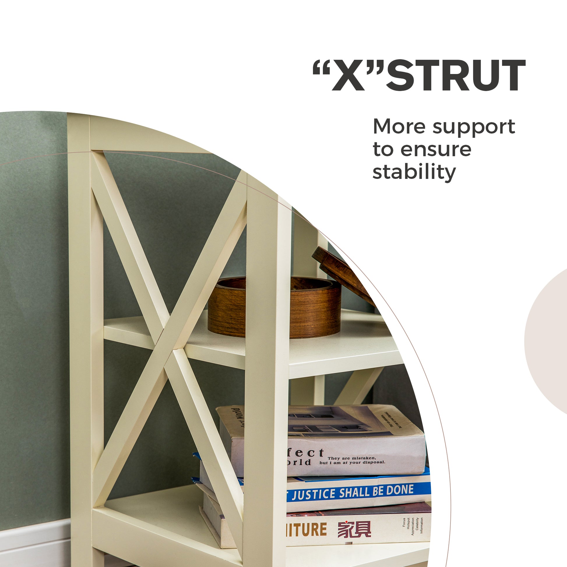 Bring rustic farmhouse charm and practical function to your home with this set of 2 end tables. Each table features a sturdy X-shaped metal frame and three open tiers for convenient storage and display of décor, books, or plants. Crafted from eco-friendly P2 MDF and natural pine wood with a smooth waterproof finish, these tables are durable, easy to clean, and built for everyday use. Their classic farmhouse design fits seamlessly into any living room, bedroom, or office, serving as perfect nightstands, side tables, or accent pieces.