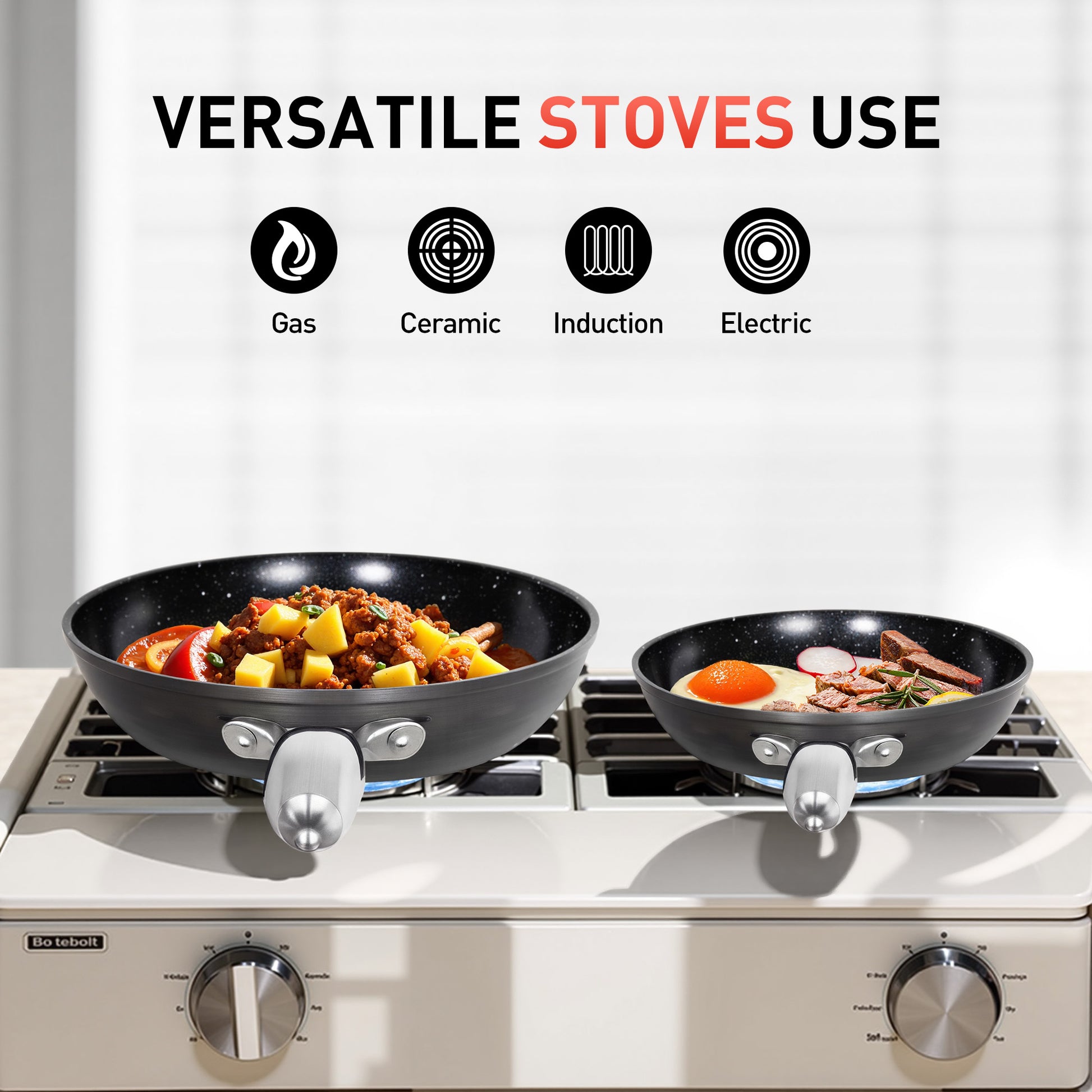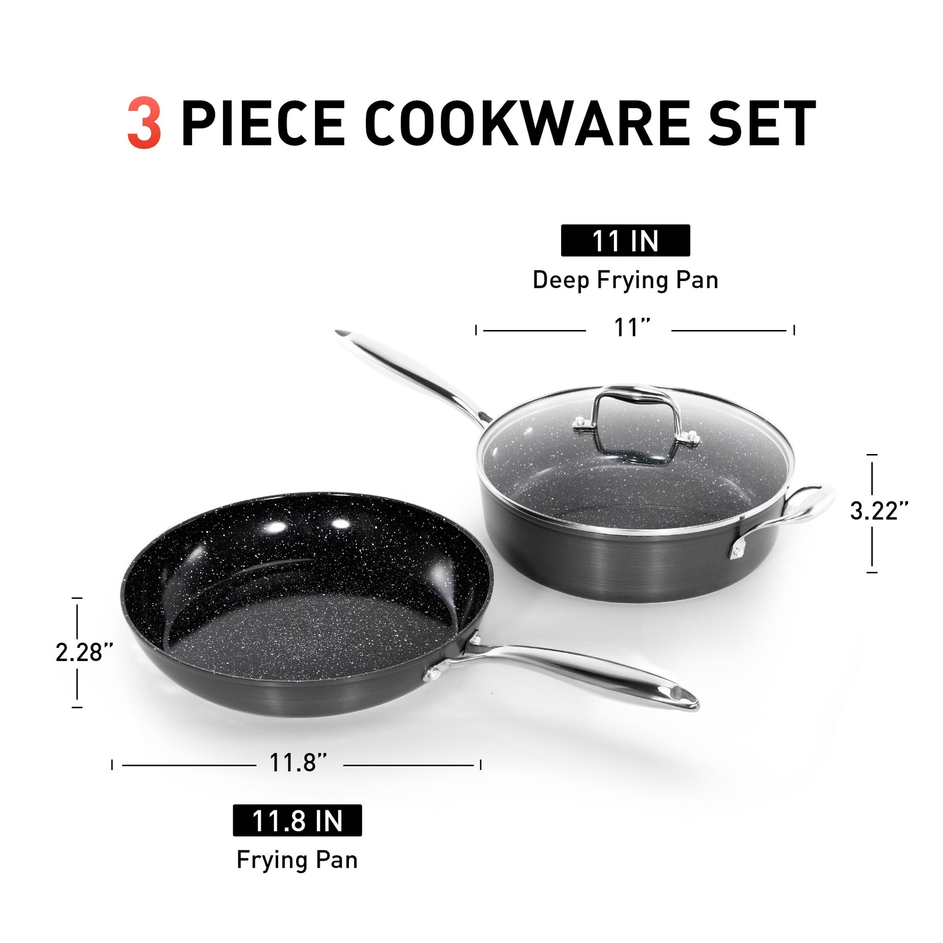 [Captiva Designs] Discover the Captiva Designs Hard Anodized Ceramic Non-Stick Fry Pans Set—a kitchen essential designed for health-conscious cooking. Crafted with 100% toxin-free materials (PFOA-free, PFAS-free, cadmium-free, lead-free), it ensures safe meal preparation without compromise. The advanced ceramic non-stick coating delivers effortless food release and quick cleanup, while rapid, even heat distribution eliminates hot spots for perfect results. Lightweight yet durable, the pans stack neatly for compact storage, and their ergonomic stainless steel handles provide a secure, comfortable grip. Versatile across gas, induction, electric, and ceramic stoves—plus oven-safe—this professional-grade set elevates every cooking experience. Upgrade your kitchen today with confidence!