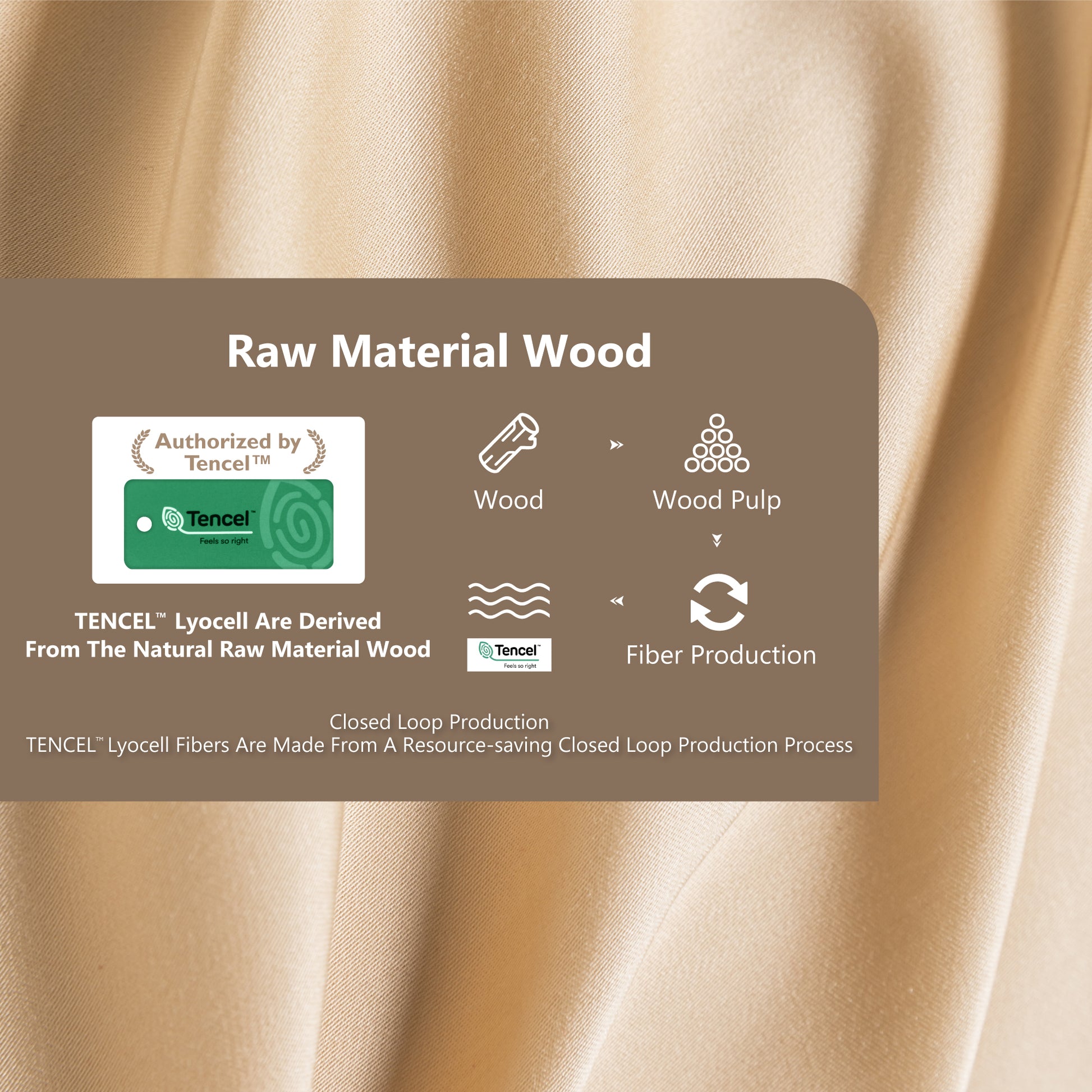 The sheet set is made of Austrian 100% pure TENCEL Lyocell fibers. Its unique microfiber structure ingeniously regulates the absorption and release of moisture, significantly improving the bedding's breathability and further strengthening the body's natural temperature regulation functions.