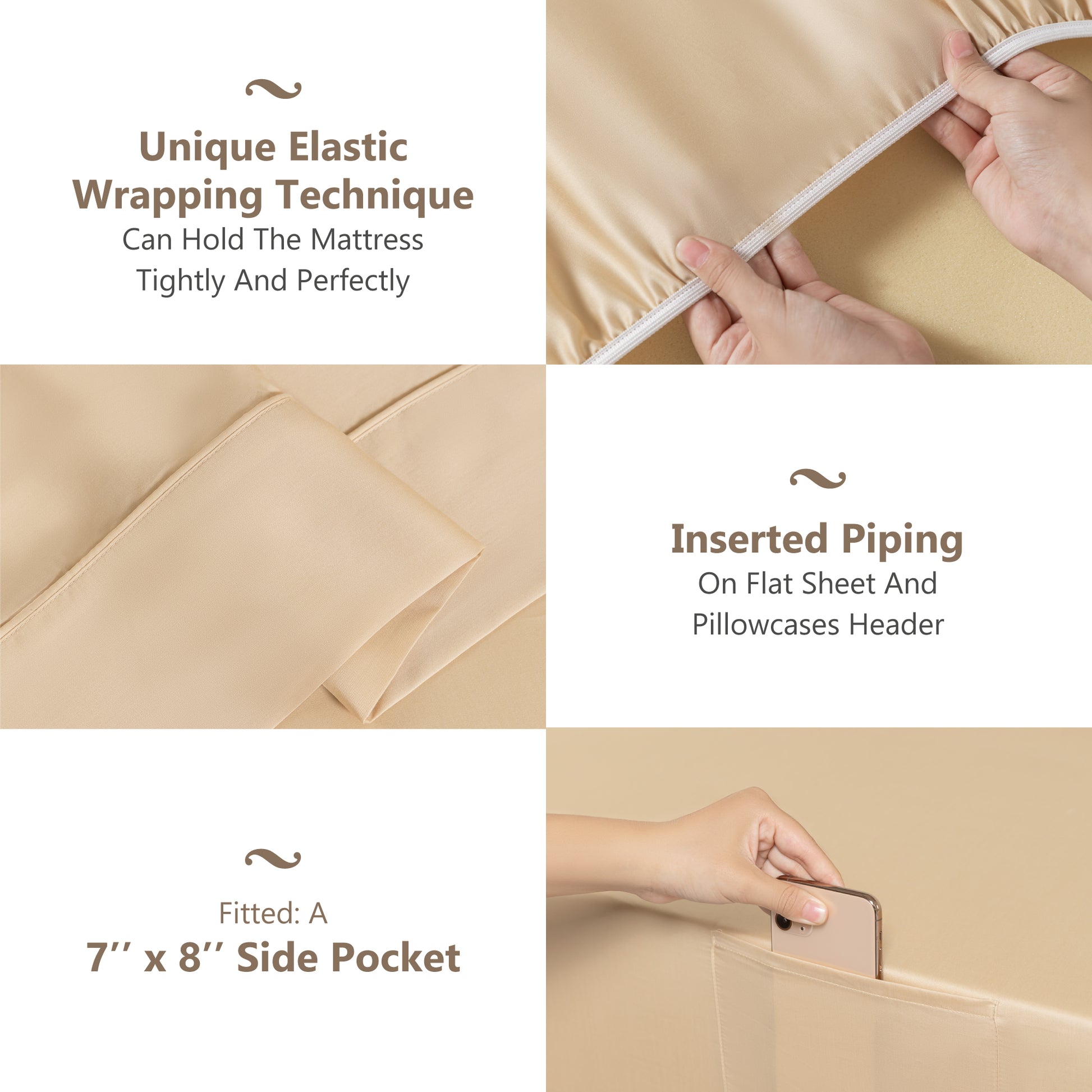Captiva Designs Luxury 100% Tencel Lyocell Sheet Set, Silky Soft Cooling Bedding with Deep Pocket, 4-Piece Set
