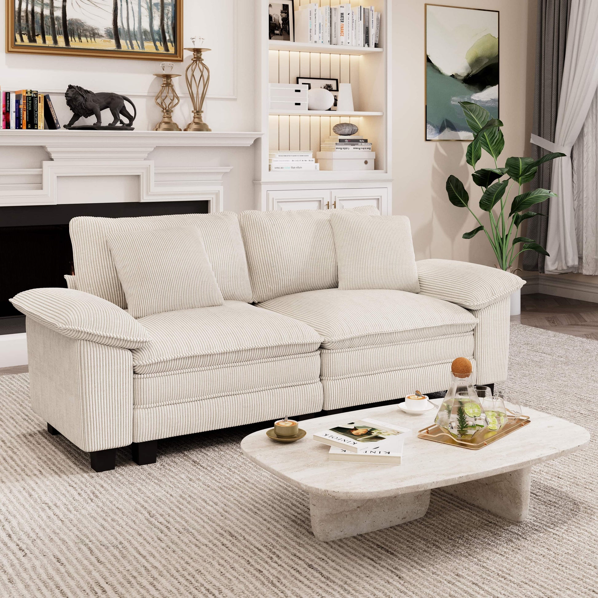 Relax in style with the Captiva Designs 2-seater modular loveseat, crafted with deep, plush cushions and high-density foam for exceptional comfort. Its removable armrests and modular design allow you to rearrange the sofa to fit your space—L-shape, U-shape, or sofa bed configurations are all possible. Built with a solid wood German CAP process frame, this loveseat ensures long-lasting durability and support, while premium corduroy upholstery adds softness, warmth, and breathability. Assembly is simple and can be completed in about 30 minutes, making it easy to enjoy your new favorite spot at home.