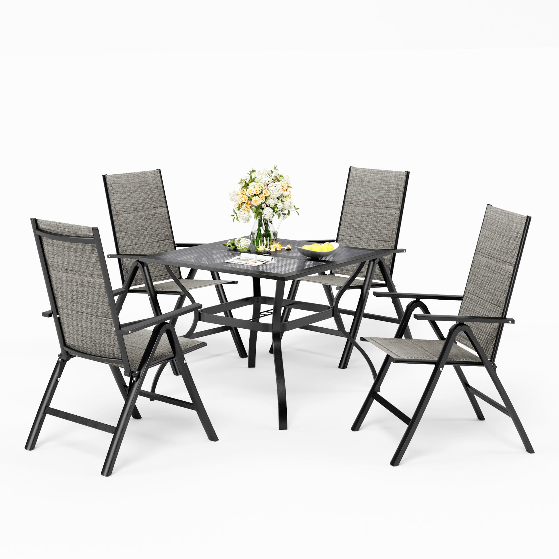 Captiva Designs 5pc Patio Dining Set with Mesh Top Square Steel Table and Sling Aluminum Chairs
