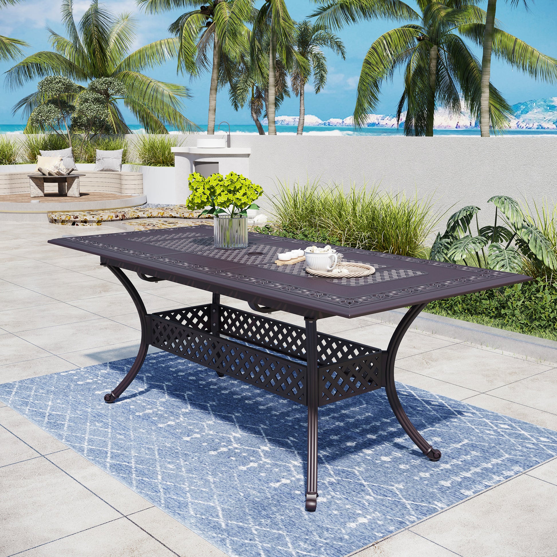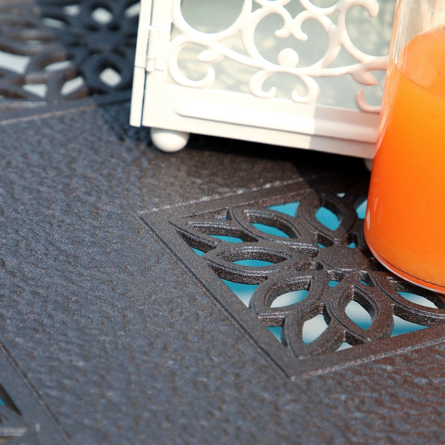 Captiva Designs Outdoor Patio Cast Aluminum Lawn Garden All Weather Engraved Cast-Top Dining Table