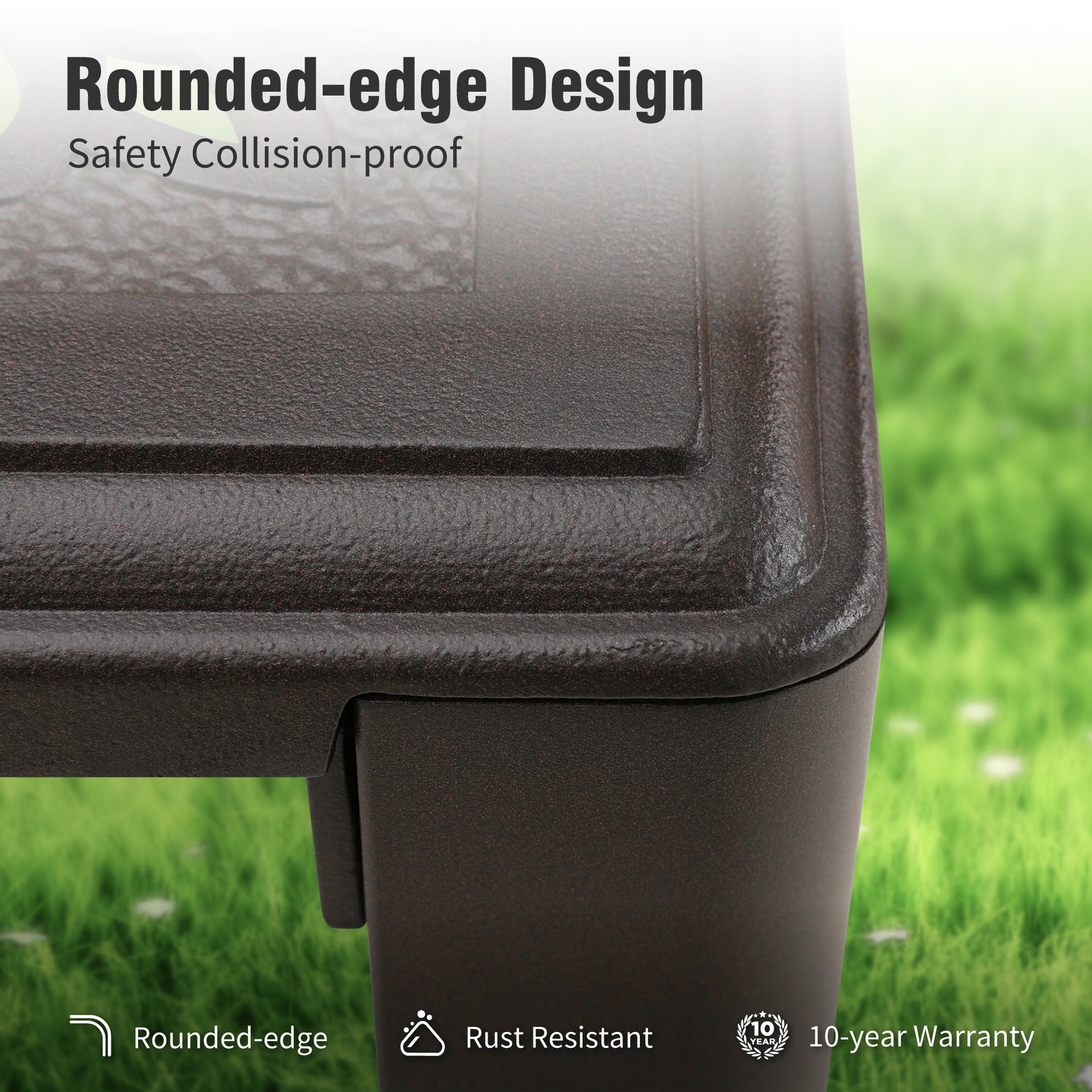 Enhance your outdoor space with the Captiva Designs Outdoor Patio Cast Aluminum Lawn Garden Dining Table. Crafted to withstand all weather conditions, this table features a durable cast aluminum frame and an intricately engraved cast-top surface. Elevate your patio gatherings by providing a sturdy and stylish centerpiece designed for lasting use. Resist rust and fading while enjoying easy maintenance, making outdoor dining both functional and elegant. Perfectly balance aesthetics and durability to create a welcoming environment for family and guests. Invest in quality that supports effortless outdoor living throughout the seasons.