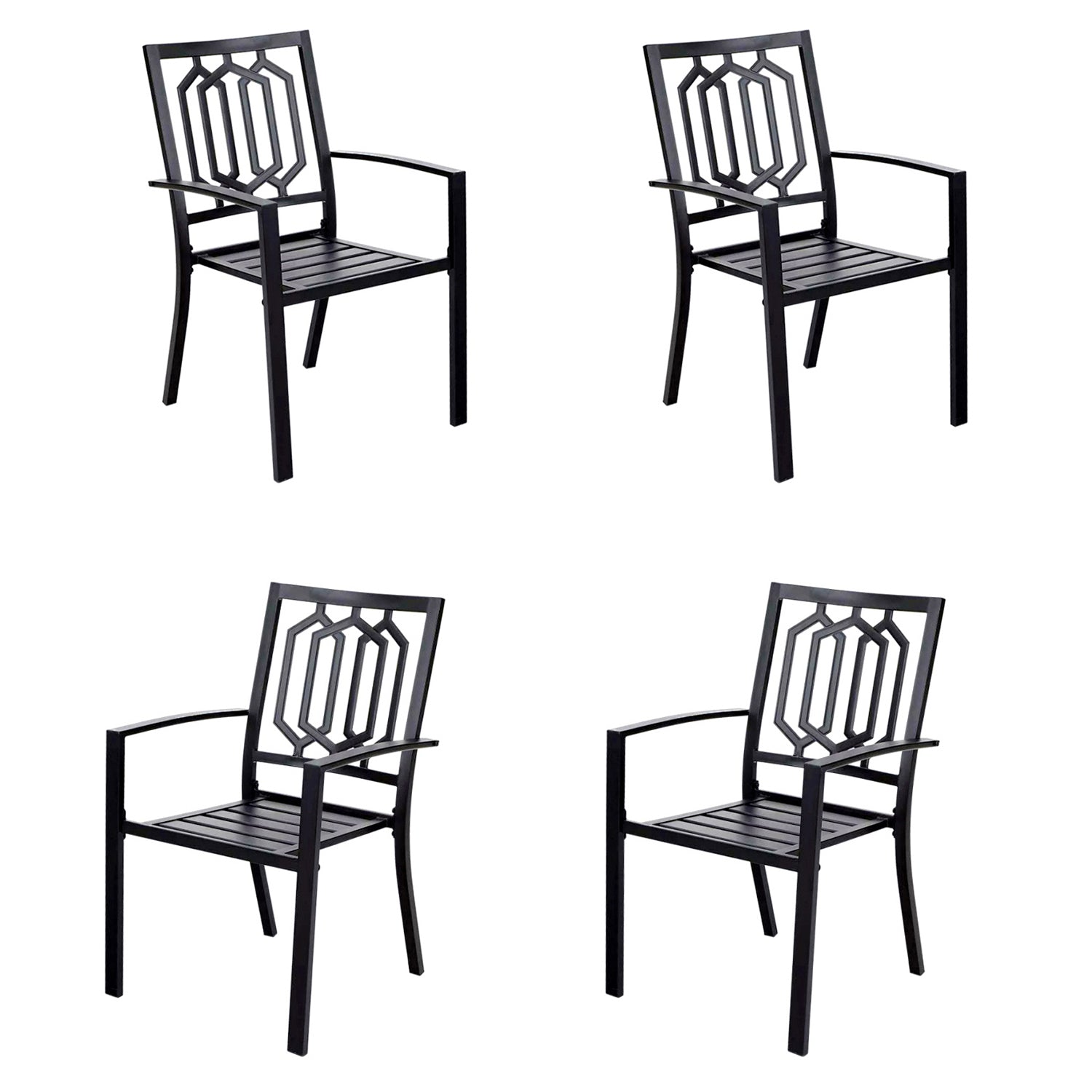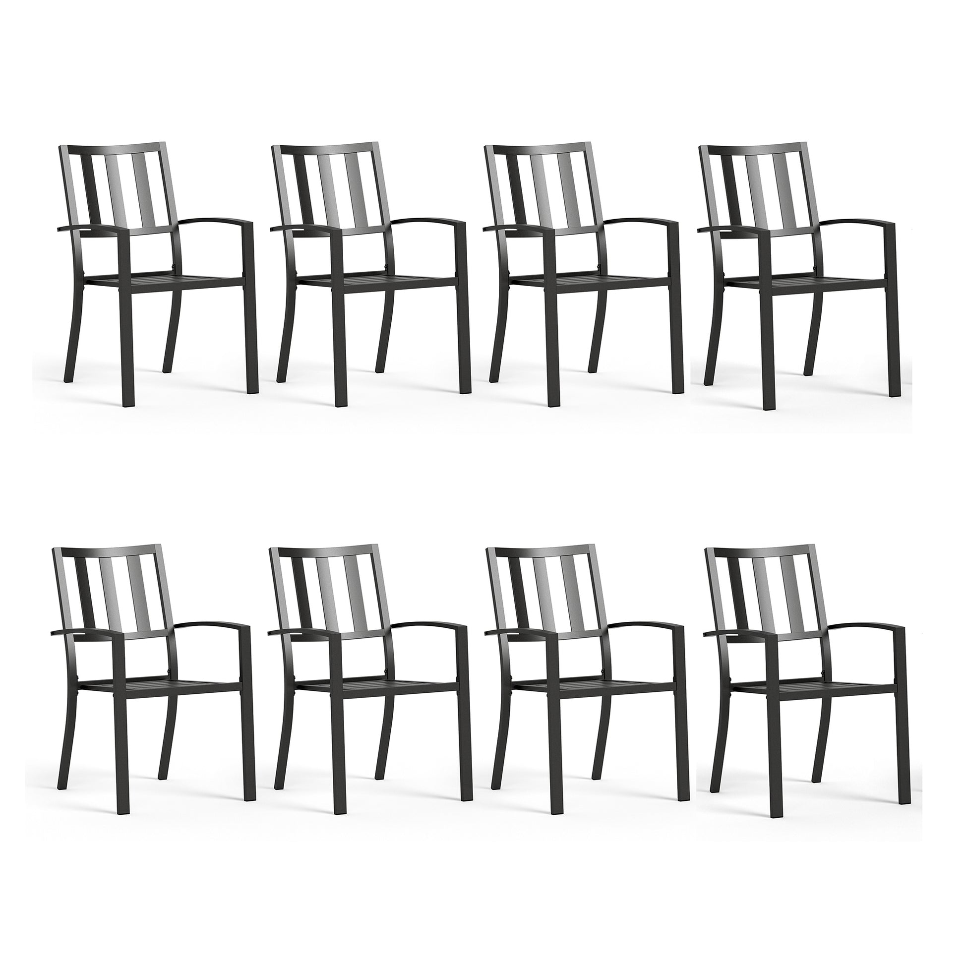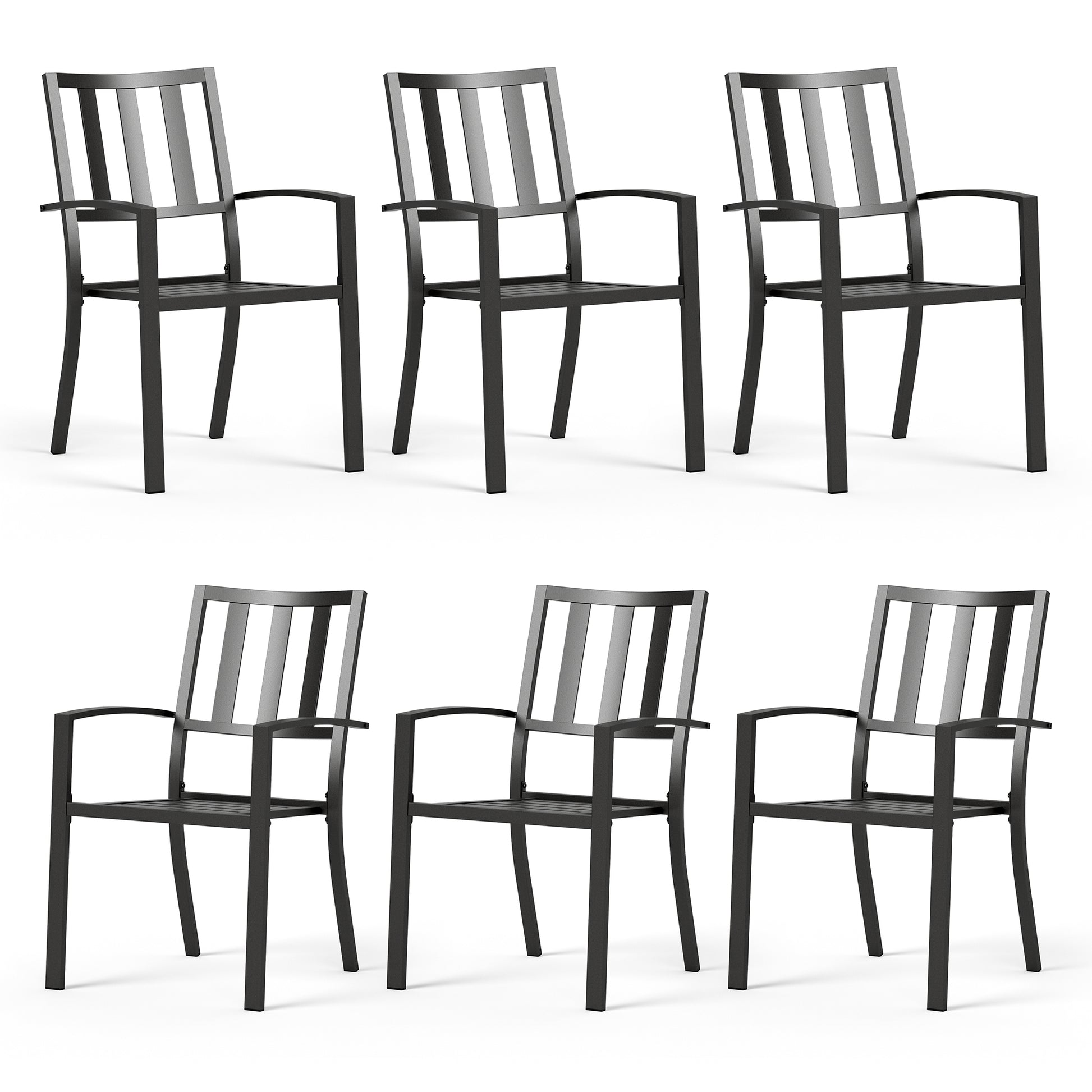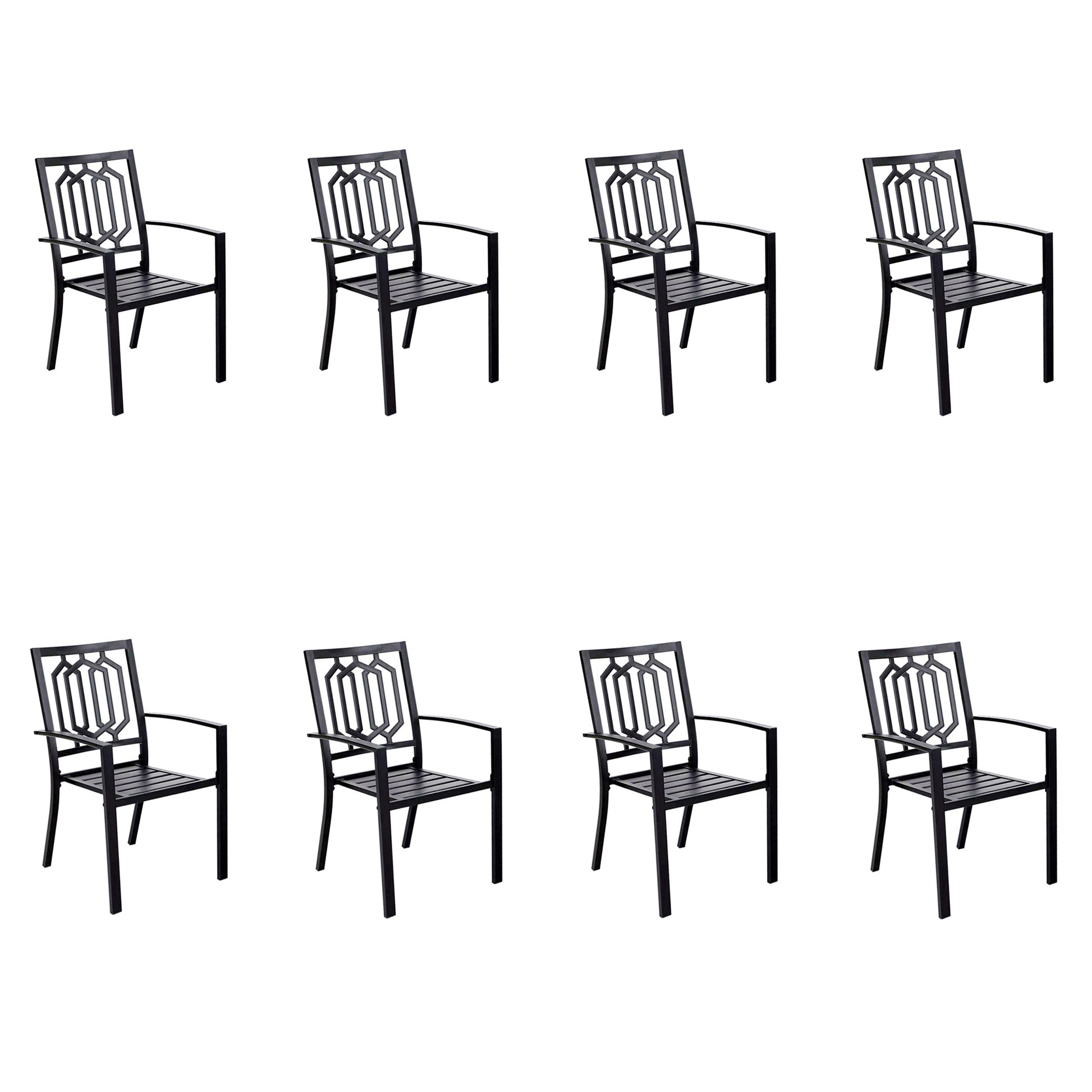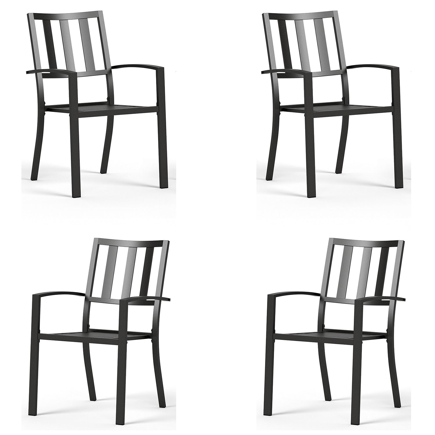 [CAPTIVA DESIGNS] The STACKABLE chairs provide exceptional comfort for dining and conversation, featuring complete steel construction and a stylish back design. Crafted from E-coating and powder-coated steel frame, this durable set seamlessly blends style, function and durability, making it the perfect choice for your outdoor dining needs. Enjoy stylish and comfortable gatherings with this versatile dining set!