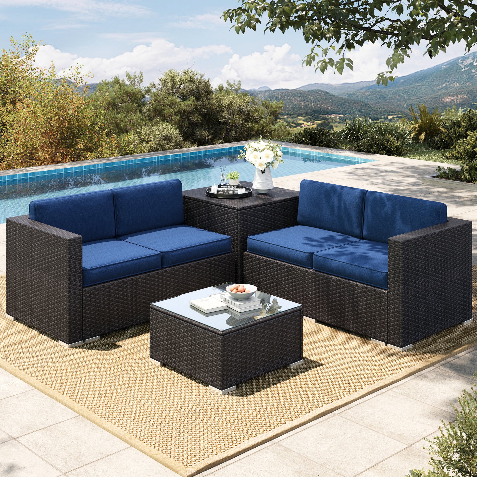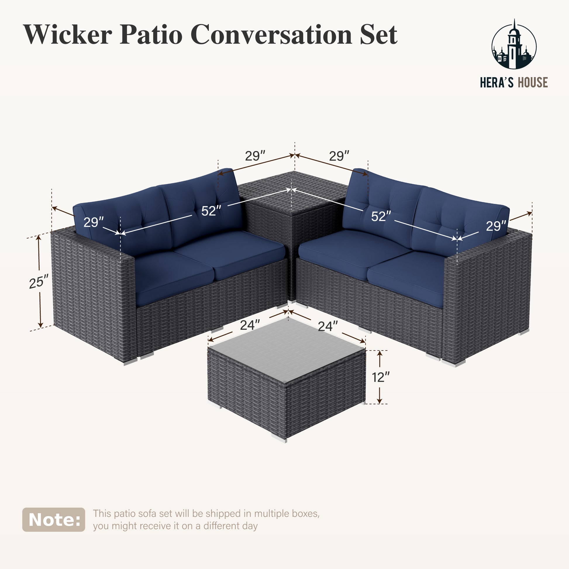 Captiva Designs Outdoor Patio Sectional Sofa Wicker Rattan Patio Conversation Sets for Garden Poolside Yard