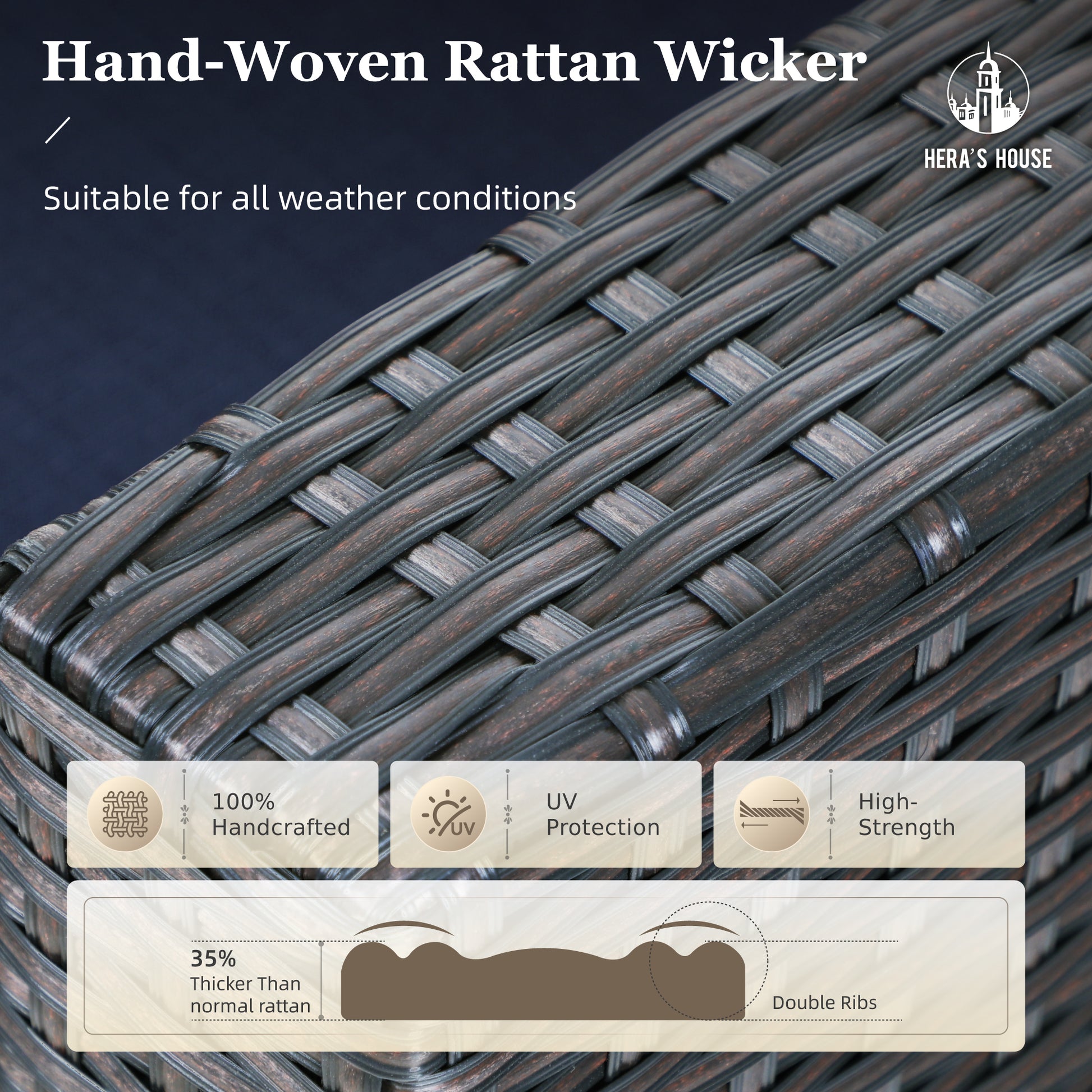 - Durable All-Weather Construction: Crafted from premium wicker and a rust-resistant powder-coated steel frame, this set is built to endure sun, rain, and changing seasons. It promises long-lasting reliability and beauty season after season.