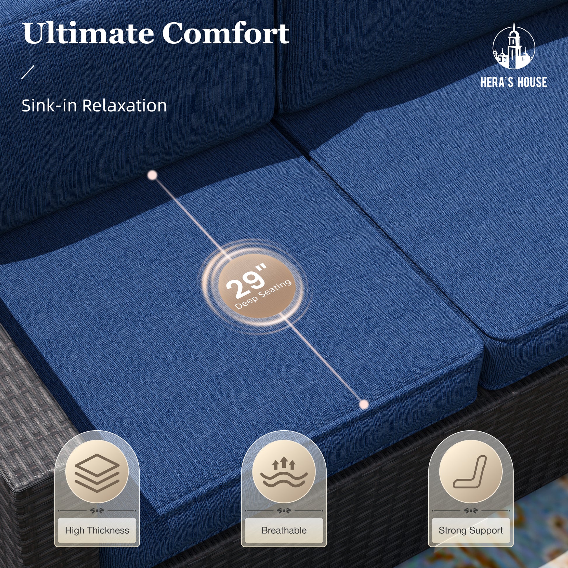 - Plush, Weather-Resistant Comfort: Sink into deep relaxation with thick, supportive cushions on every seat. The cushion covers are water-resistant, stain-resistant, and UV-resistant, while their convenient zipper design allows for effortless removal and cleaning.