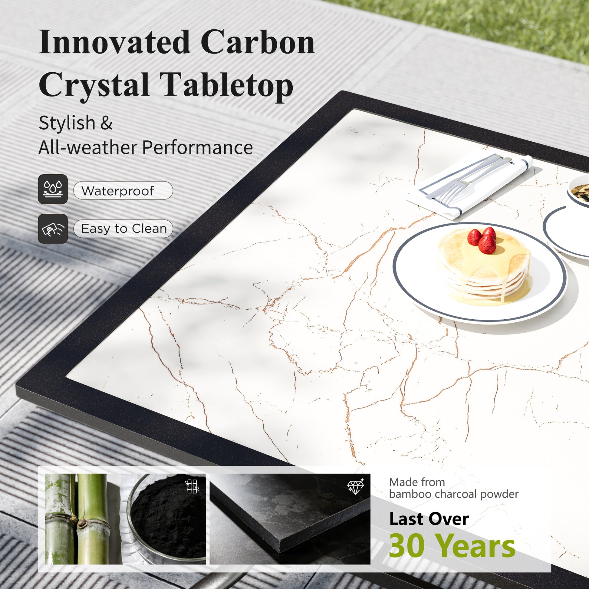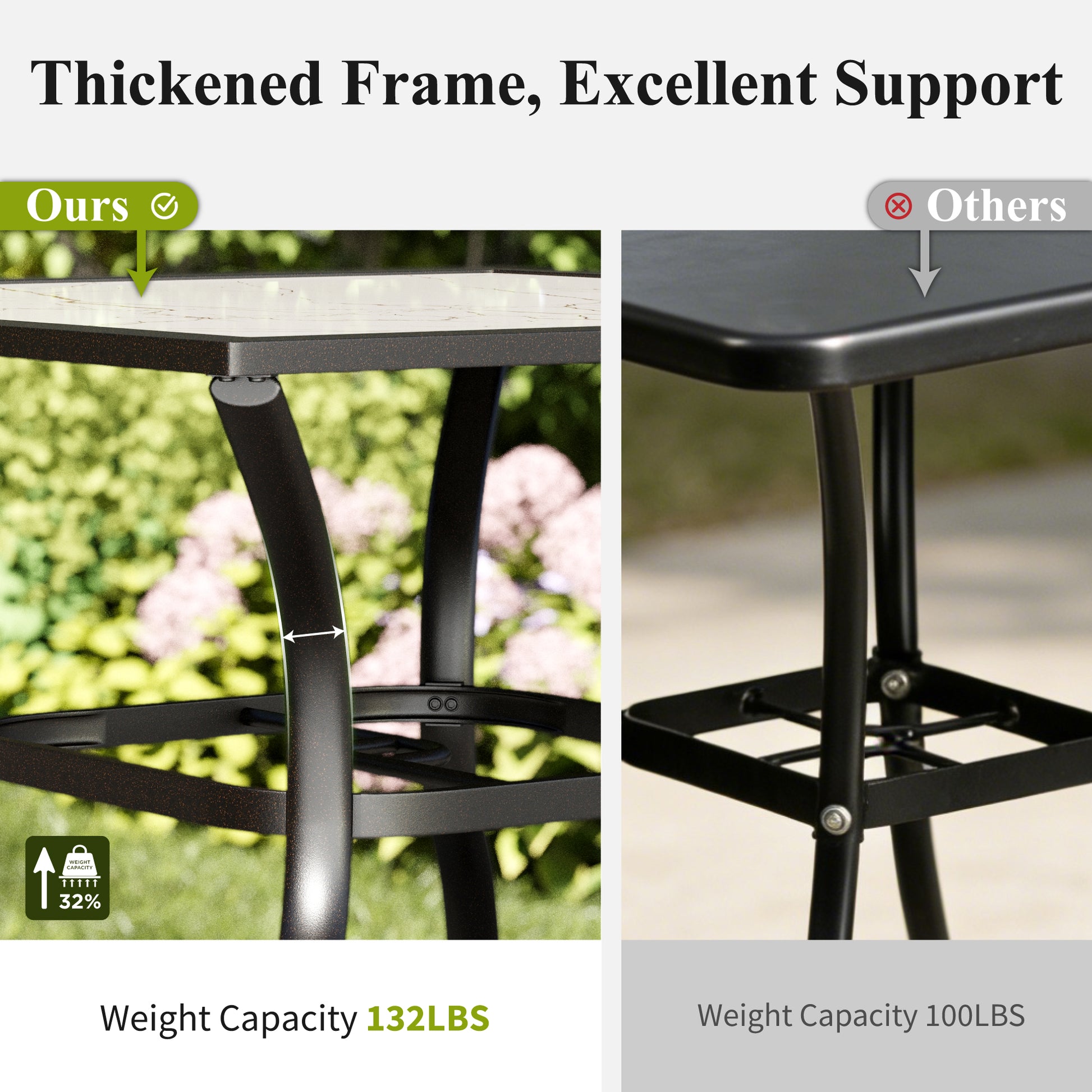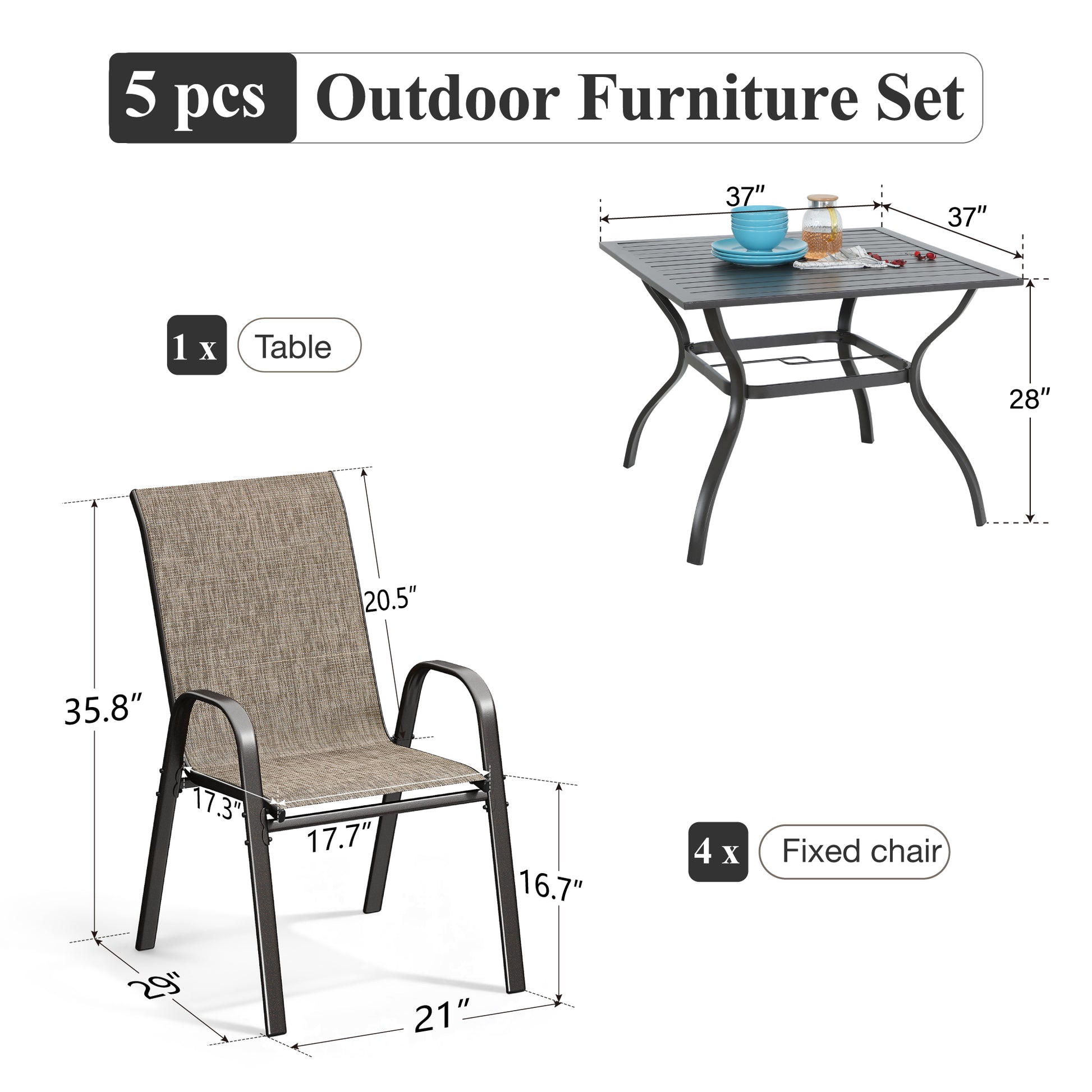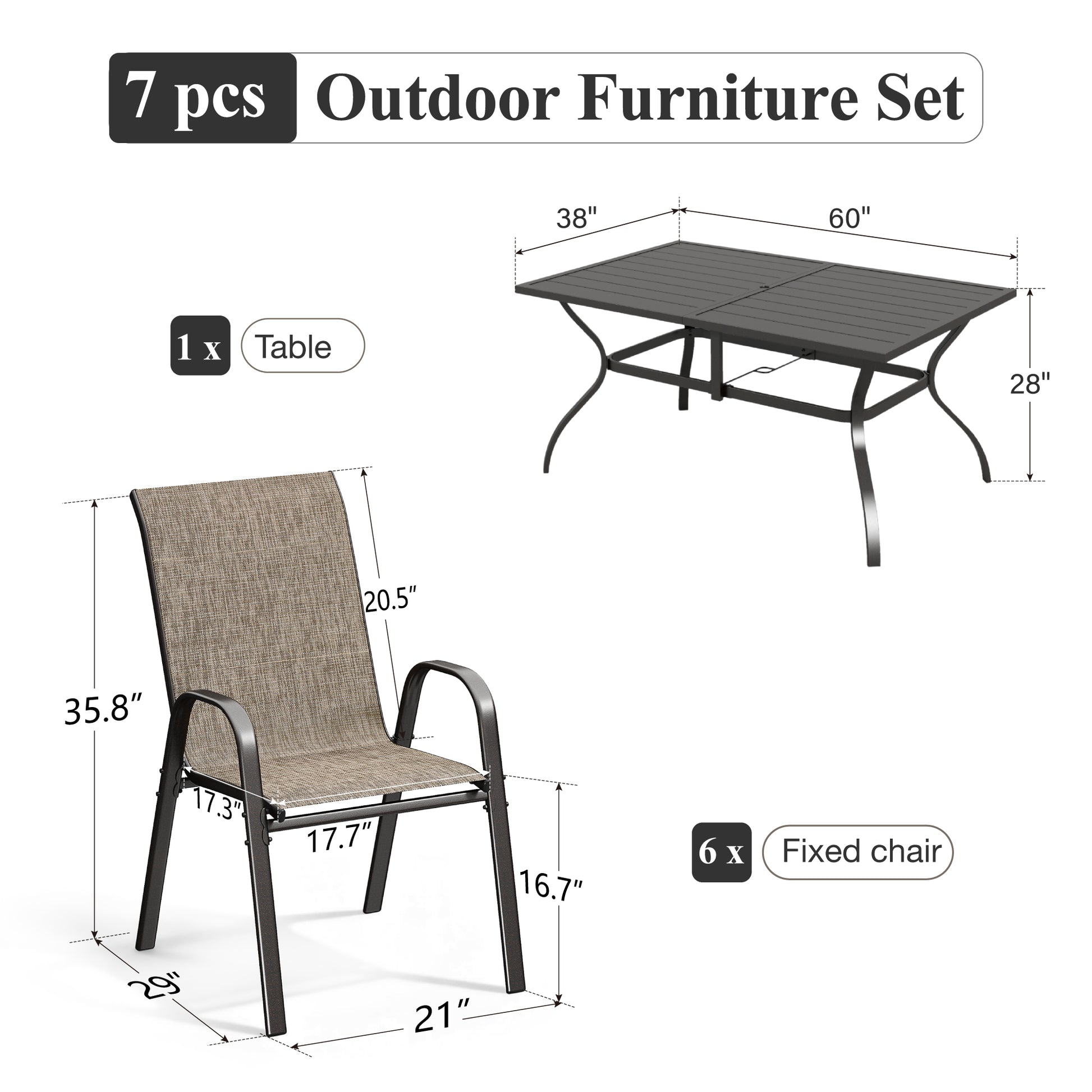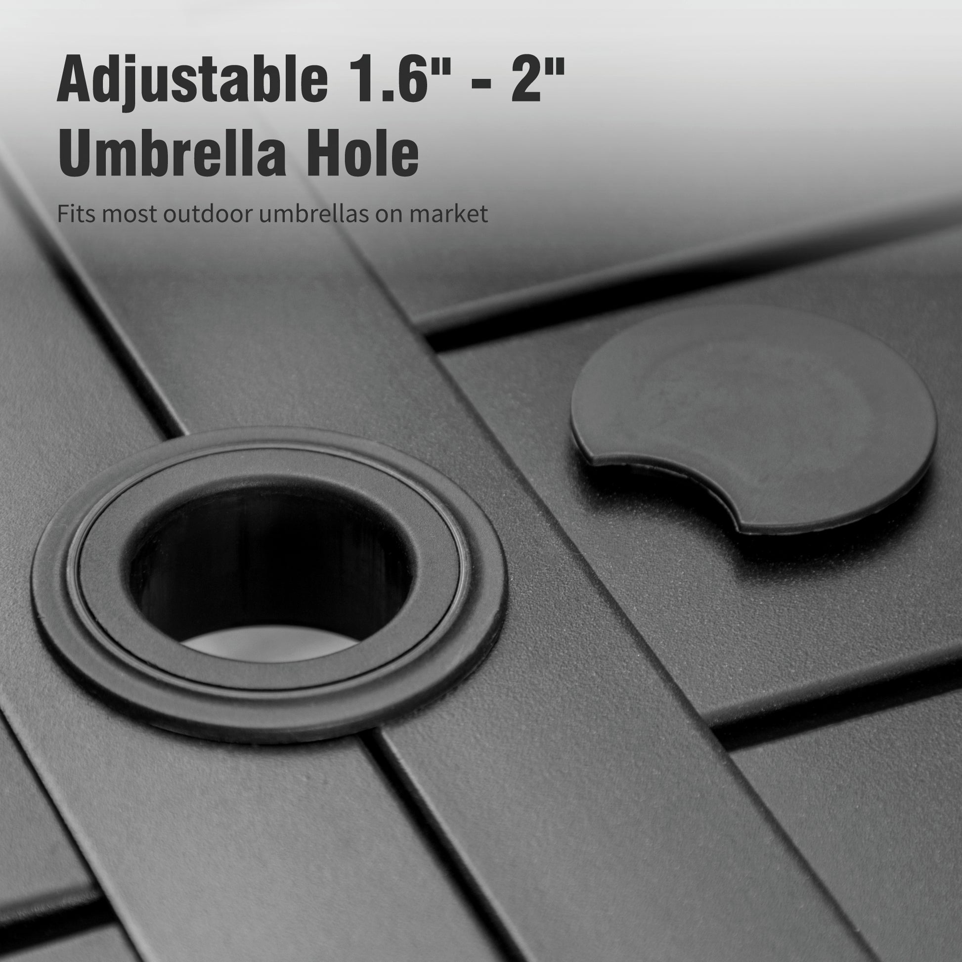 [CAPTIVA DESIGNS] Elevate your outdoor dining experience with our Outdoor Dining Set, featuring a spacious Steel Dining Table and Quick-dry Sling. This stylish table includes a 1.57" umbrella hole, crafted from durable E-coated and powder-coated black steel.