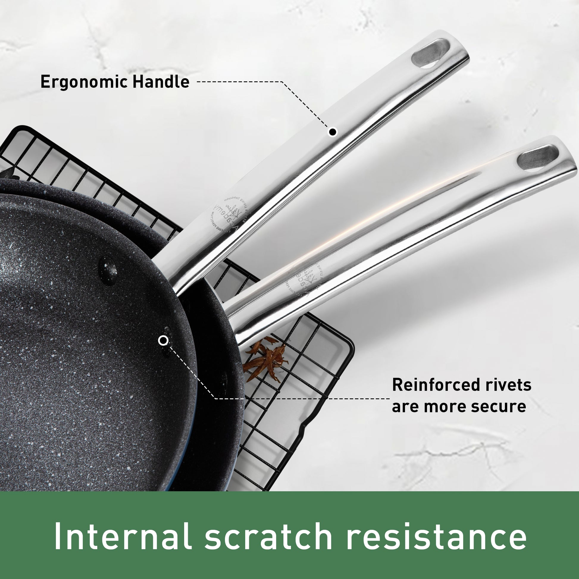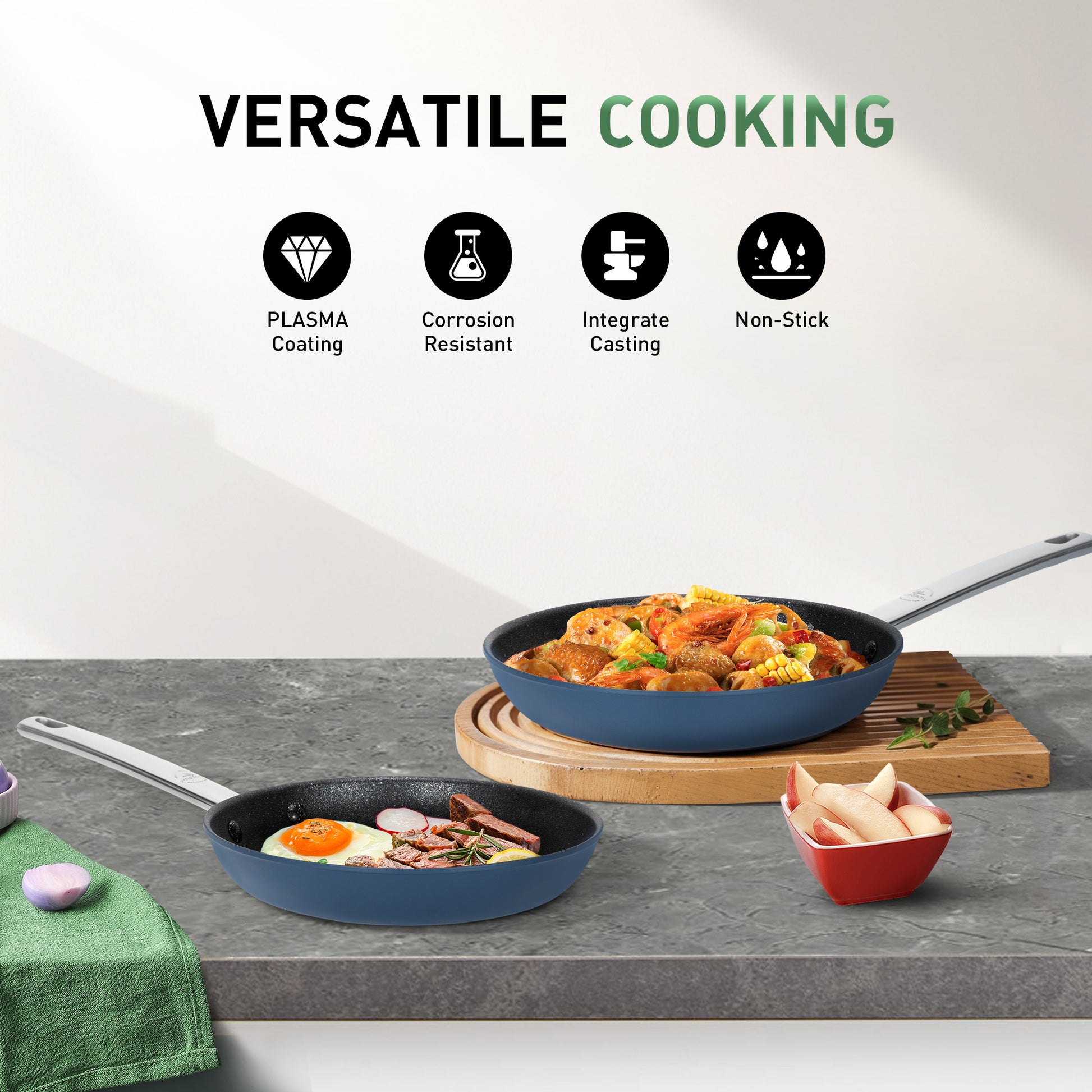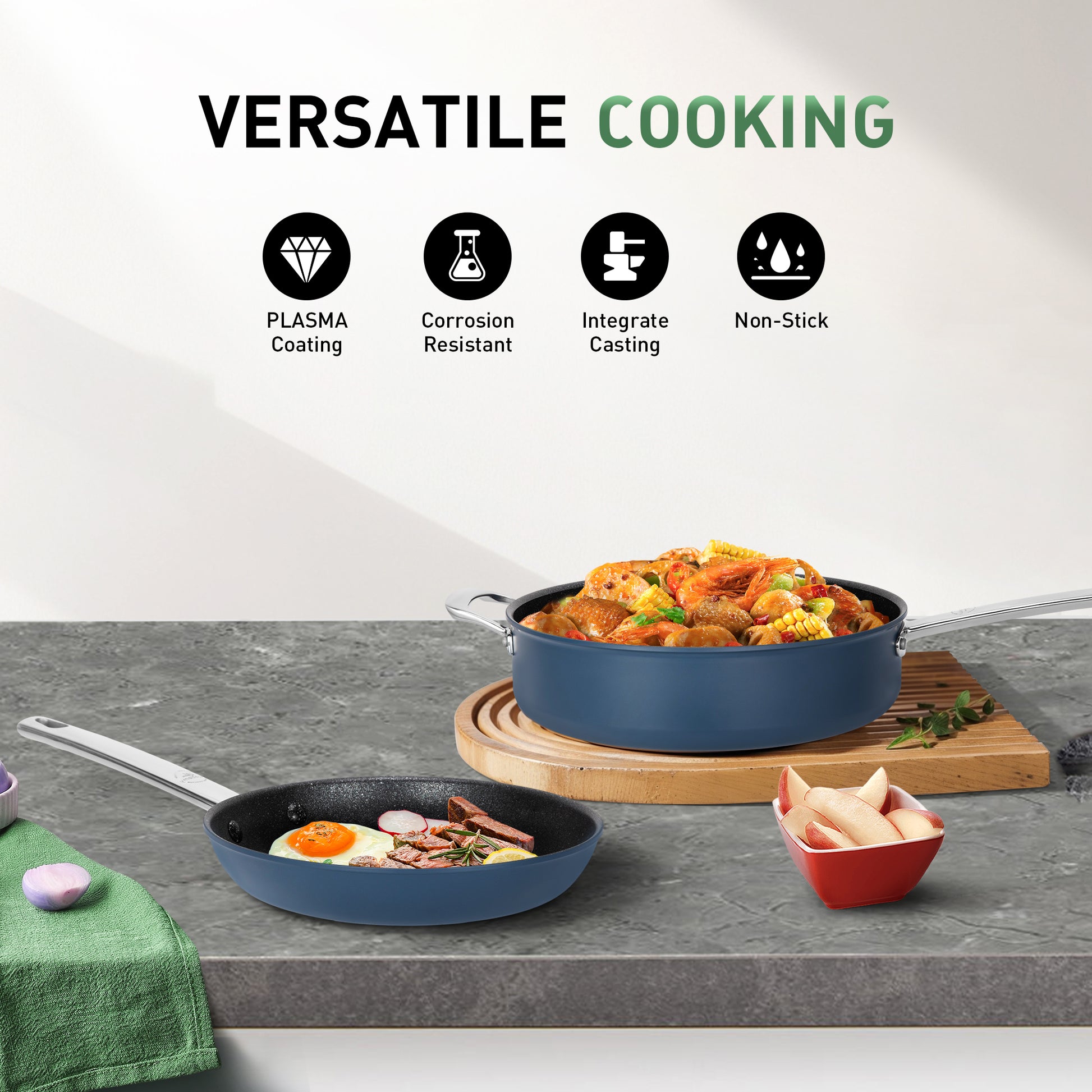 [Captiva Designs] The Captiva Designs Plasma Titanium Nonstick Cookware Set redefines kitchen excellence with its premium plasma titanium coating, delivering effortless food release and flawless low-oil cooking—perfect for delicate dishes. Engineered for rapid, even heating, it eliminates hot spots for consistent results on all stovetops, including induction. Prioritizing health, it’s 100% toxin-free (PFOA, PFAS, cadmium, and lead-free). The secure ergonomic handle ensures a cool, slip-resistant grip, while its eco-conscious design minimizes environmental impact. Easy to clean and oven-safe up to 500°F, this set blends performance, safety, and style. Upgrade your cooking with confidence—this is the smart choice for every home chef.