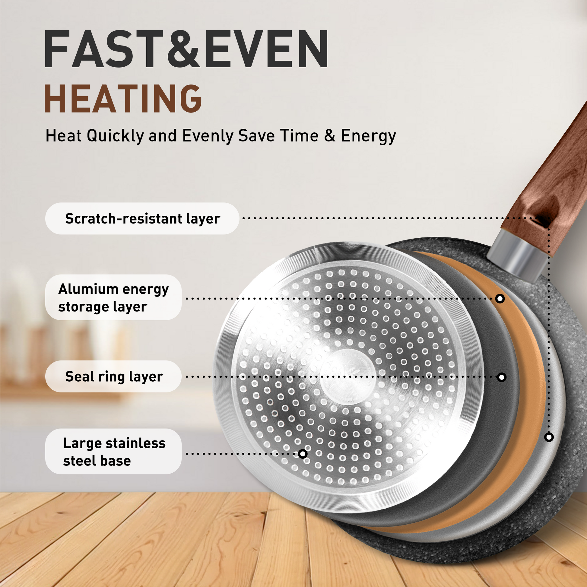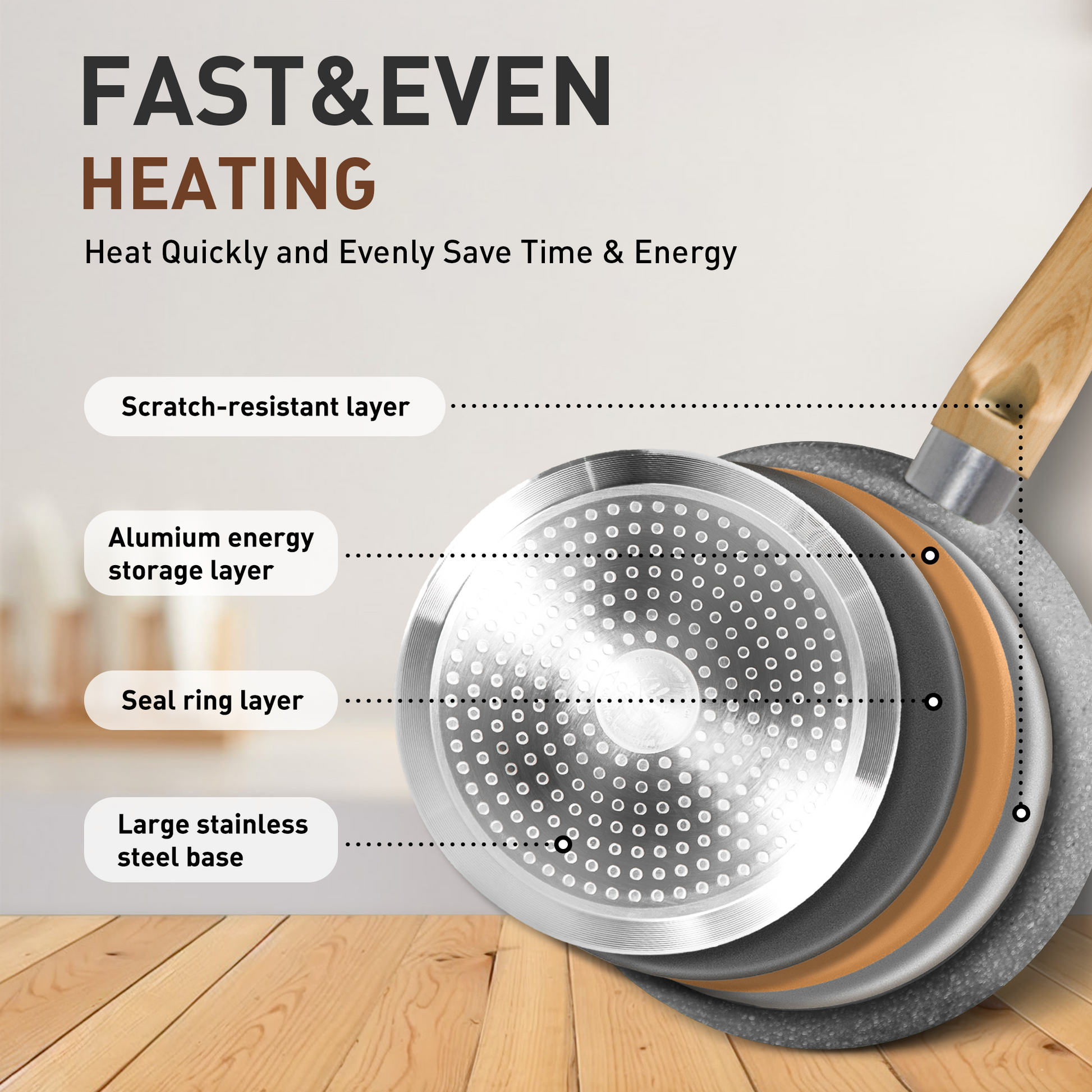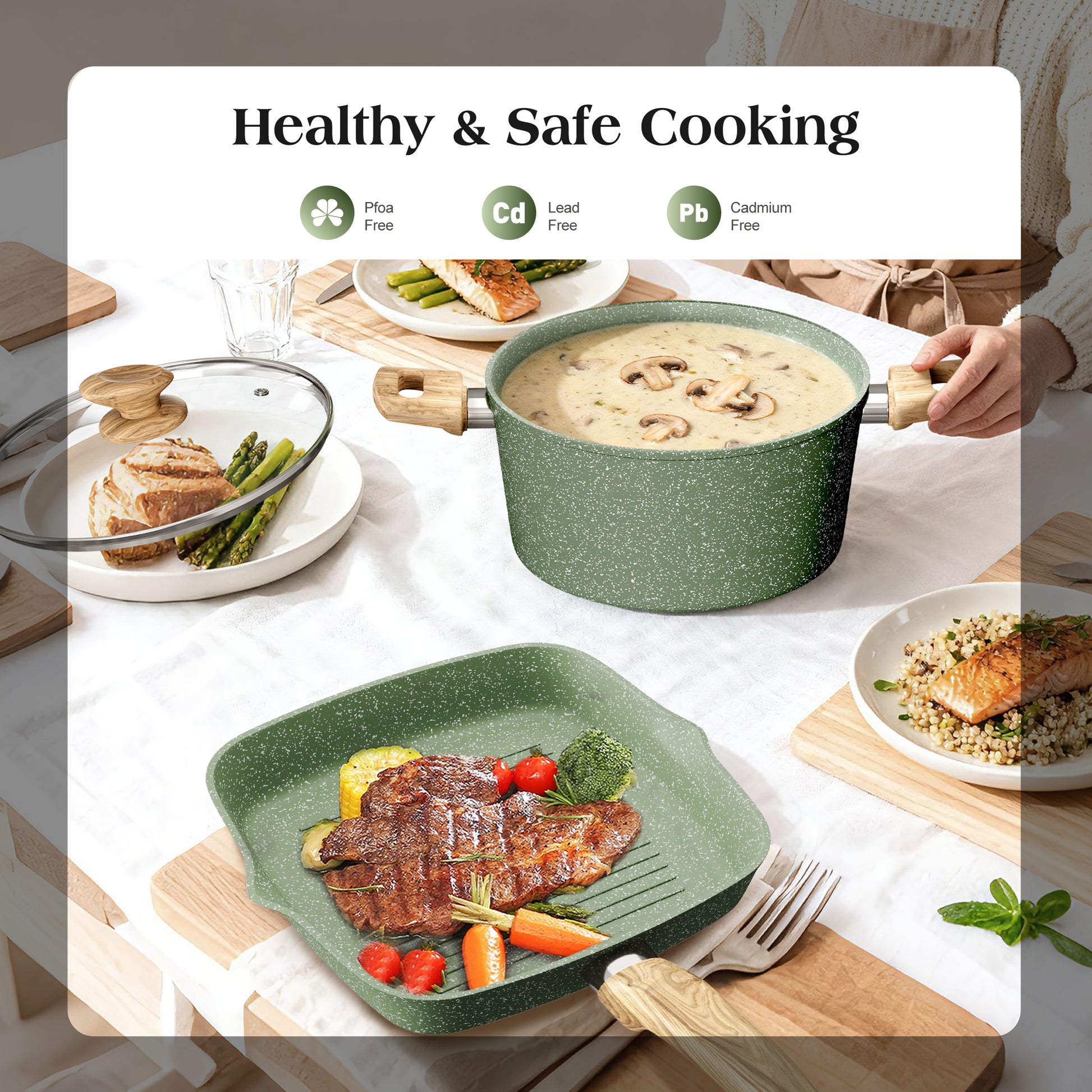 - [Captiva Designs] Introducing the Captiva Designs nonstick granite cookware and bakeware set, crafted for exceptional cooking performance! With heat-resistant Bakelite handles and materials that are certified toxin-free, this set guarantees your cooking experience is not only safe but also comfortable. Enjoy fast and even heat distribution that ensures your meals are cooked perfectly on all stove tops. Plus, cleaning up is a breeze with our durable nonstick granite surface, which helps prevent food from sticking and makes maintenance effortless. This versatile collection is designed to be reliable for all your cooking needs in the kitchen!